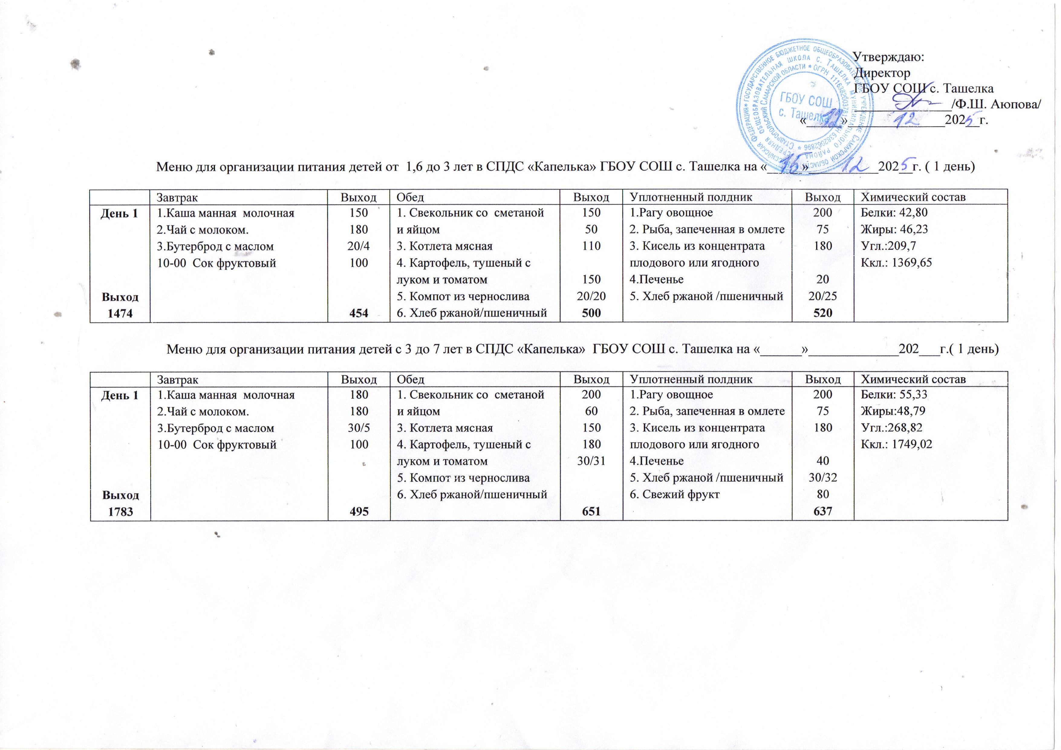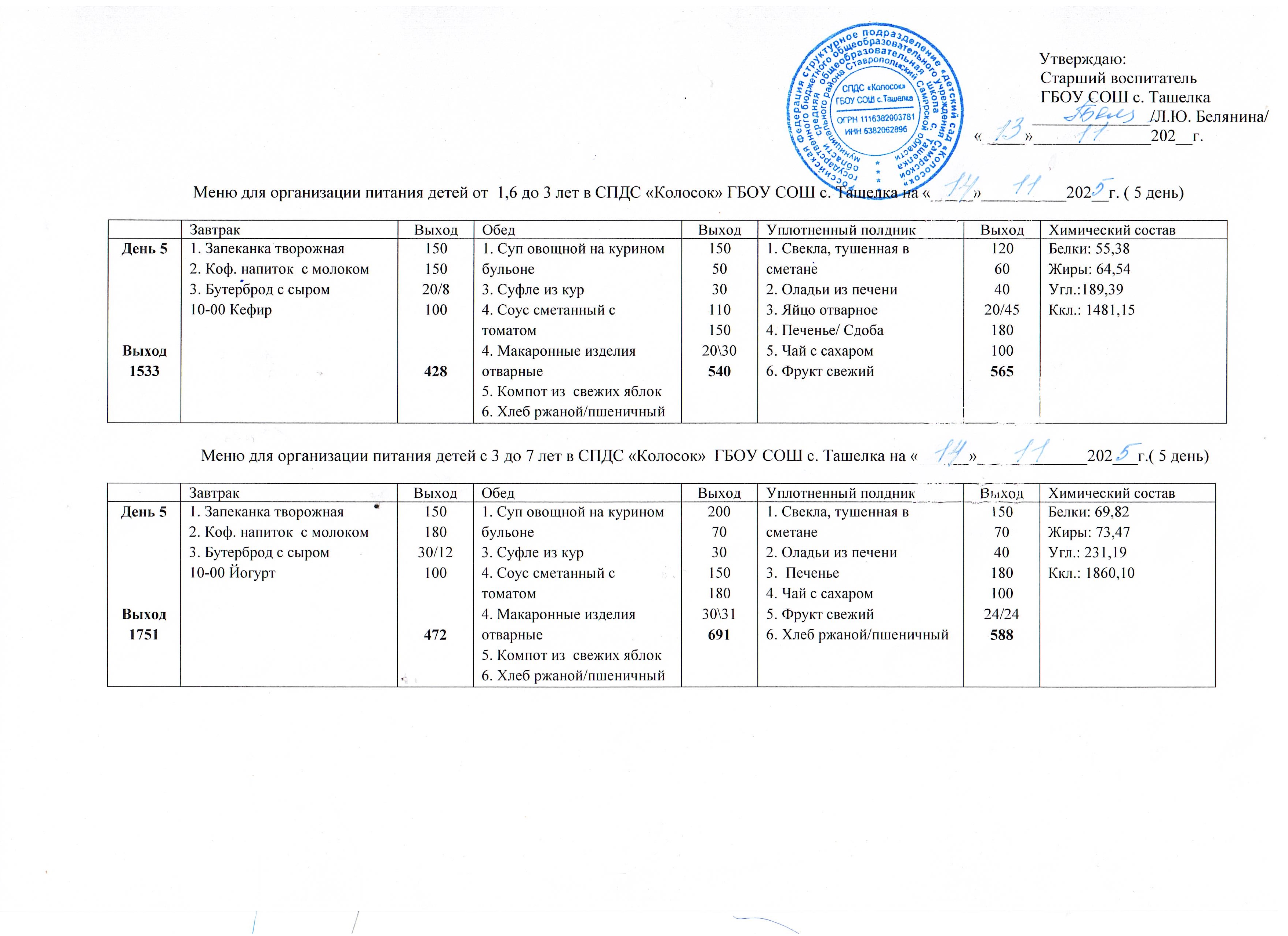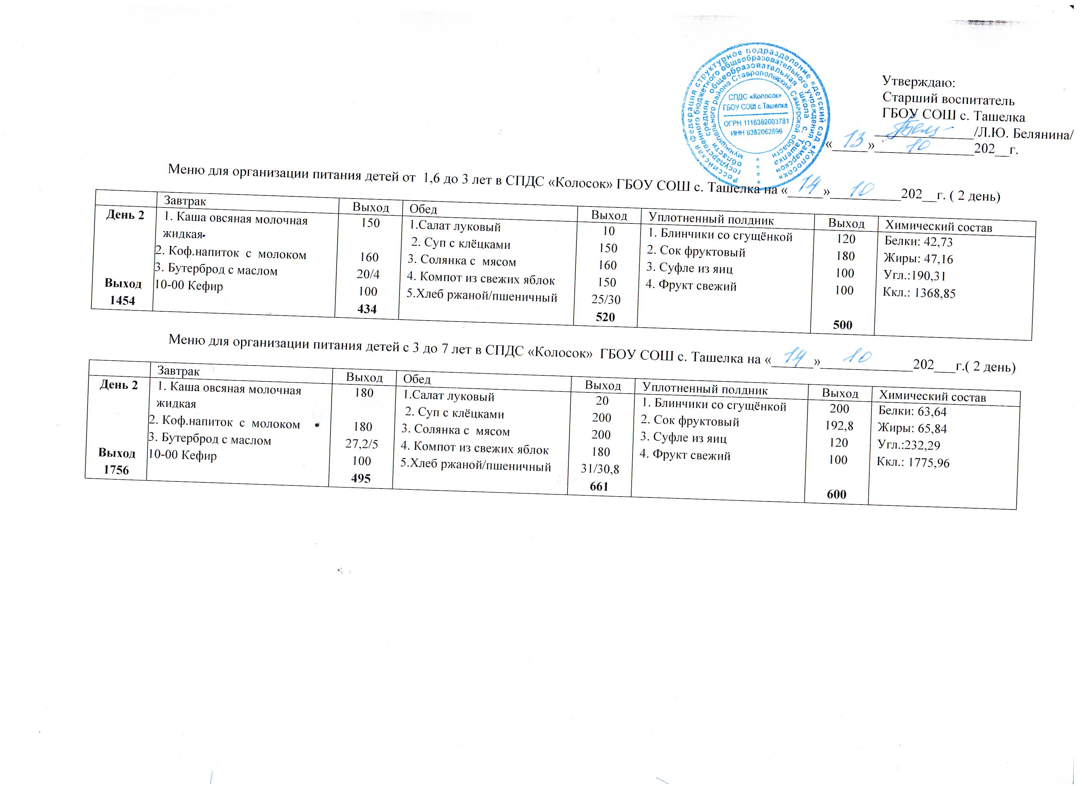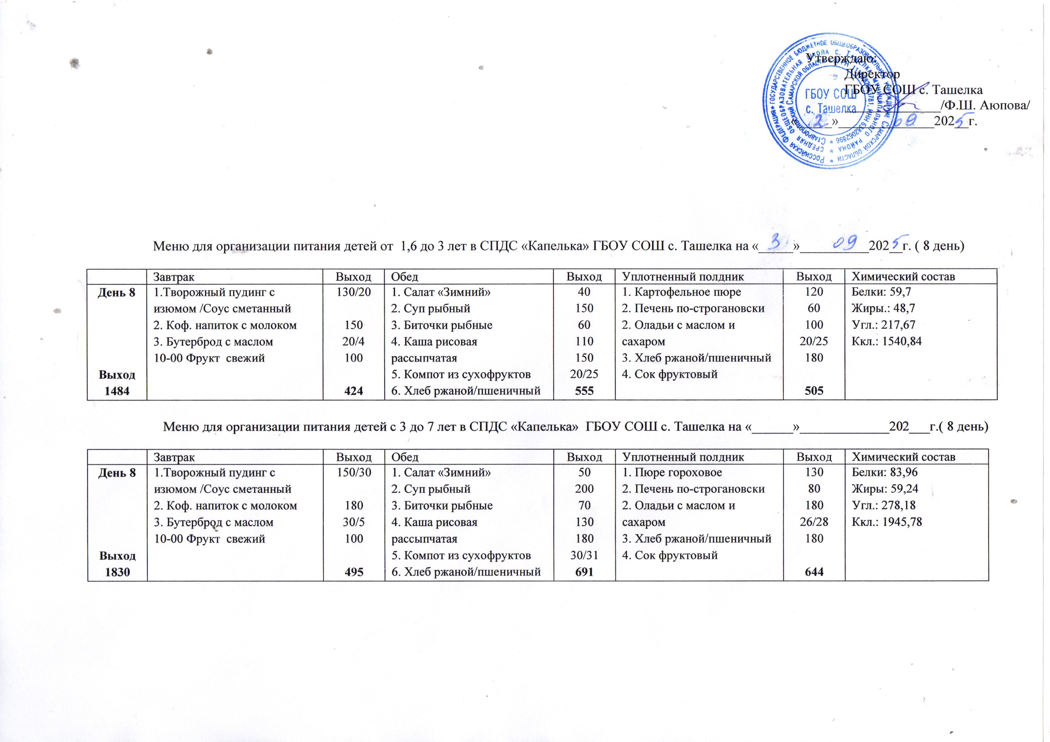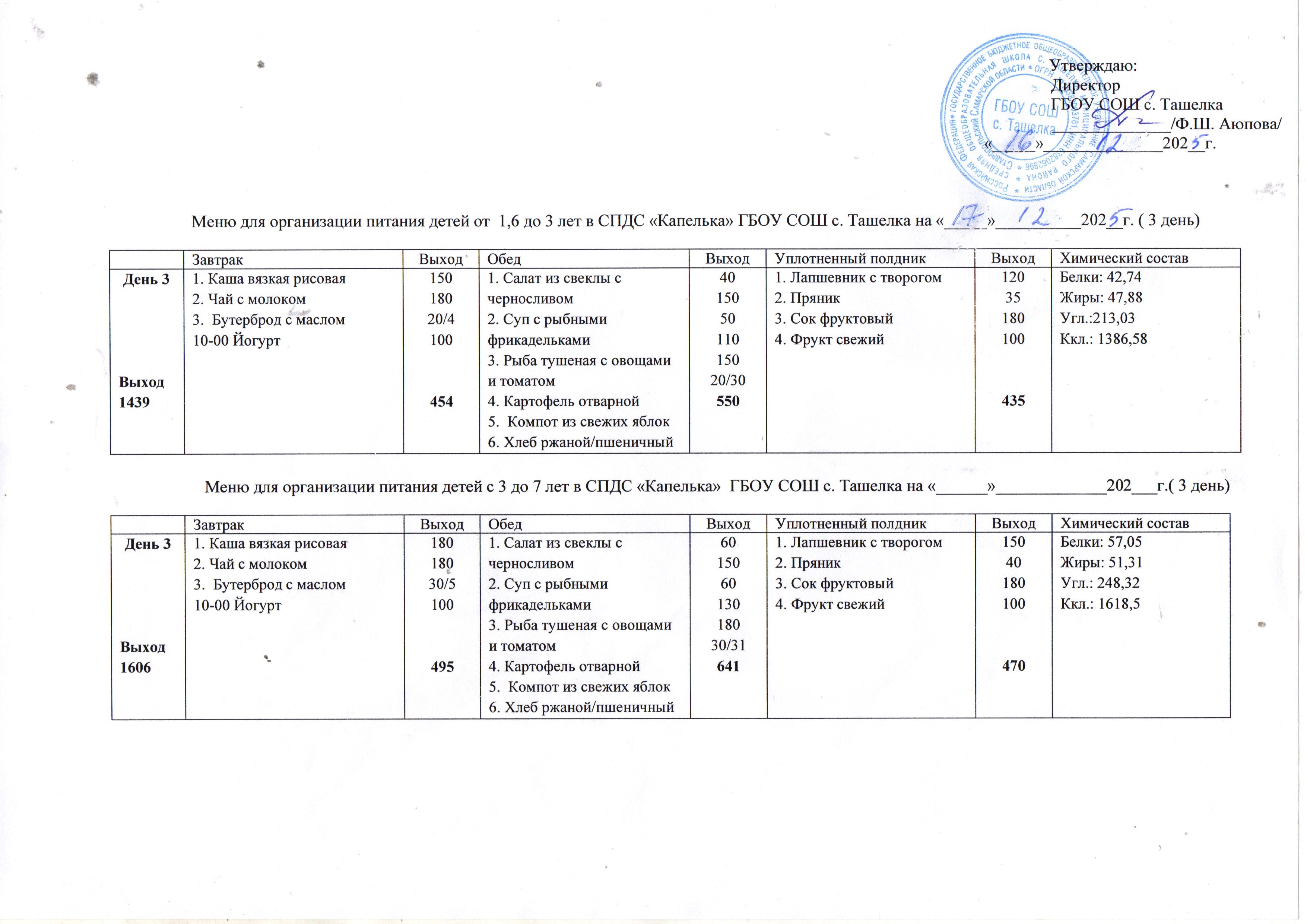 Утвержденное примерное меню (по сезонам в соответствии с возрастной категорией обучающихся)