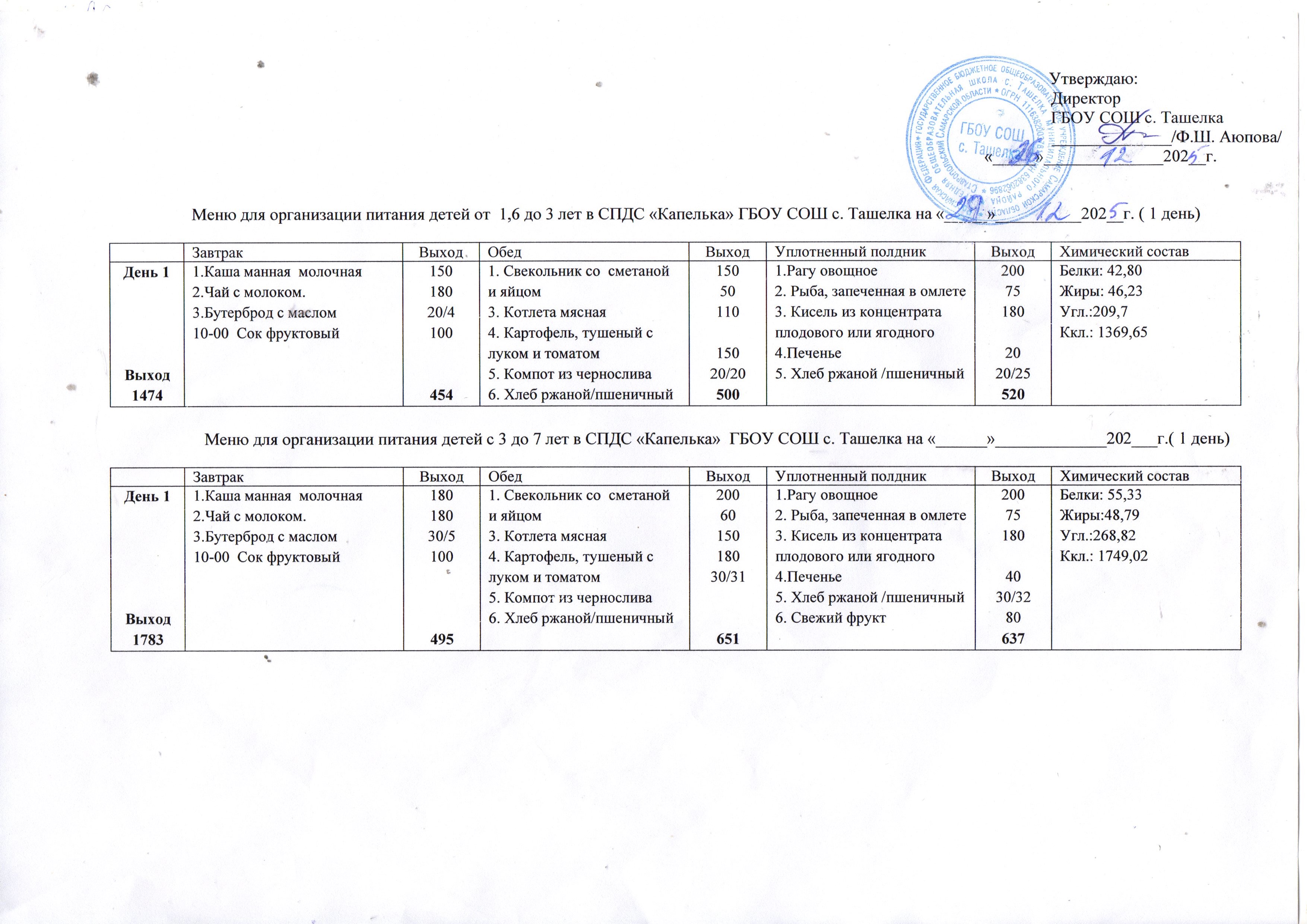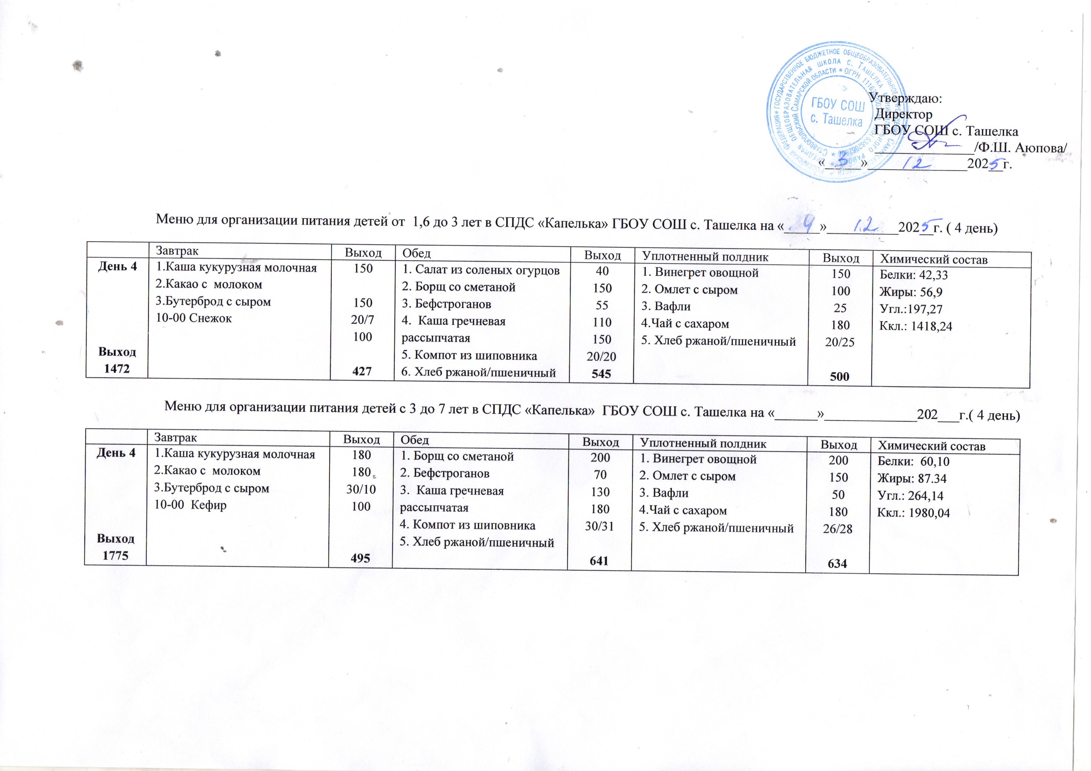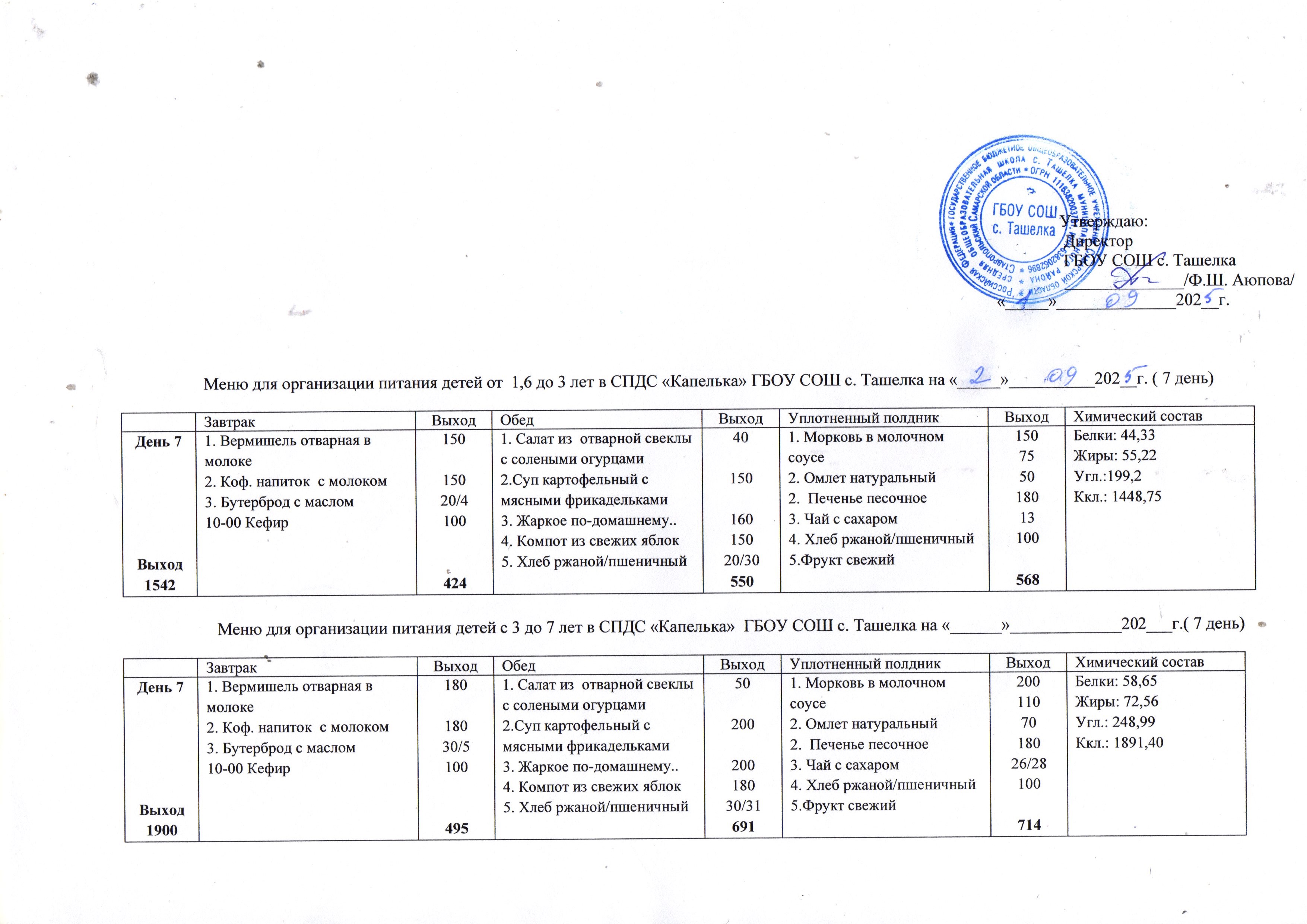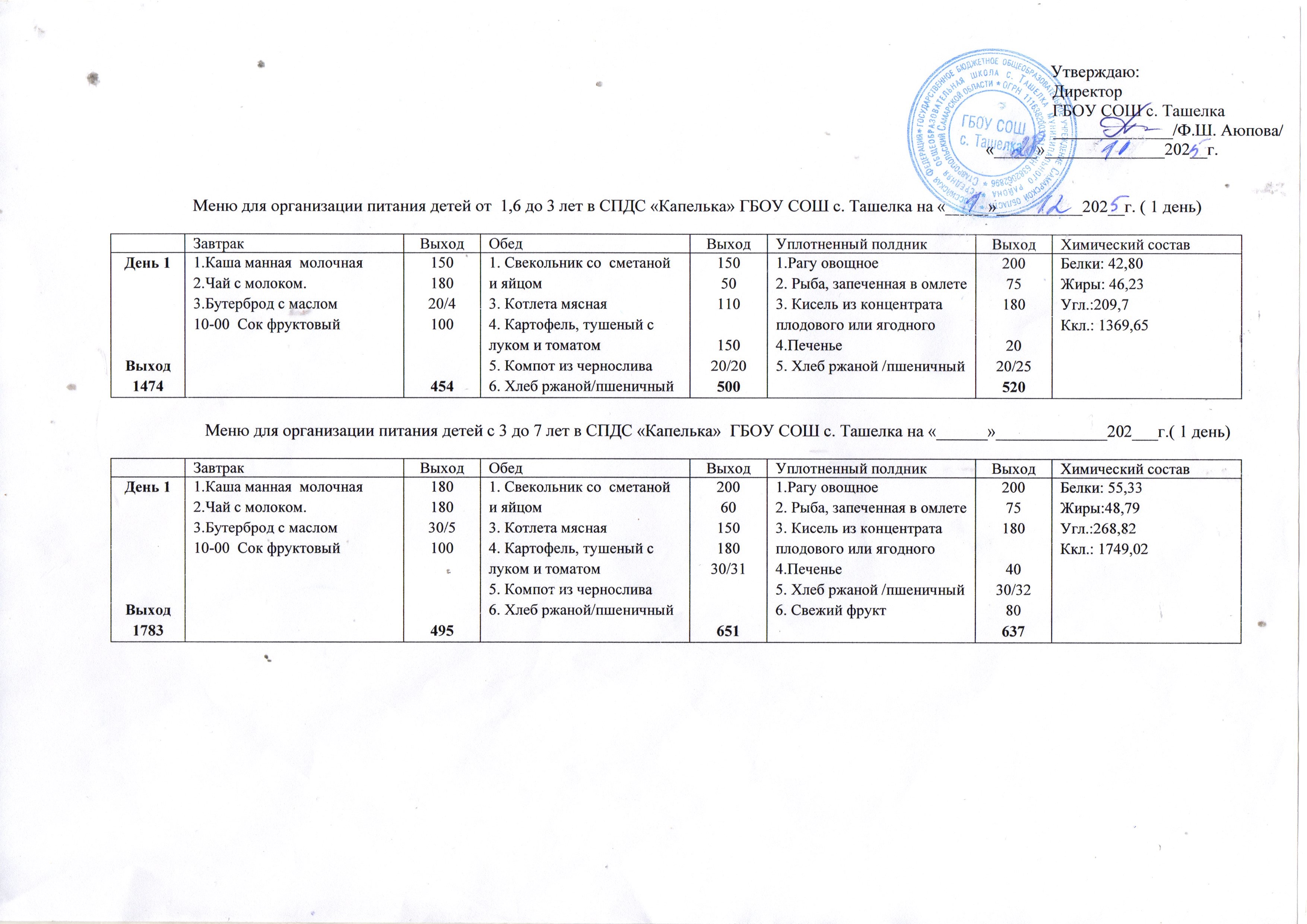 Утвержденное примерное меню (по сезонам в соответствии с возрастной категорией обучающихся)