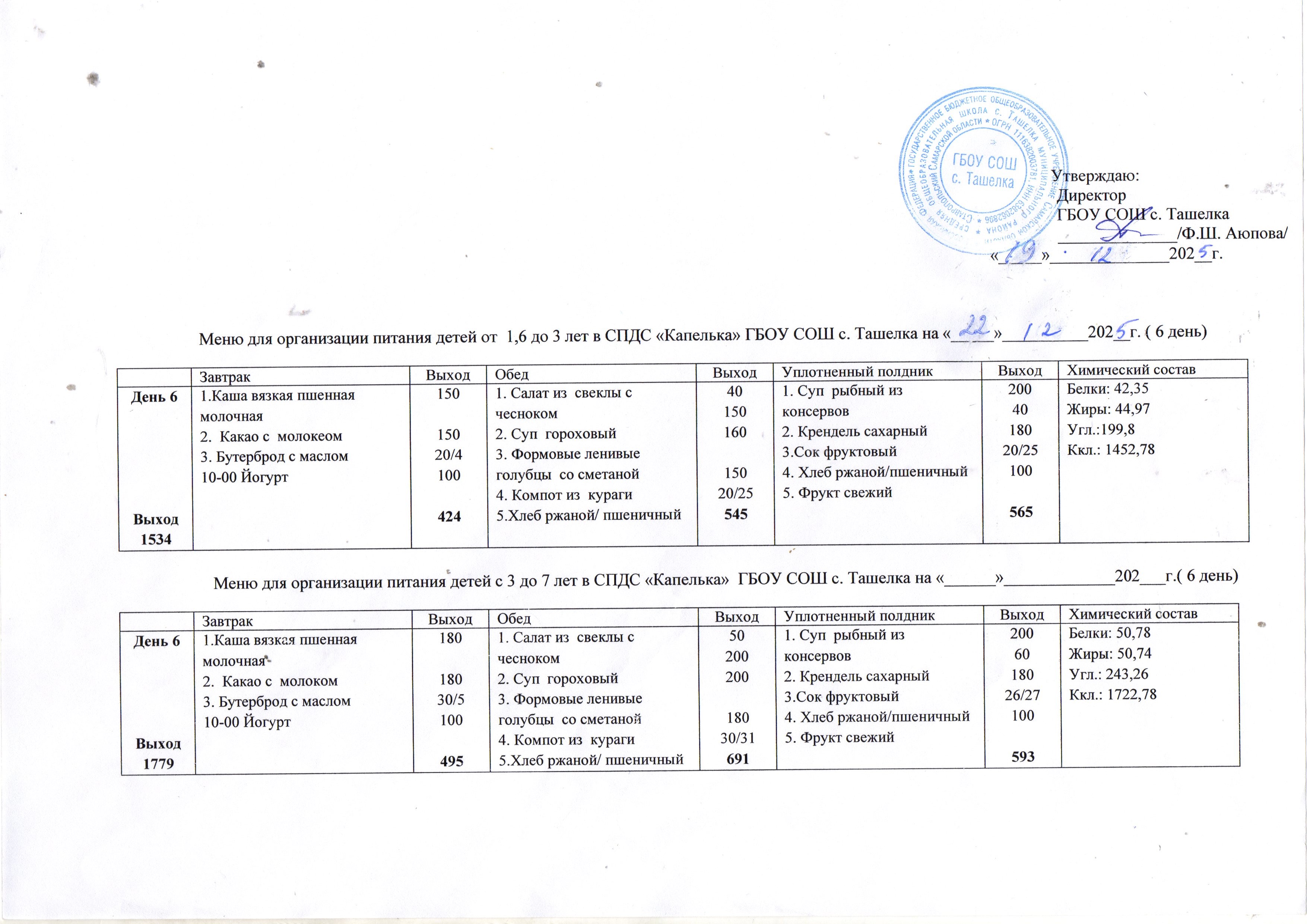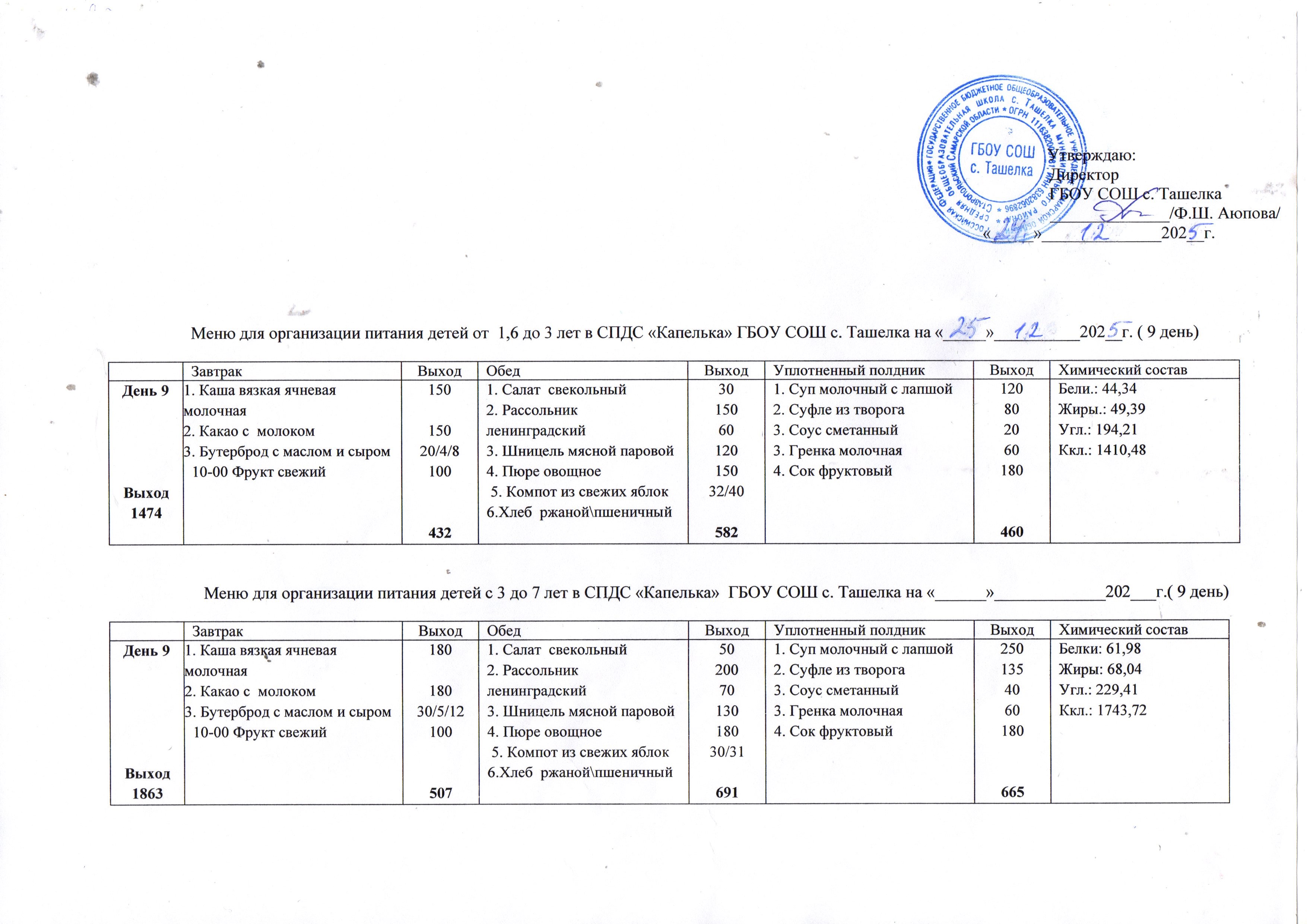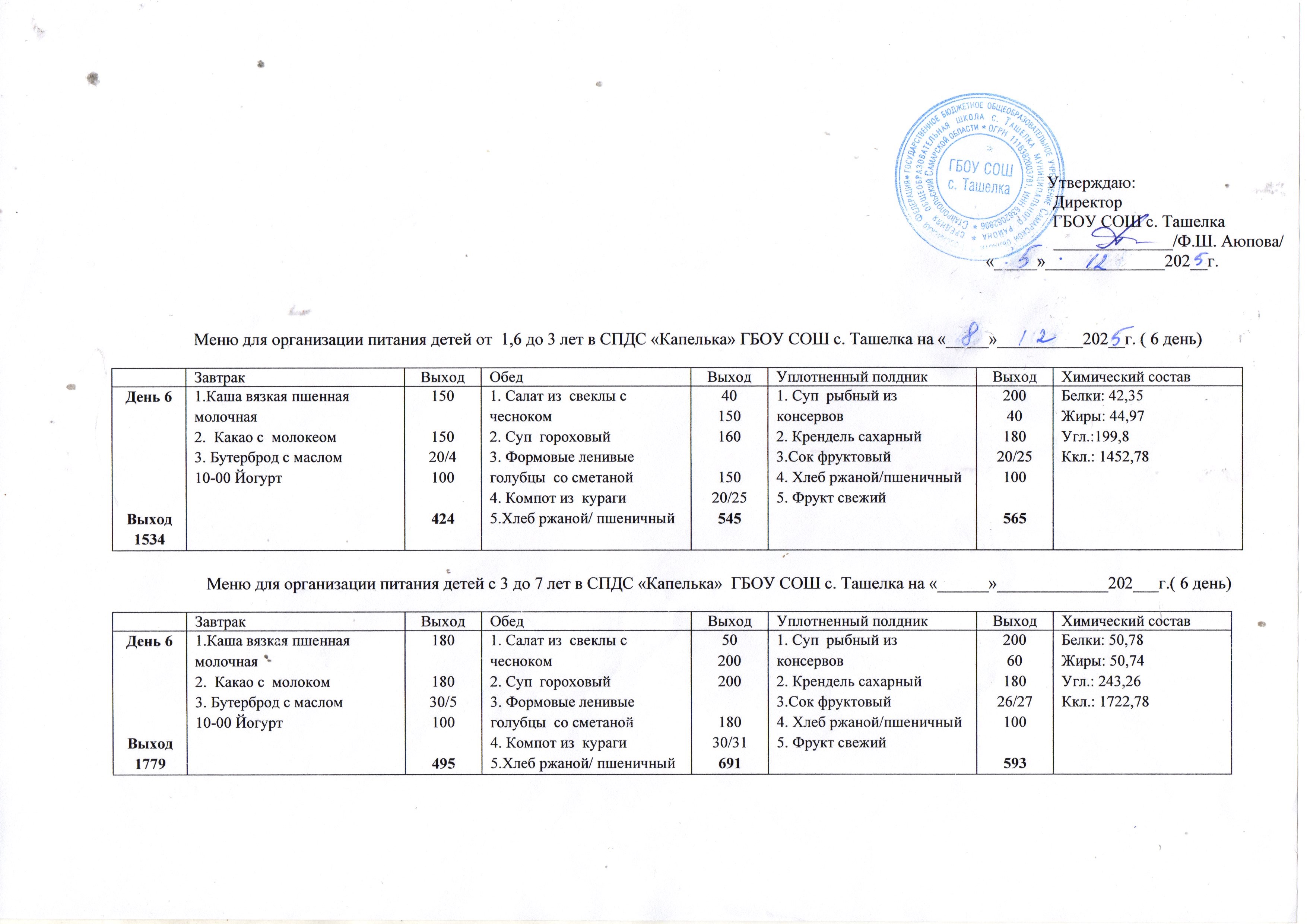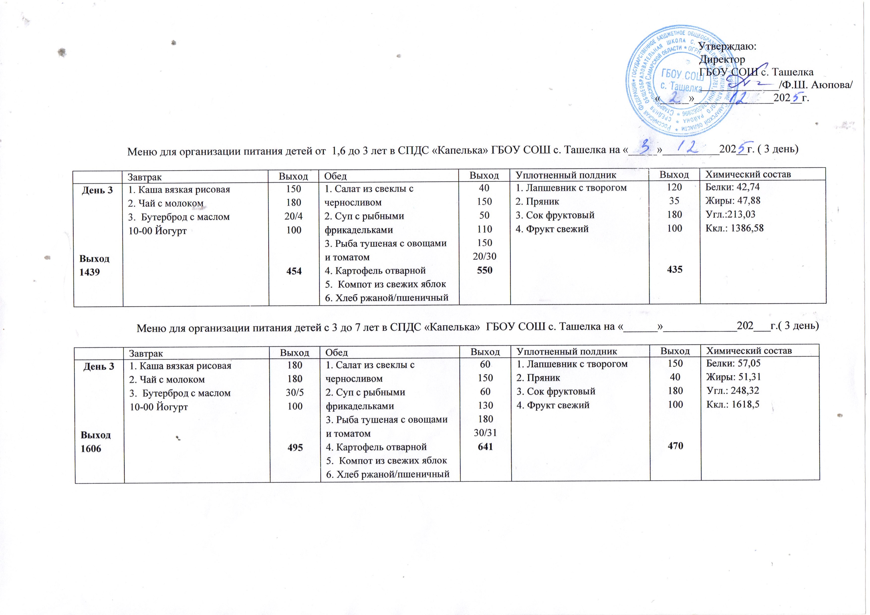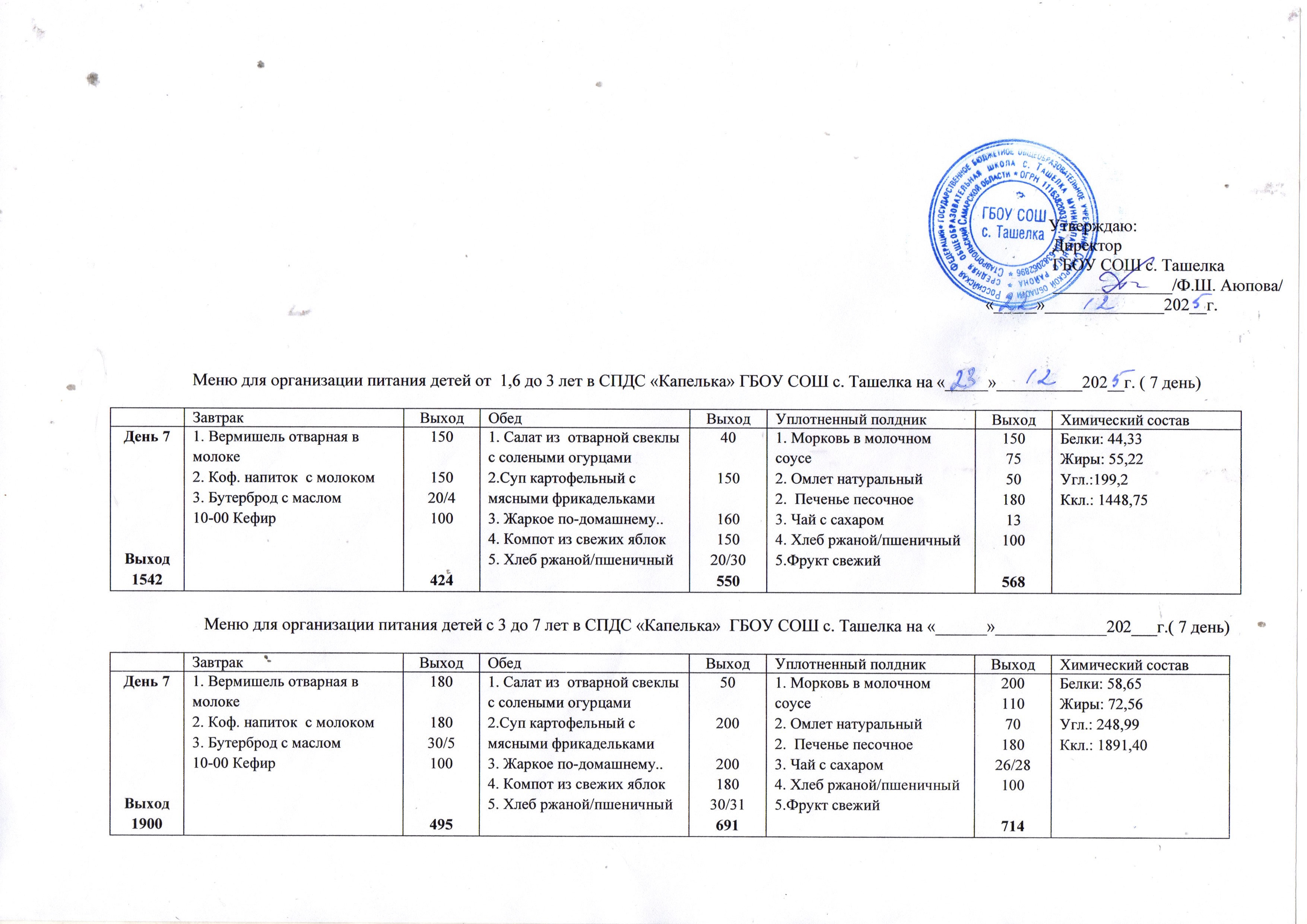 Утвержденное примерное меню (по сезонам в соответствии с возрастной категорией обучающихся)