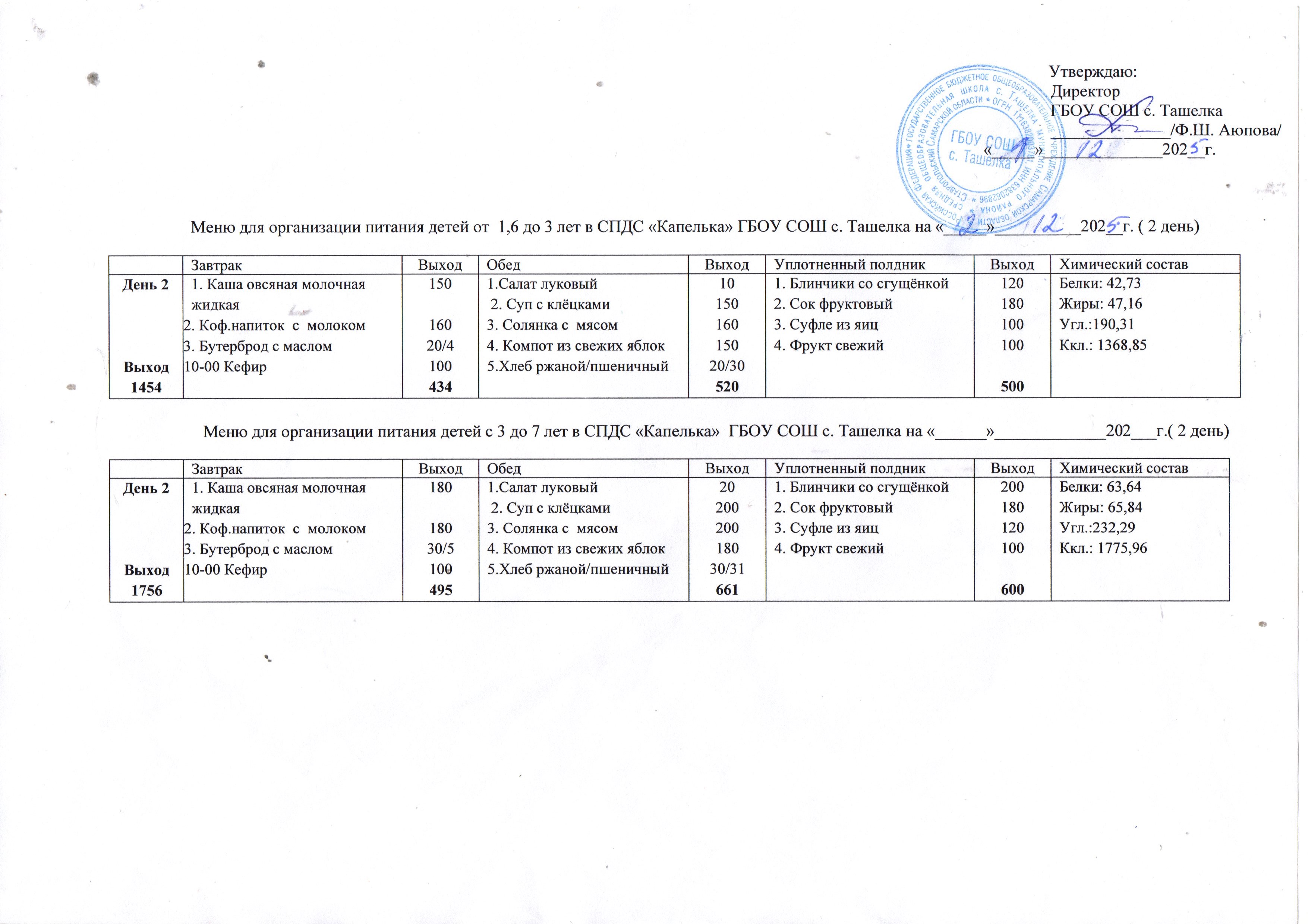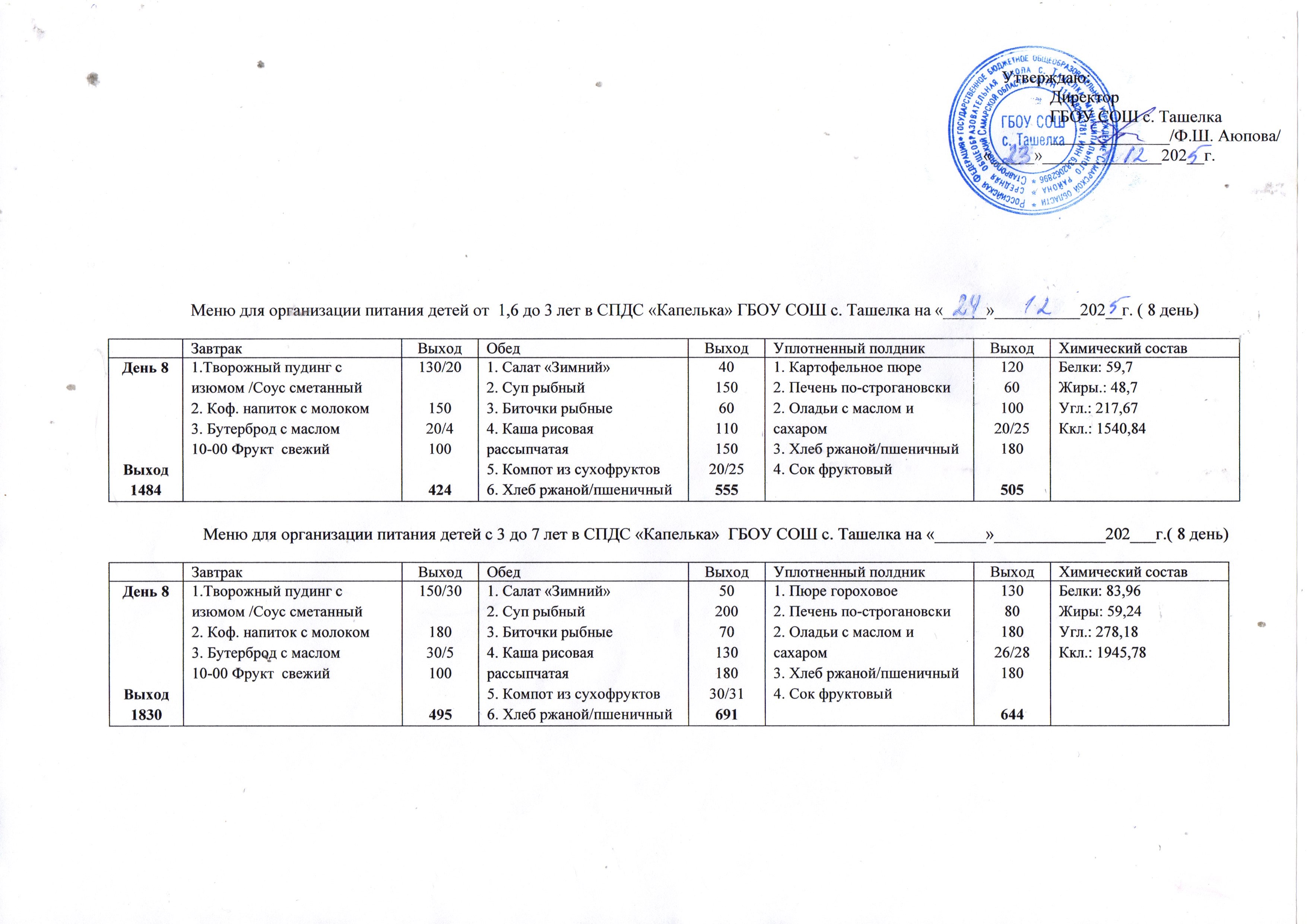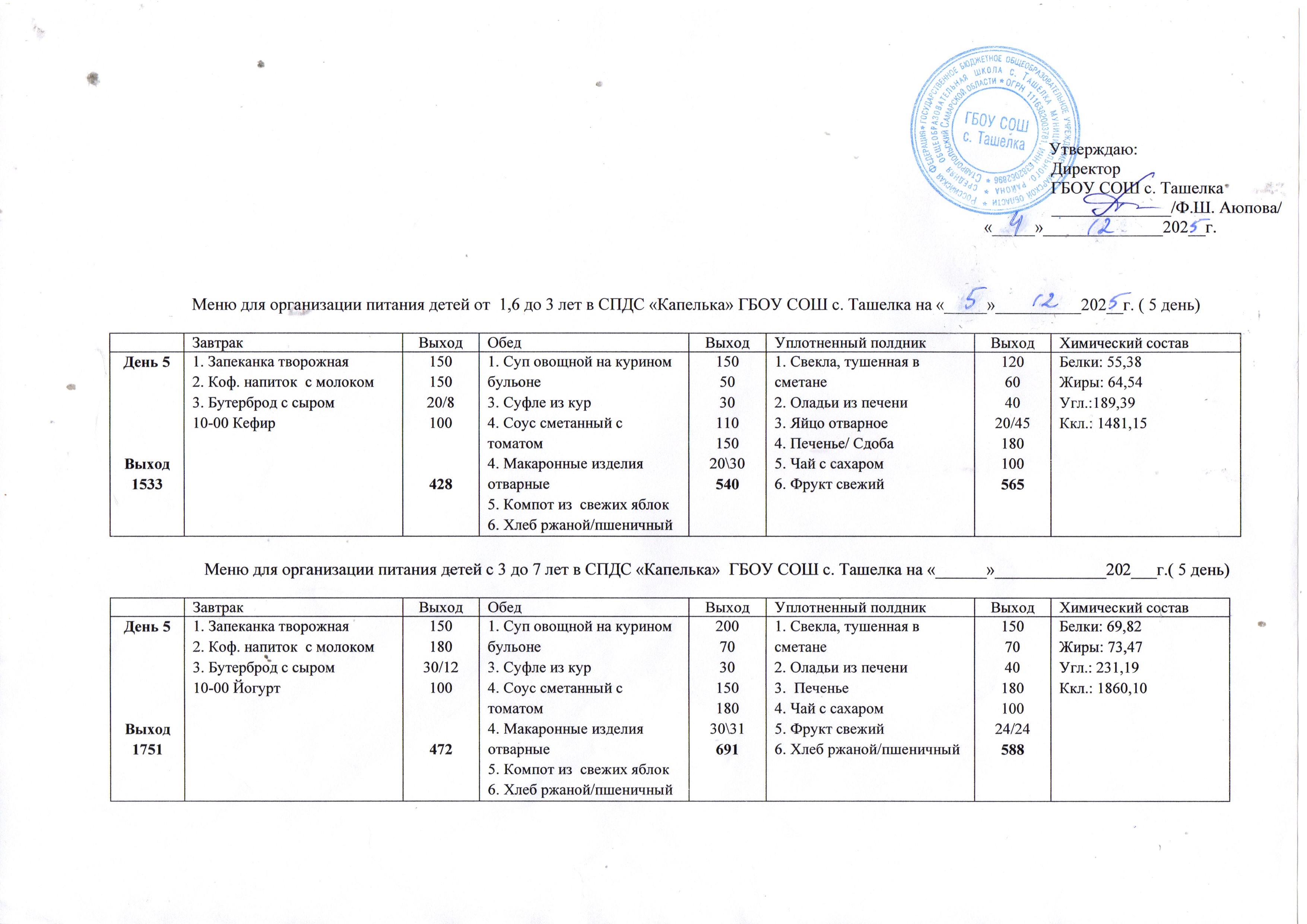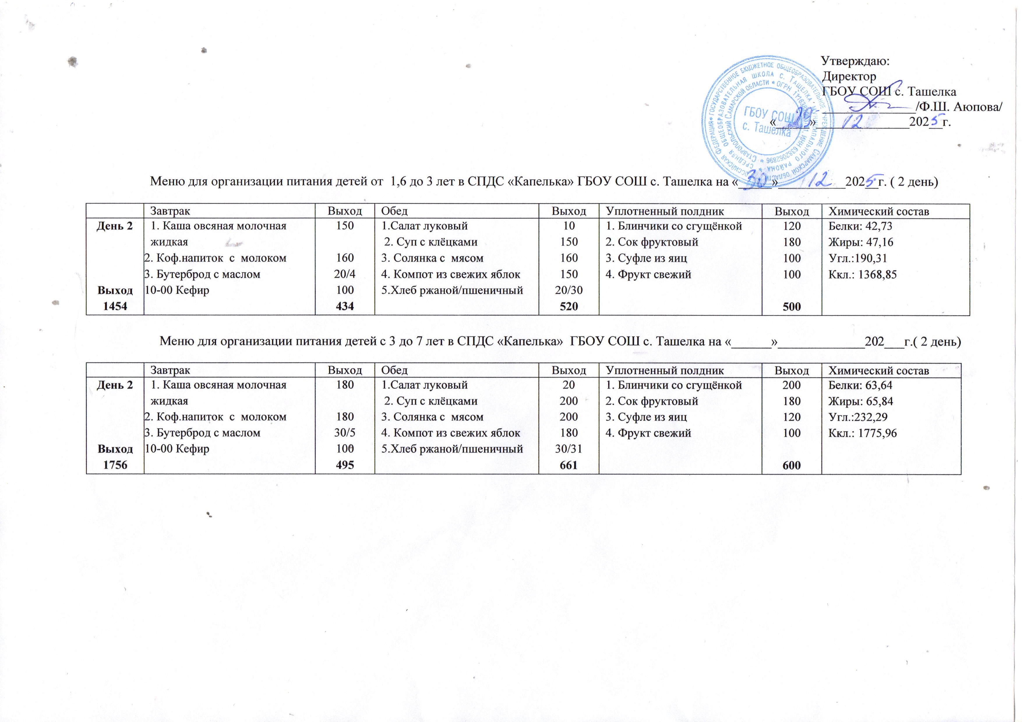 Утвержденное примерное меню (по сезонам в соответствии с возрастной категорией обучающихся)