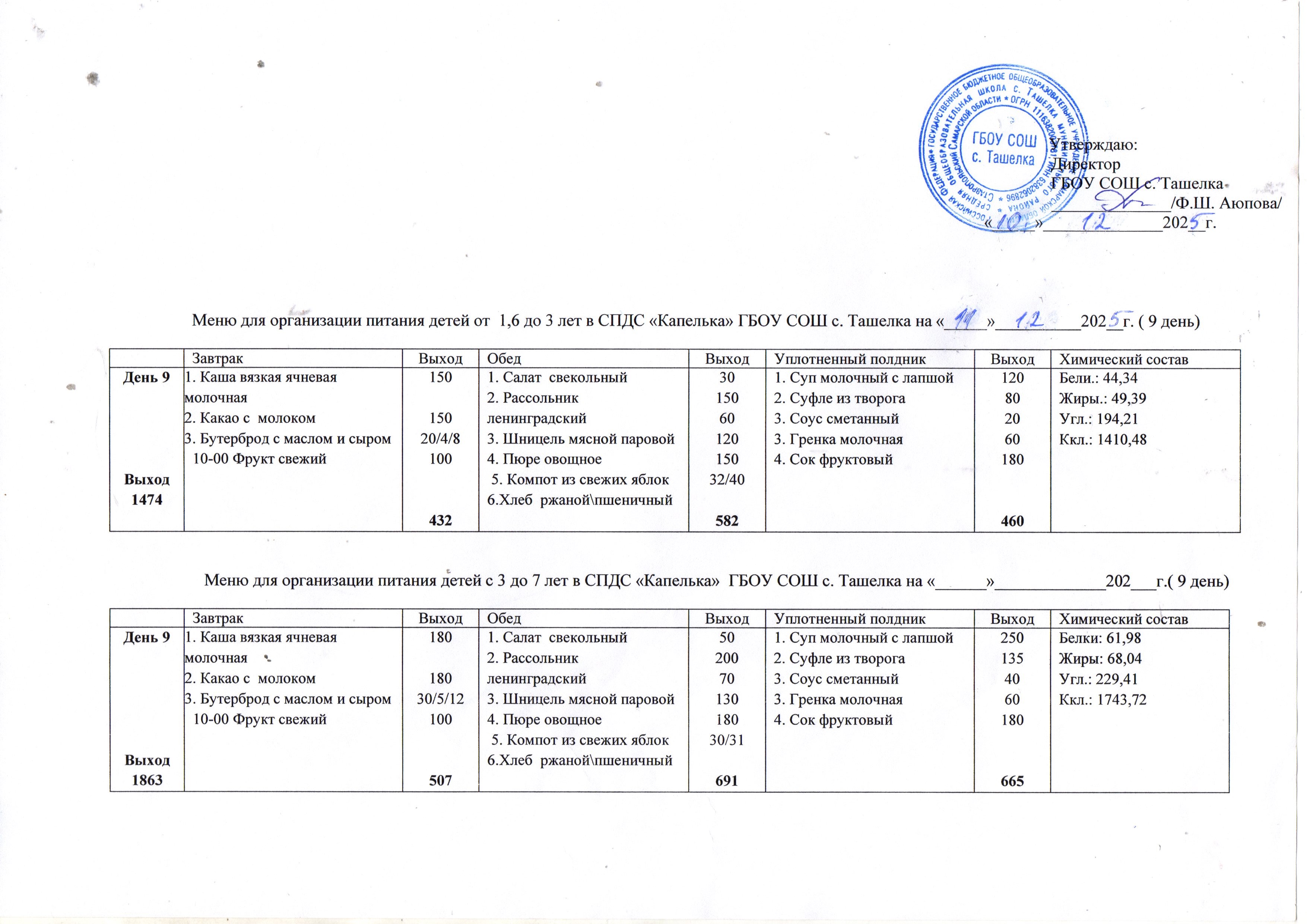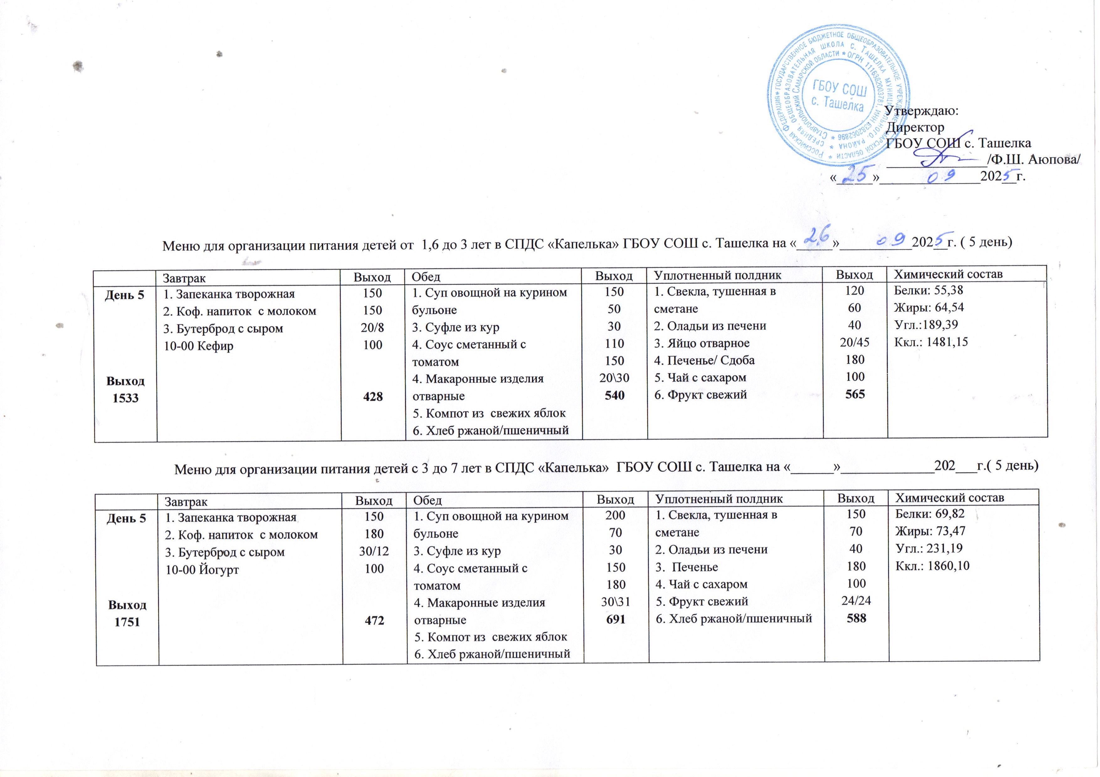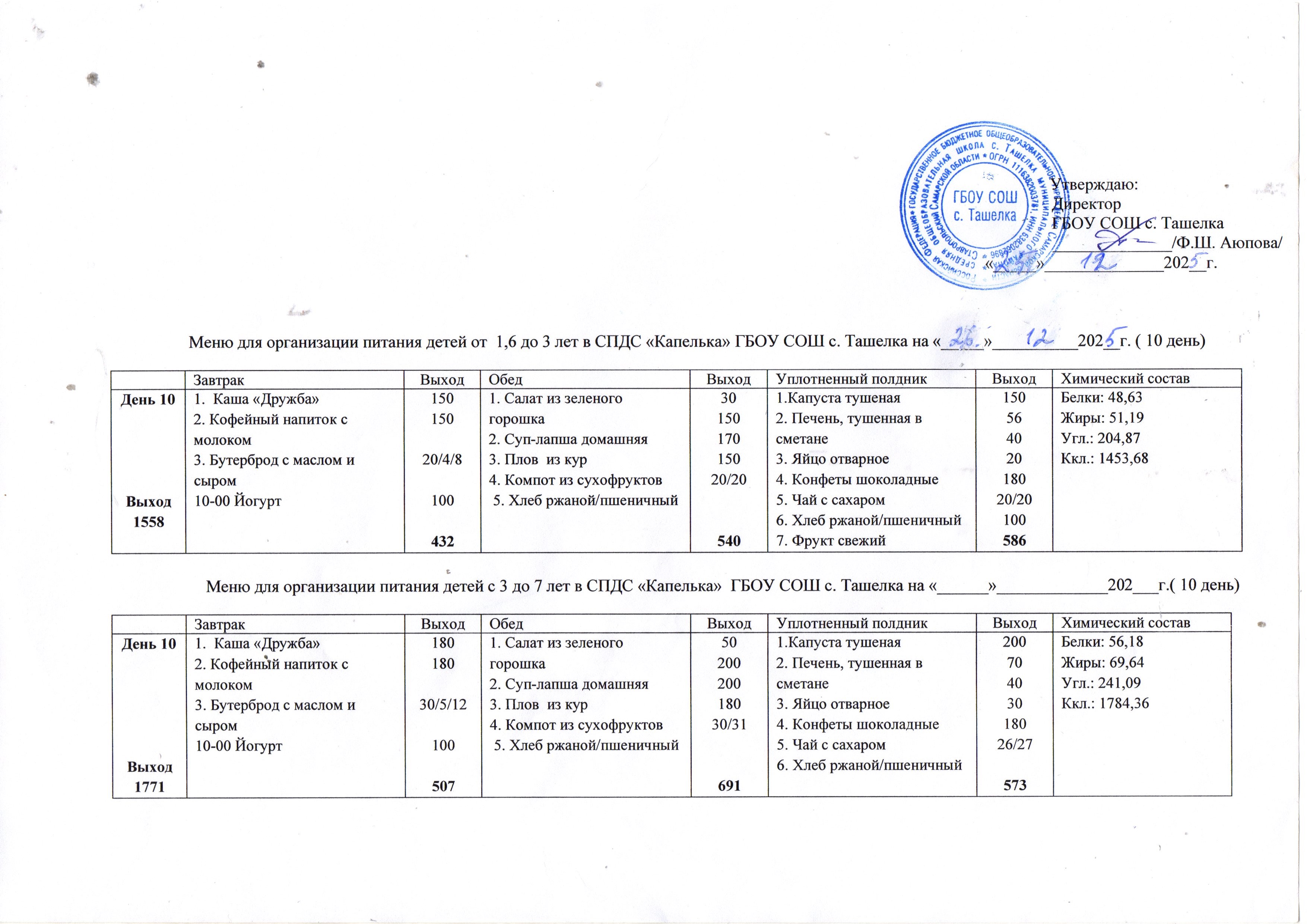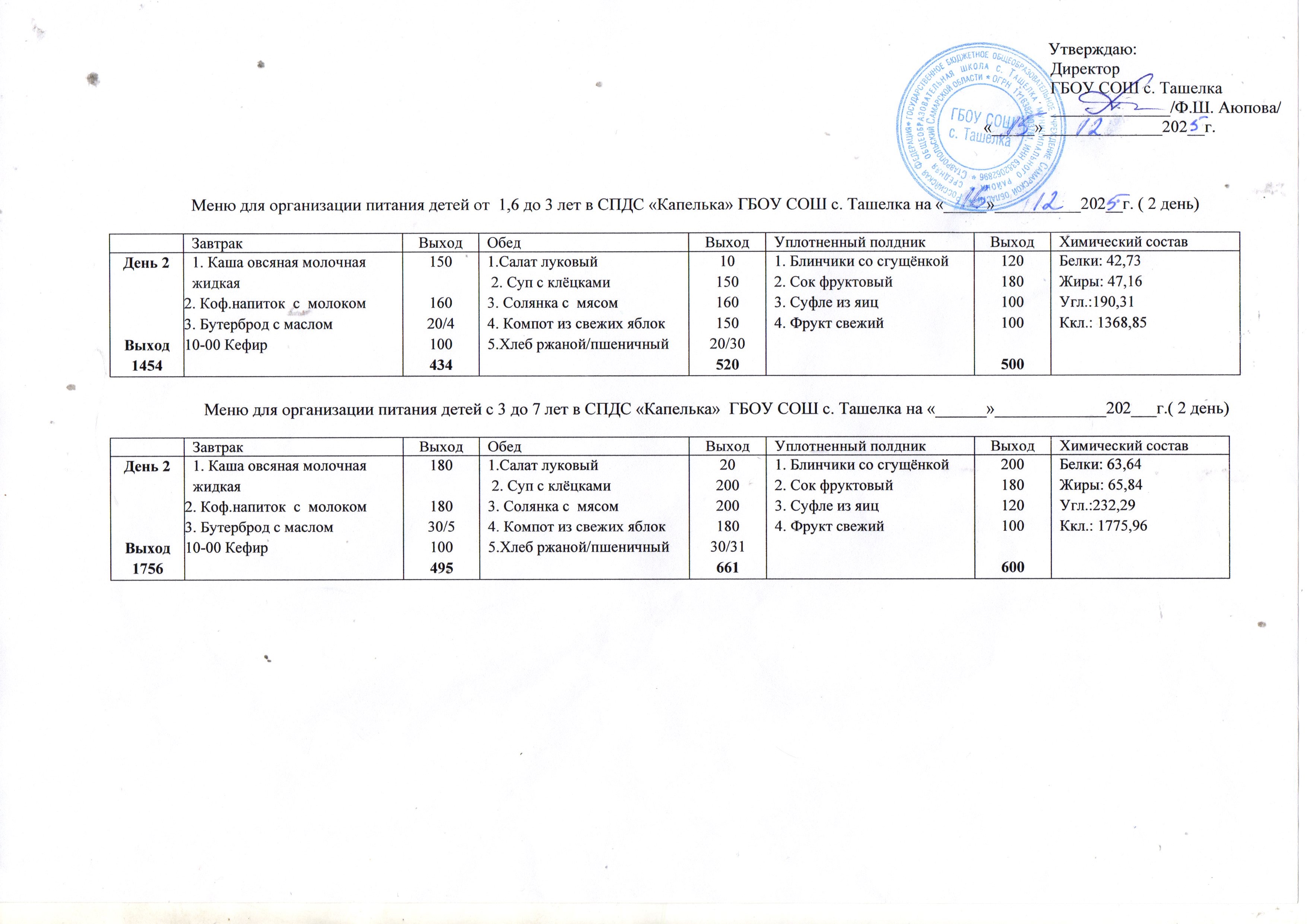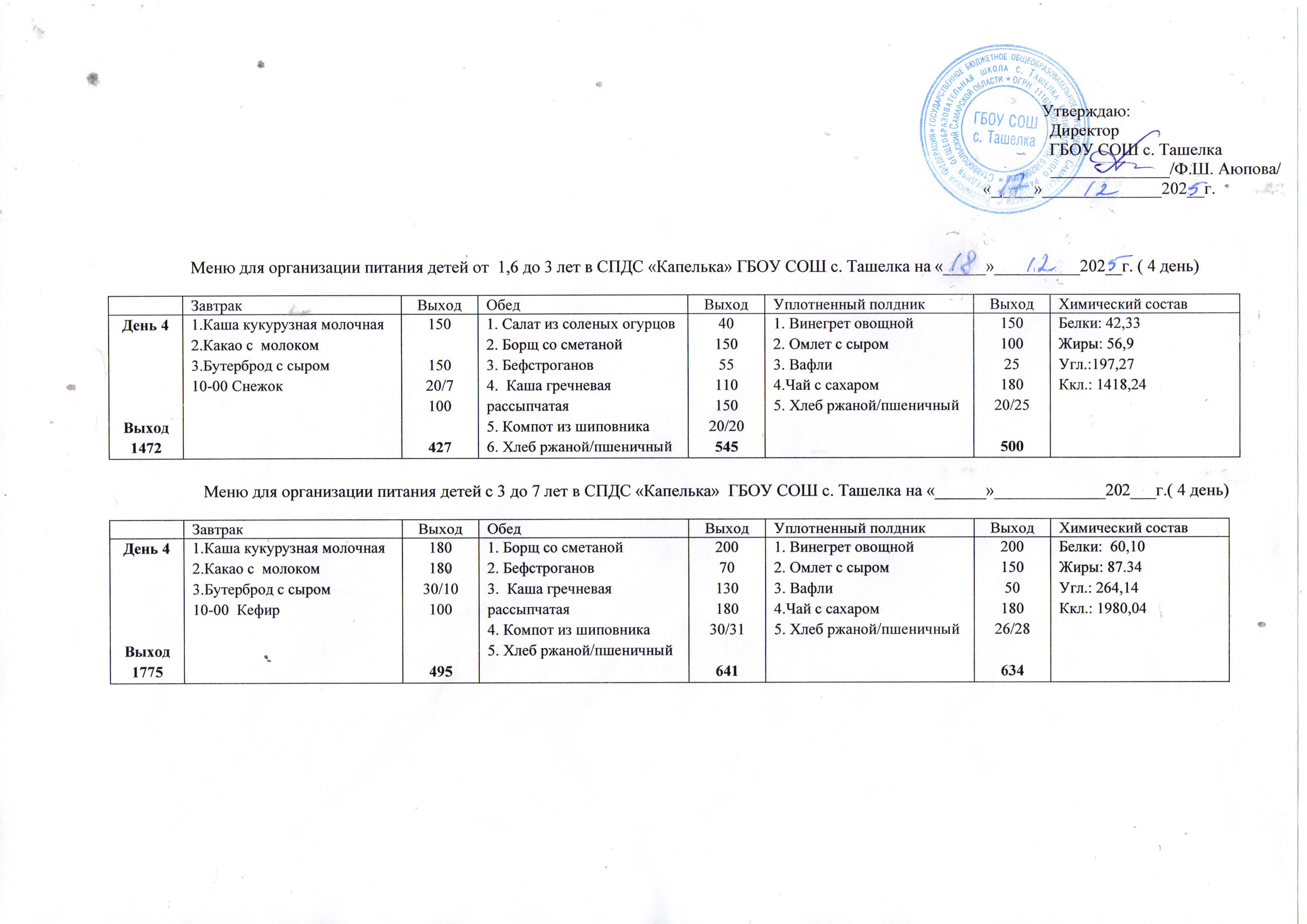 Утвержденное примерное меню (по сезонам в соответствии с возрастной категорией обучающихся)