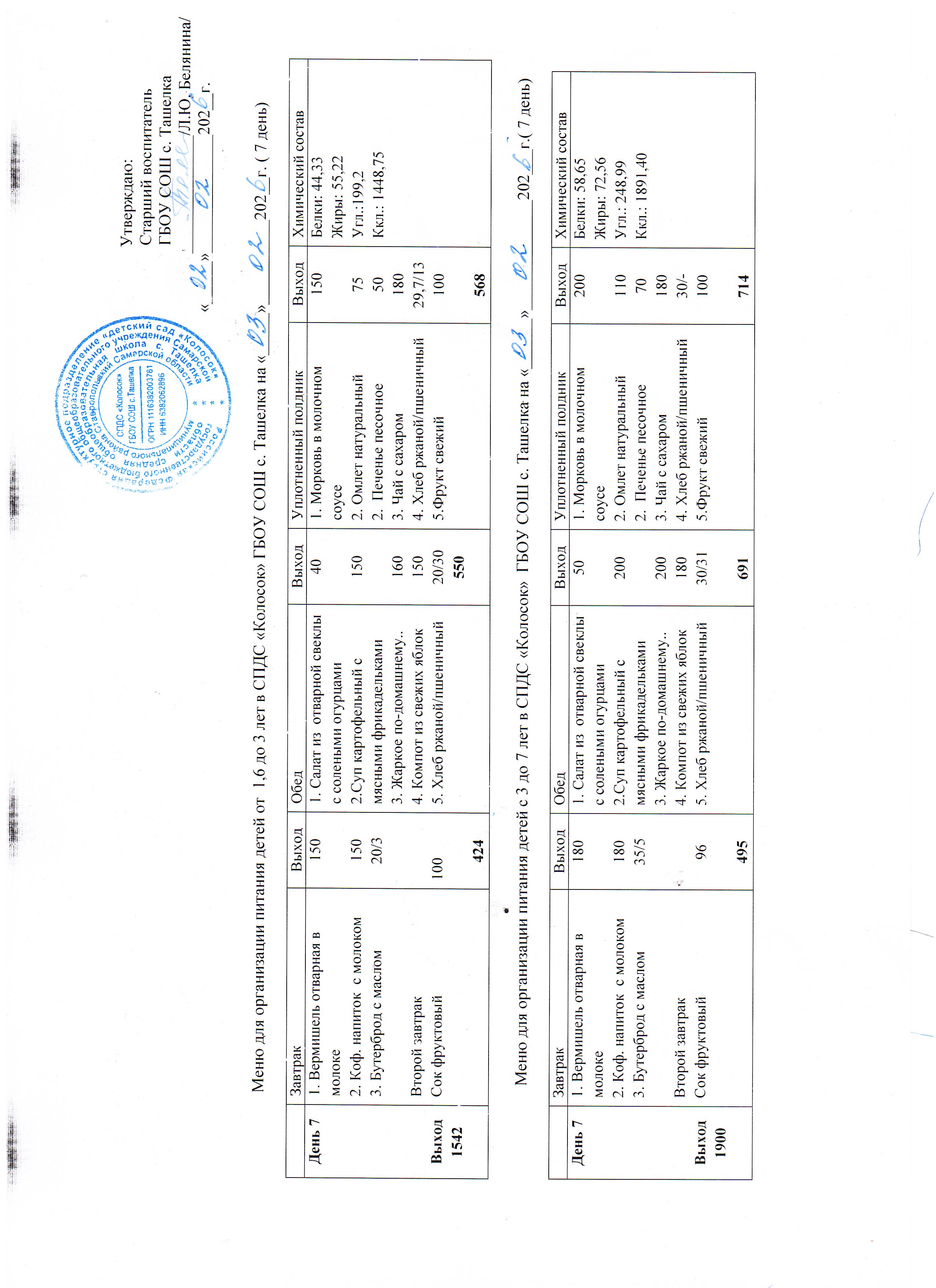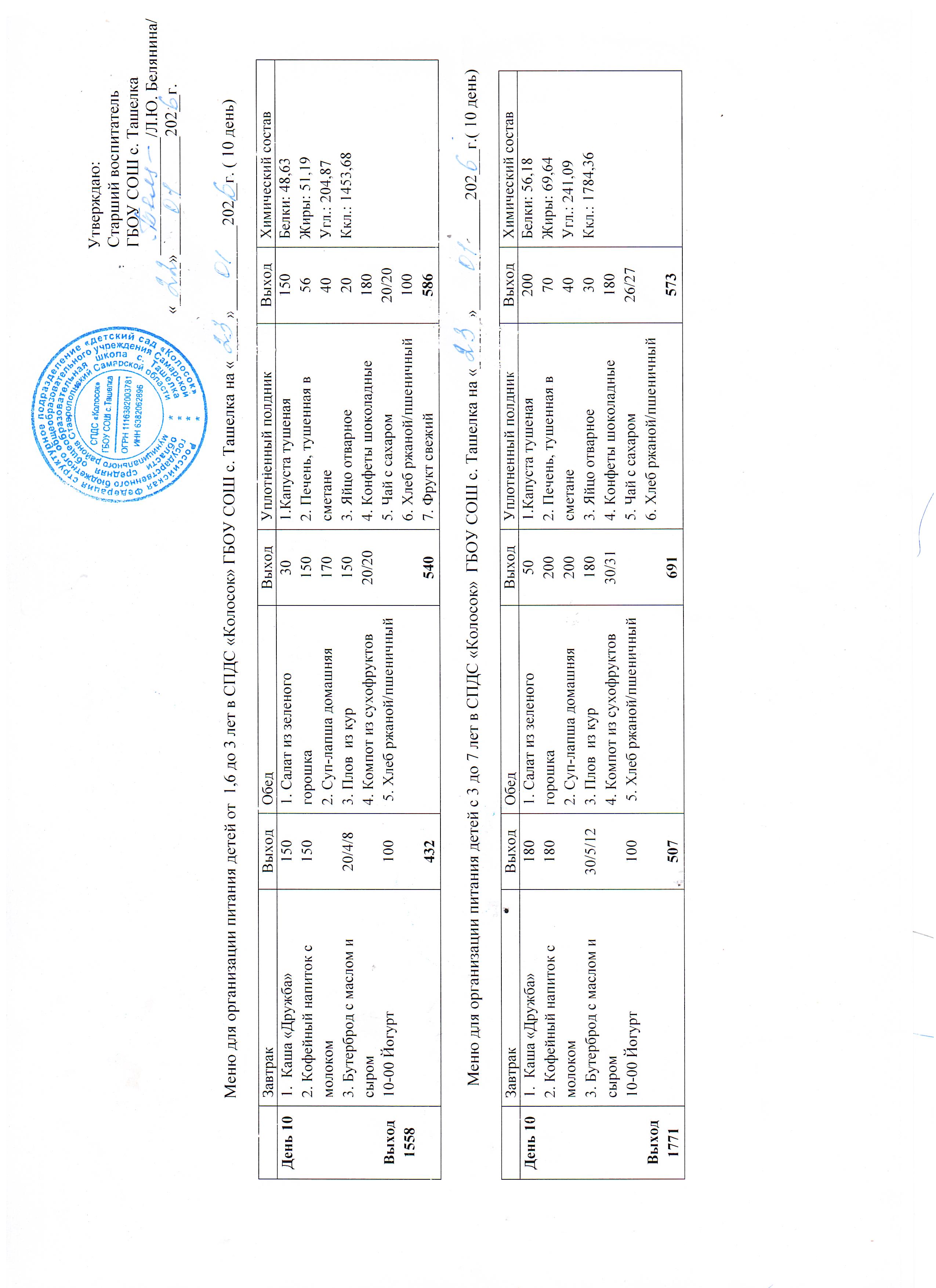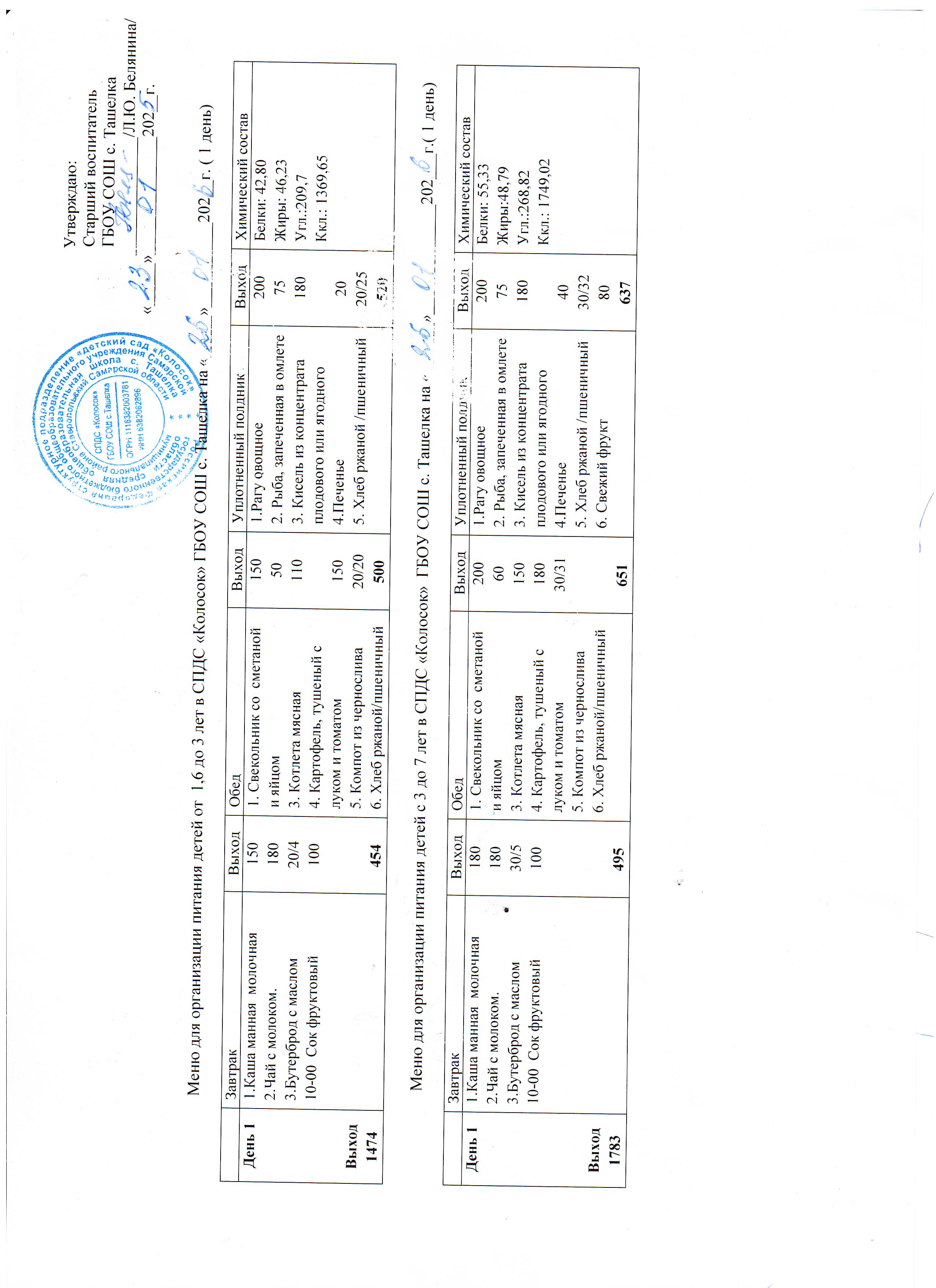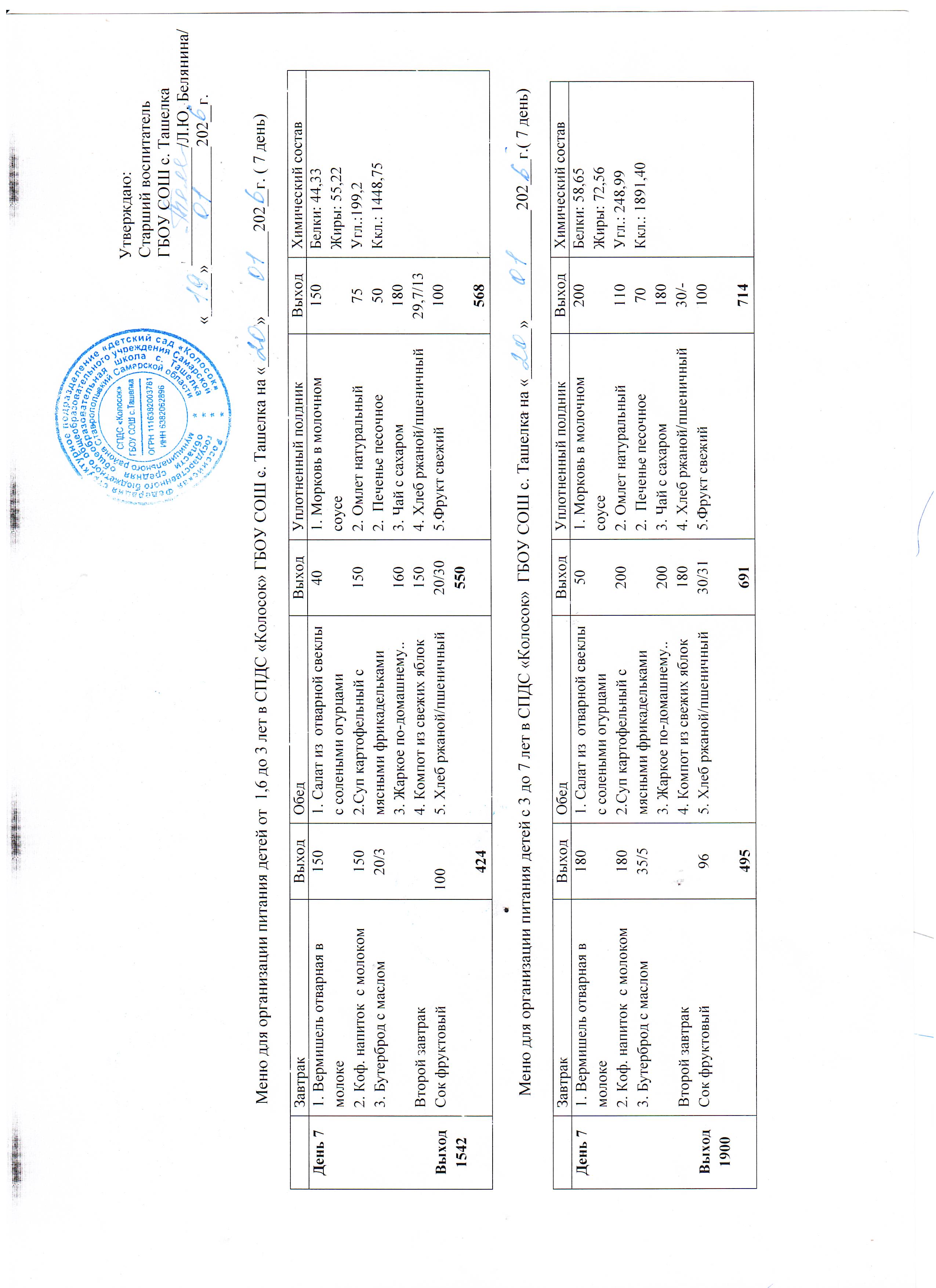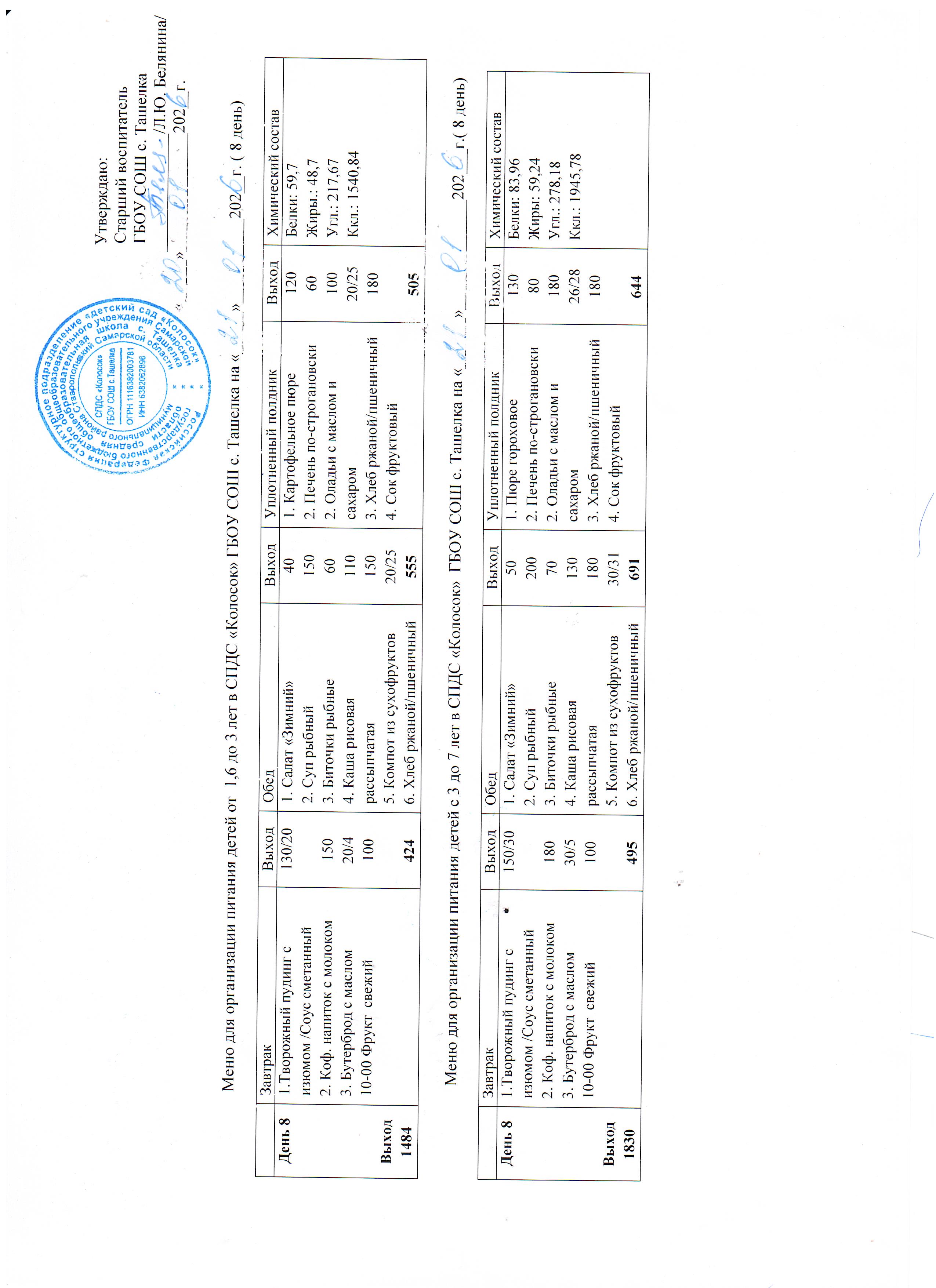 Информация об обслуживающем предприятии (информация о поставщике продовольственной продукции) с контактными данными