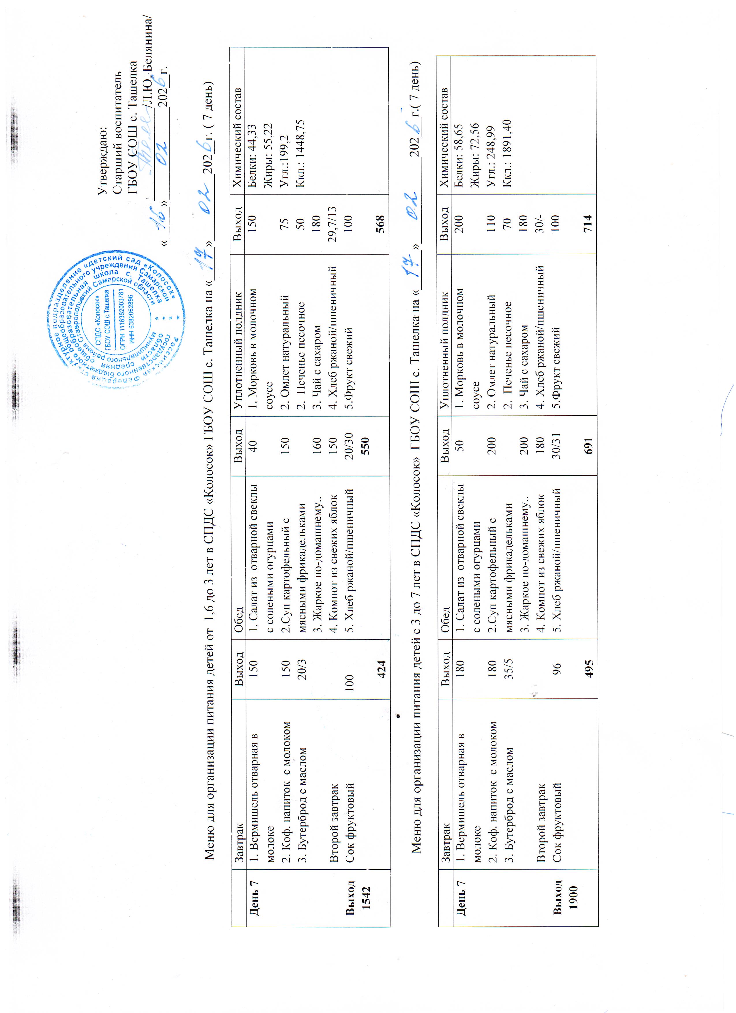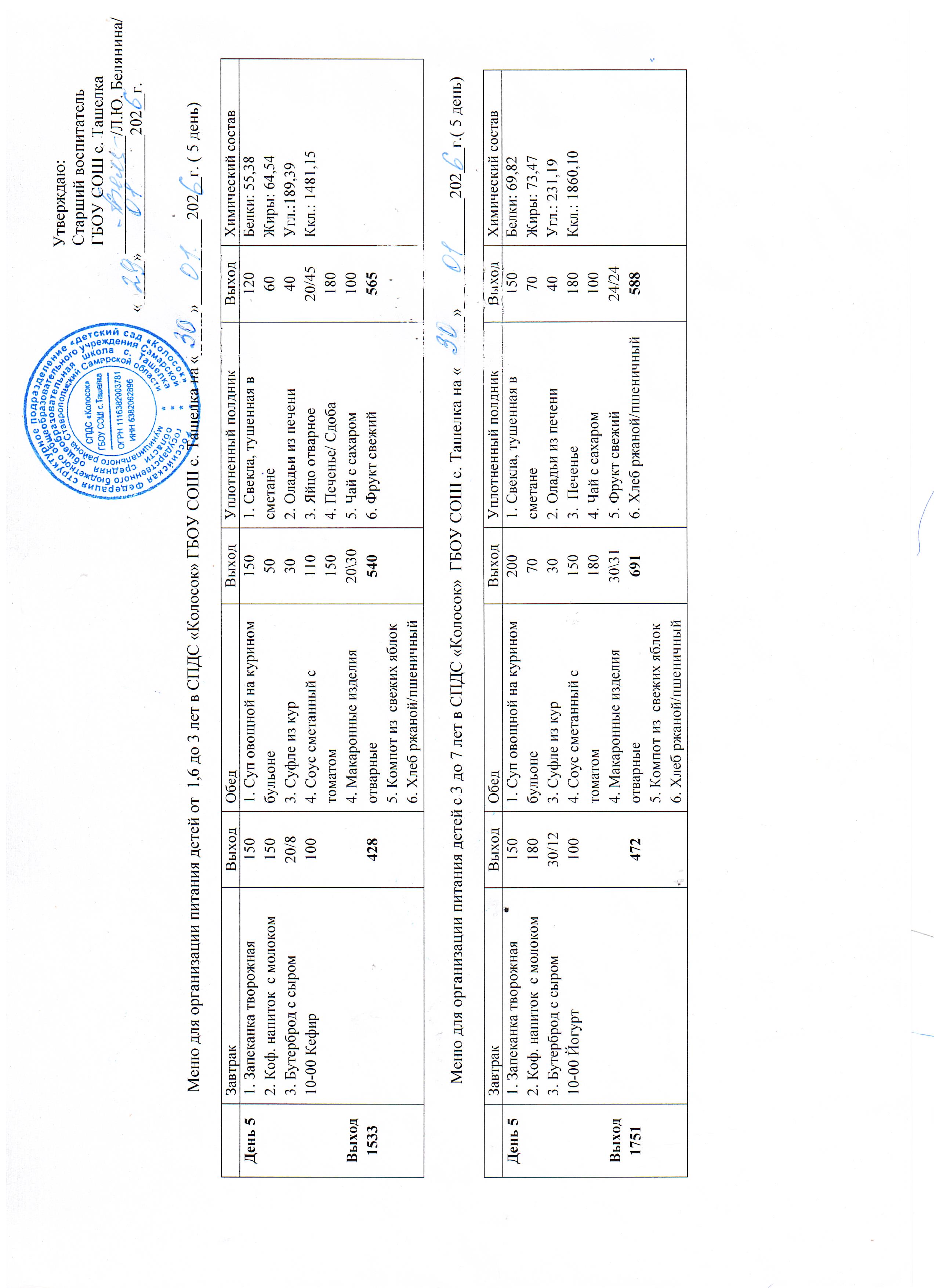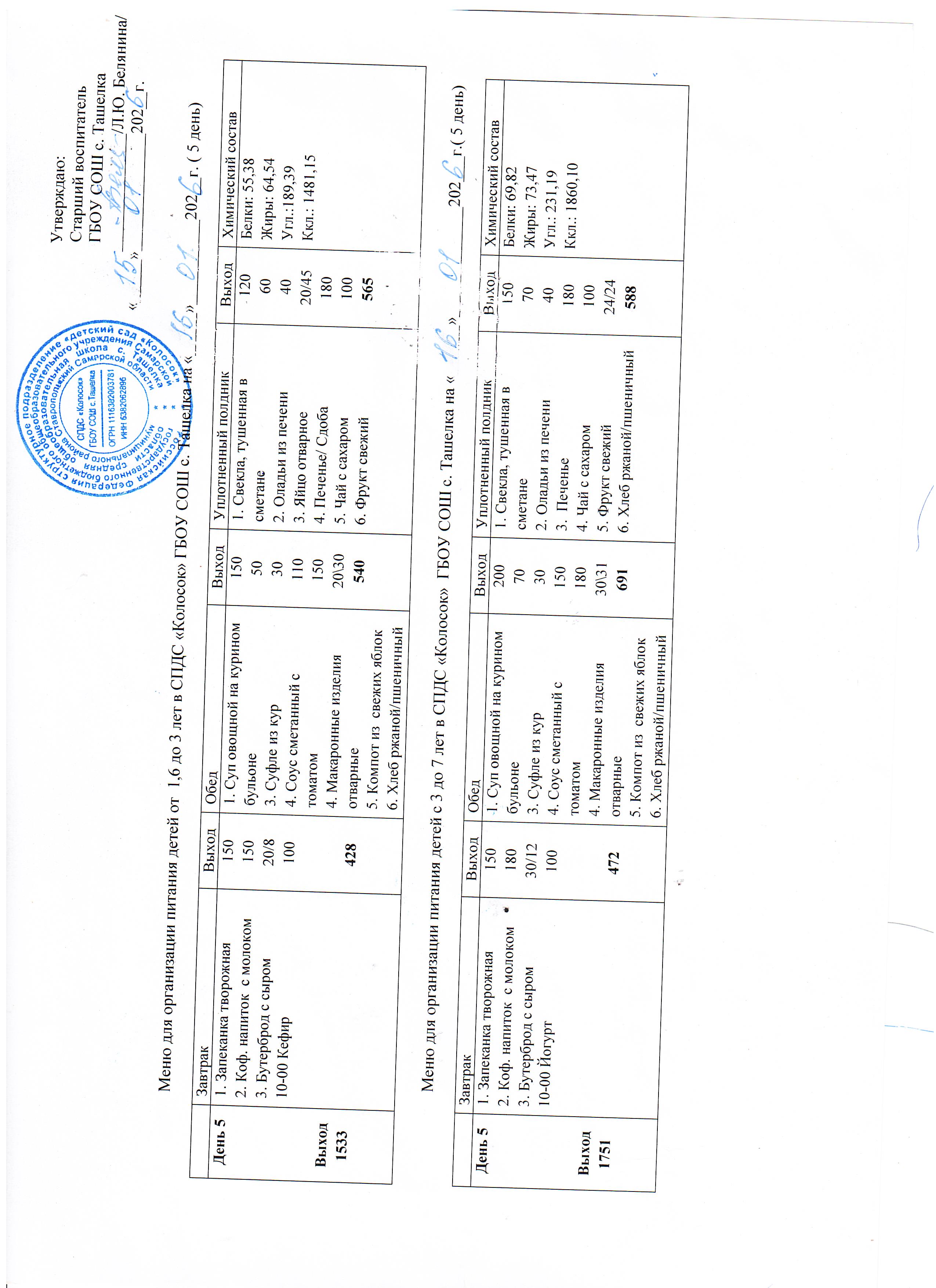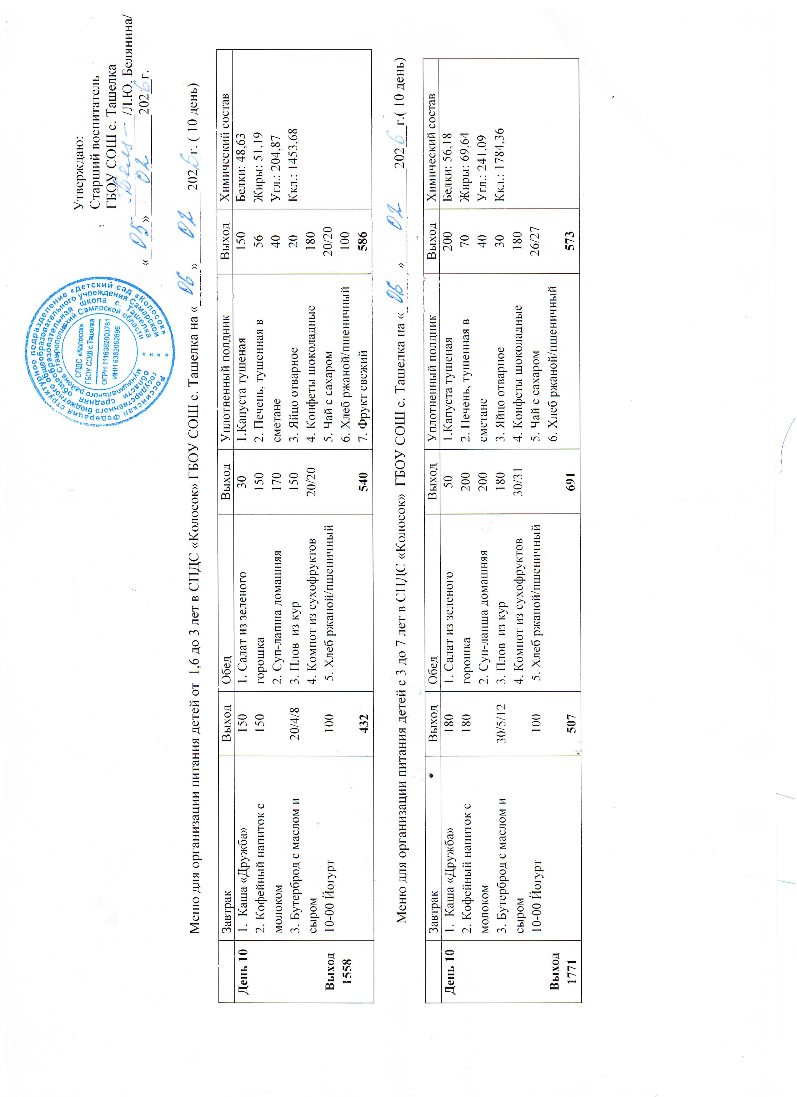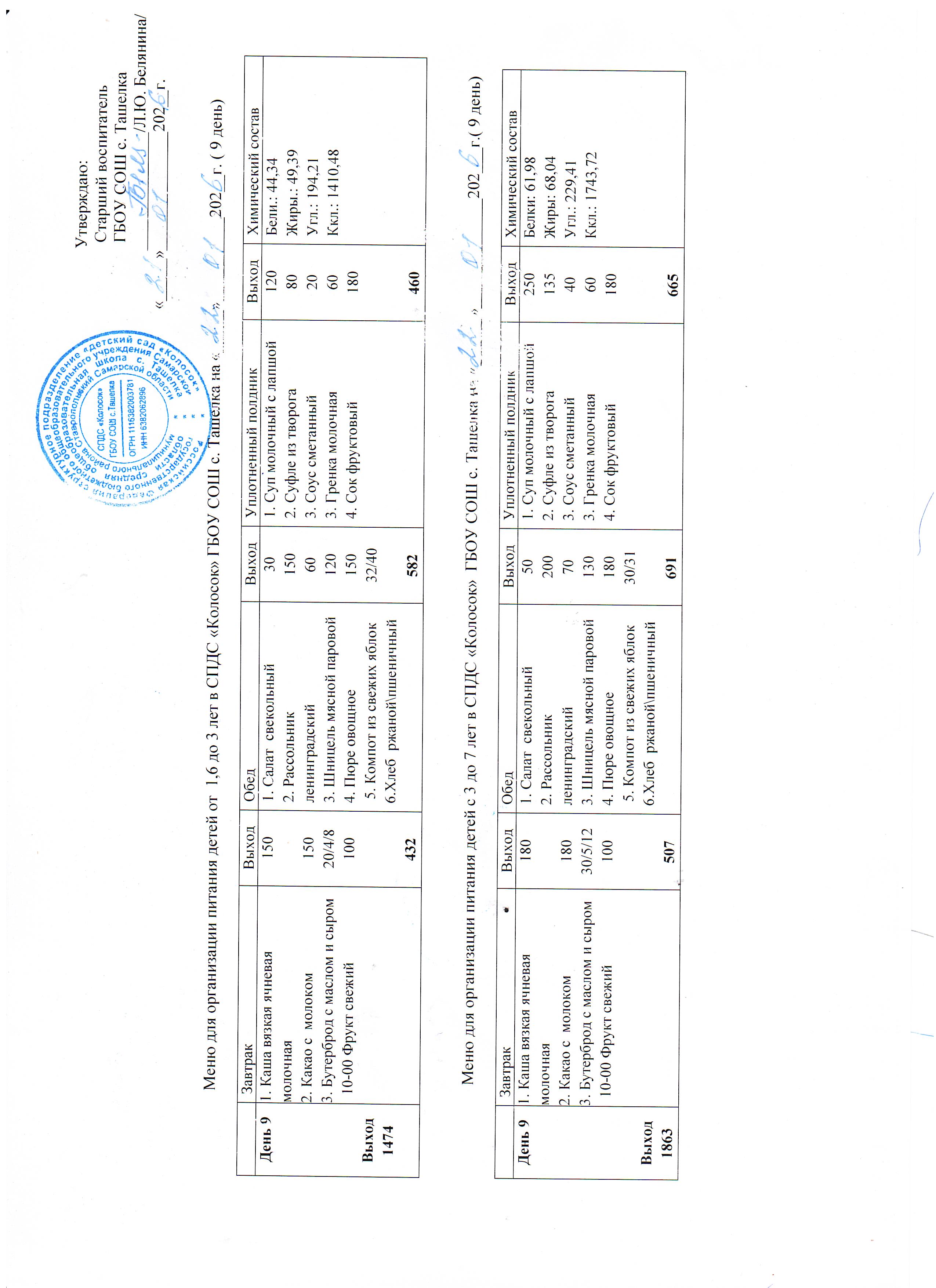 Информация об обслуживающем предприятии (информация о поставщике продовольственной продукции) с контактными данными