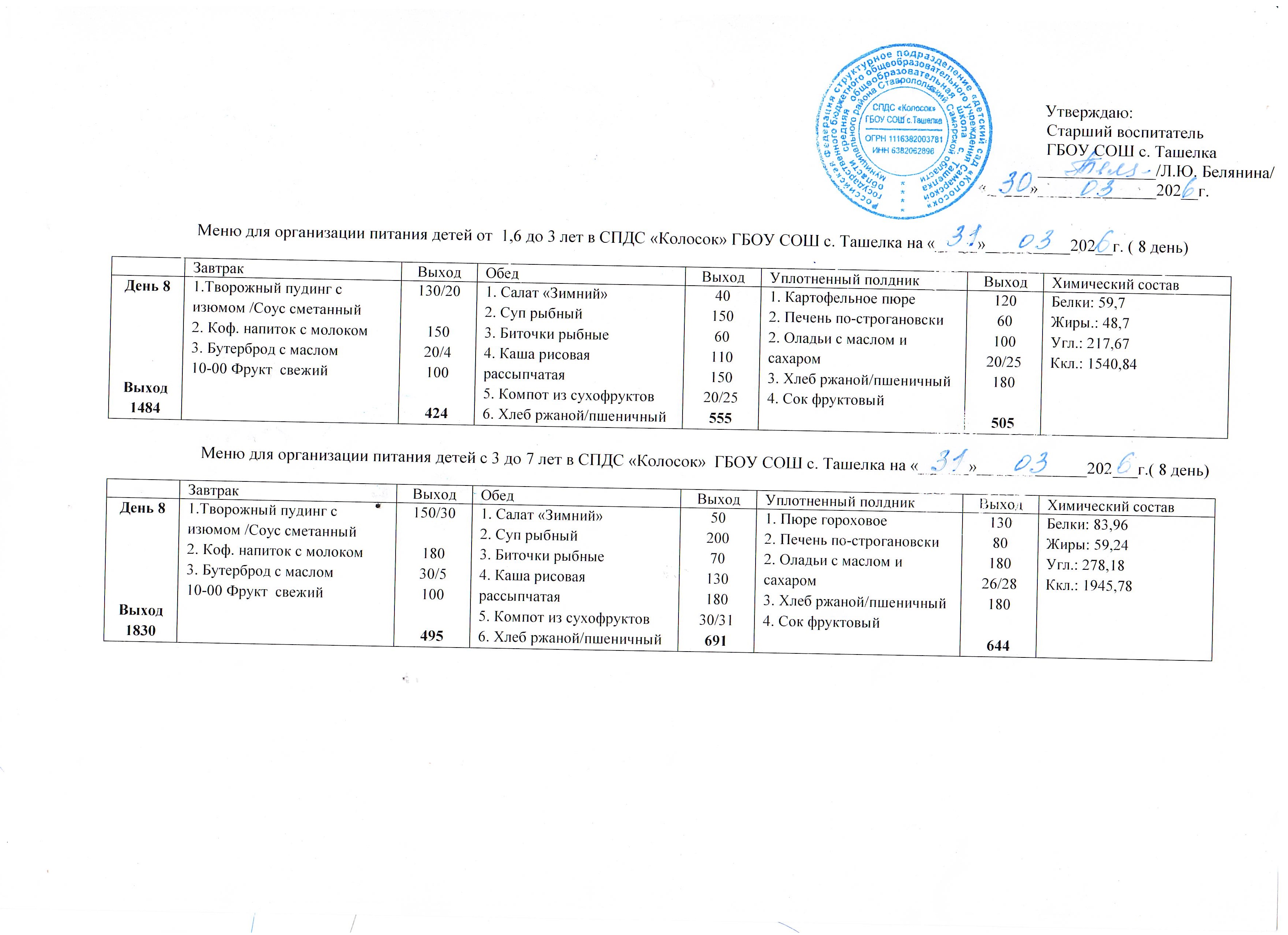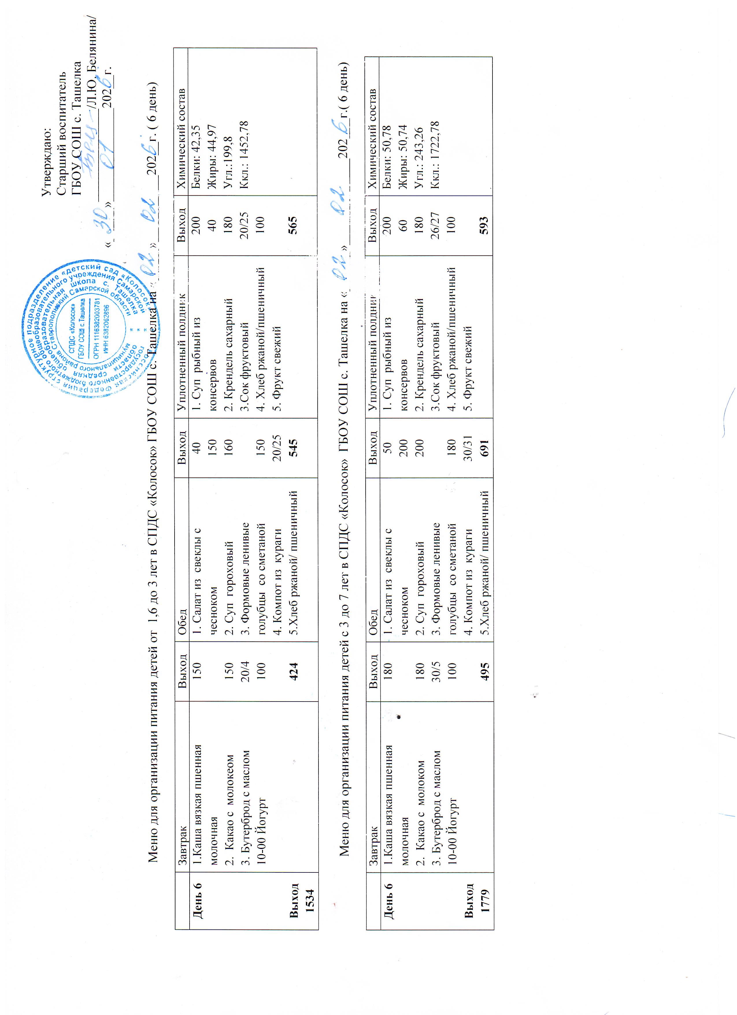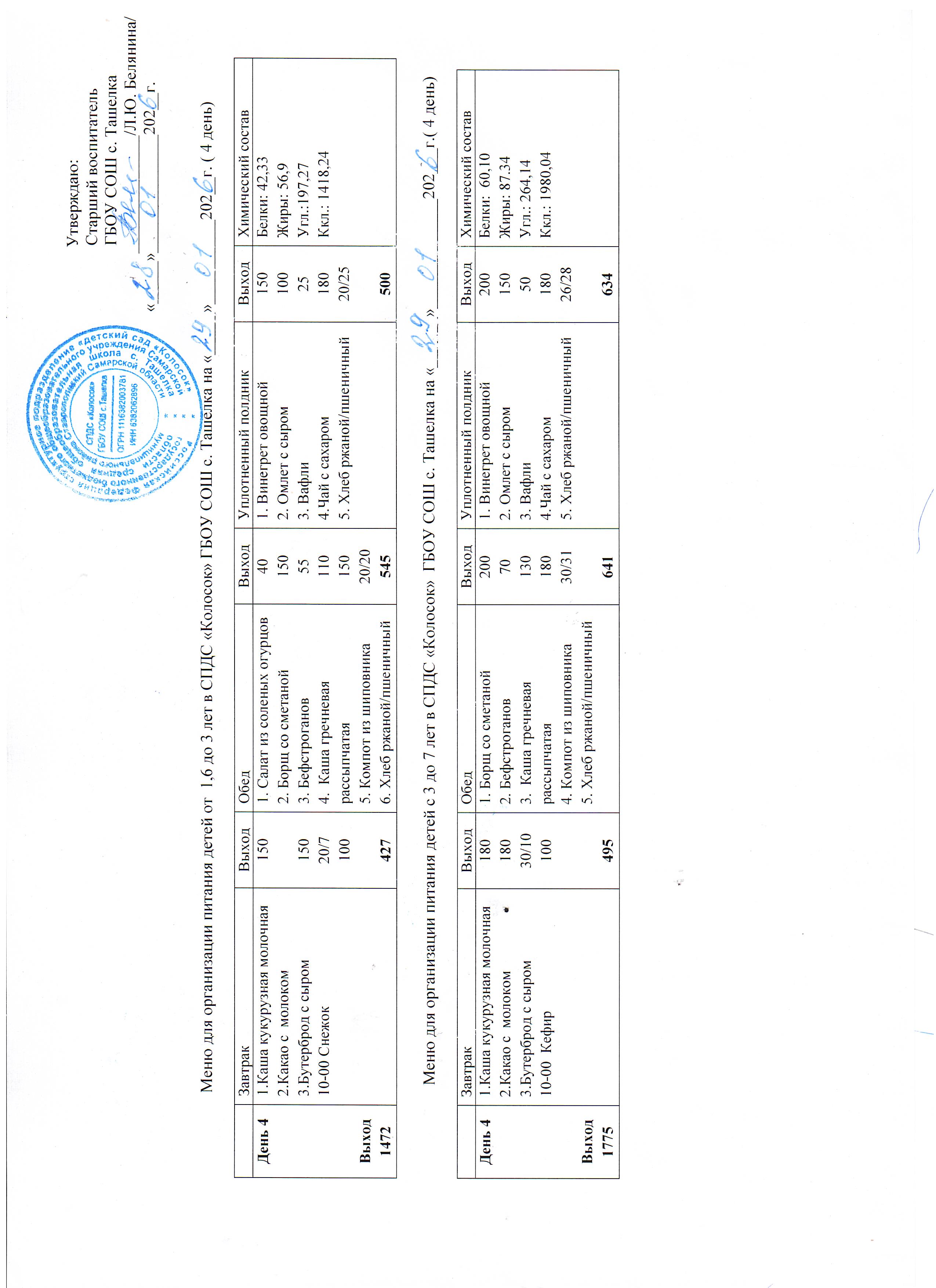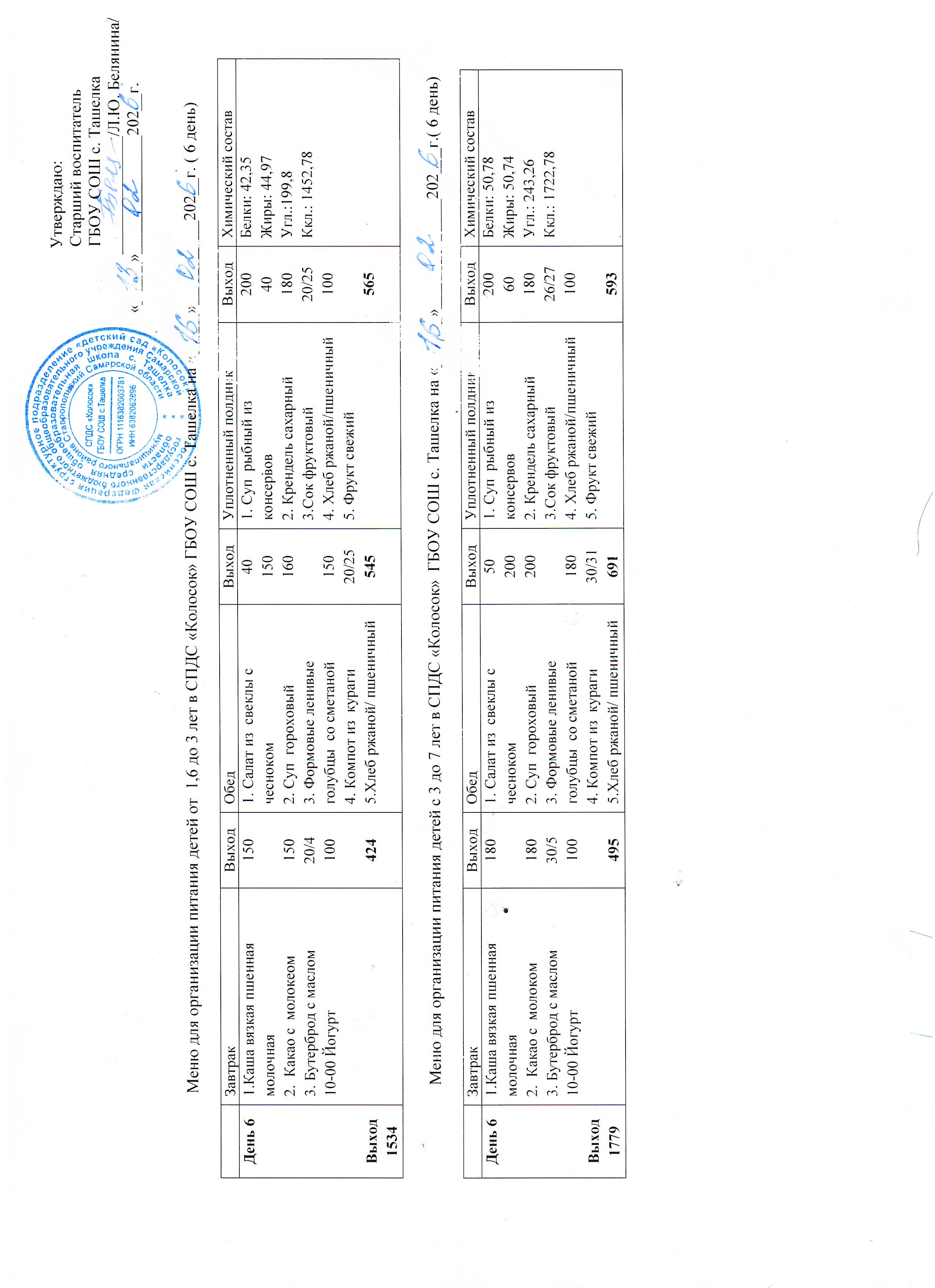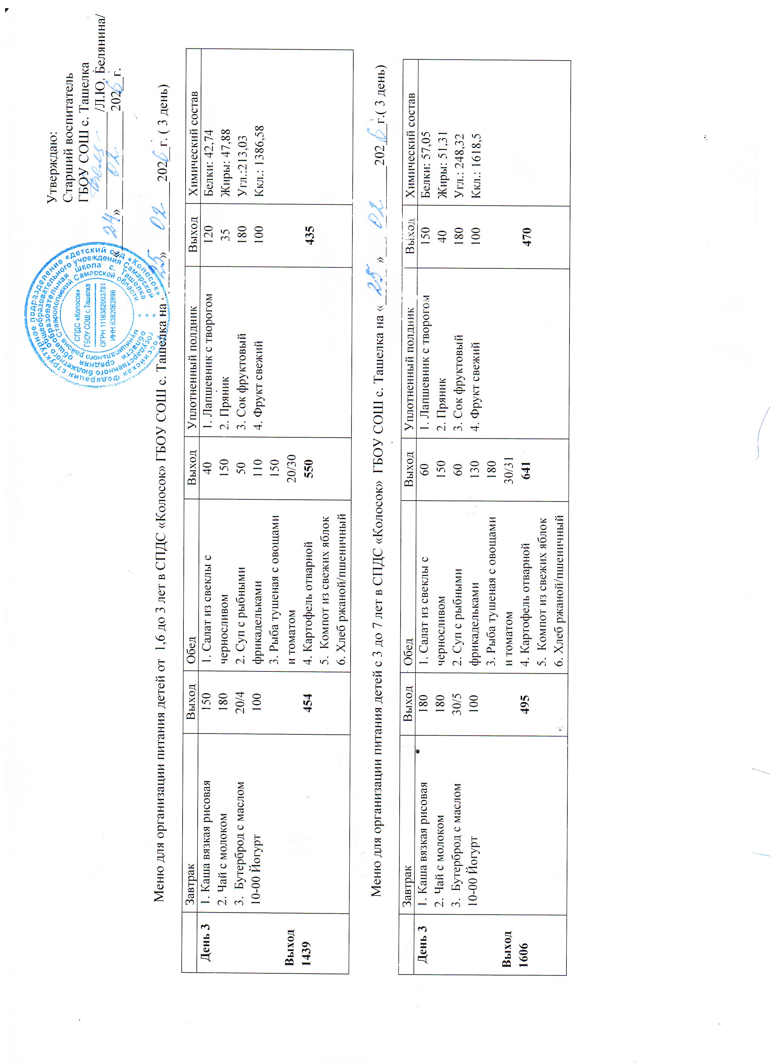 Информация об обслуживающем предприятии (информация о поставщике продовольственной продукции) с контактными данными