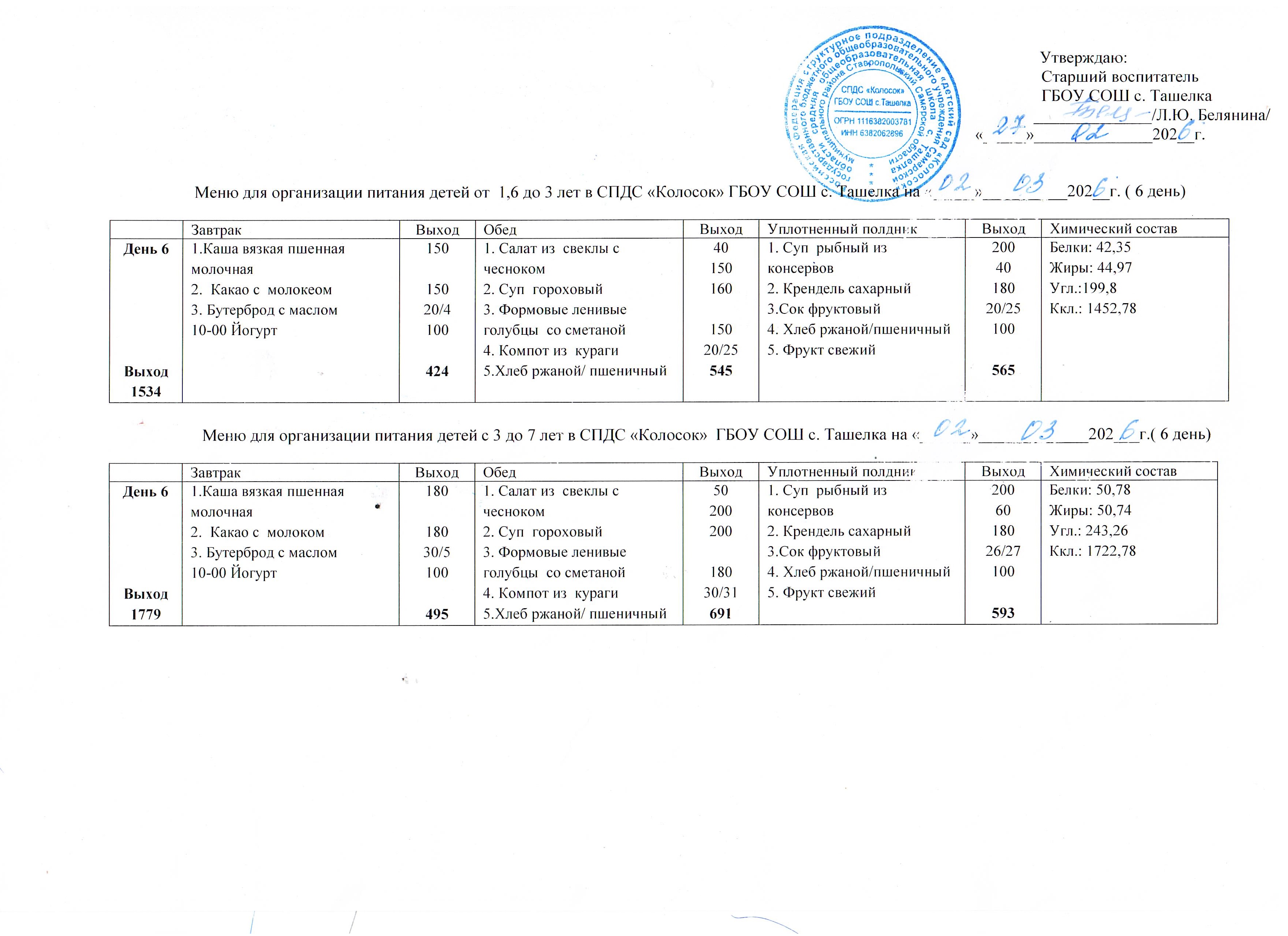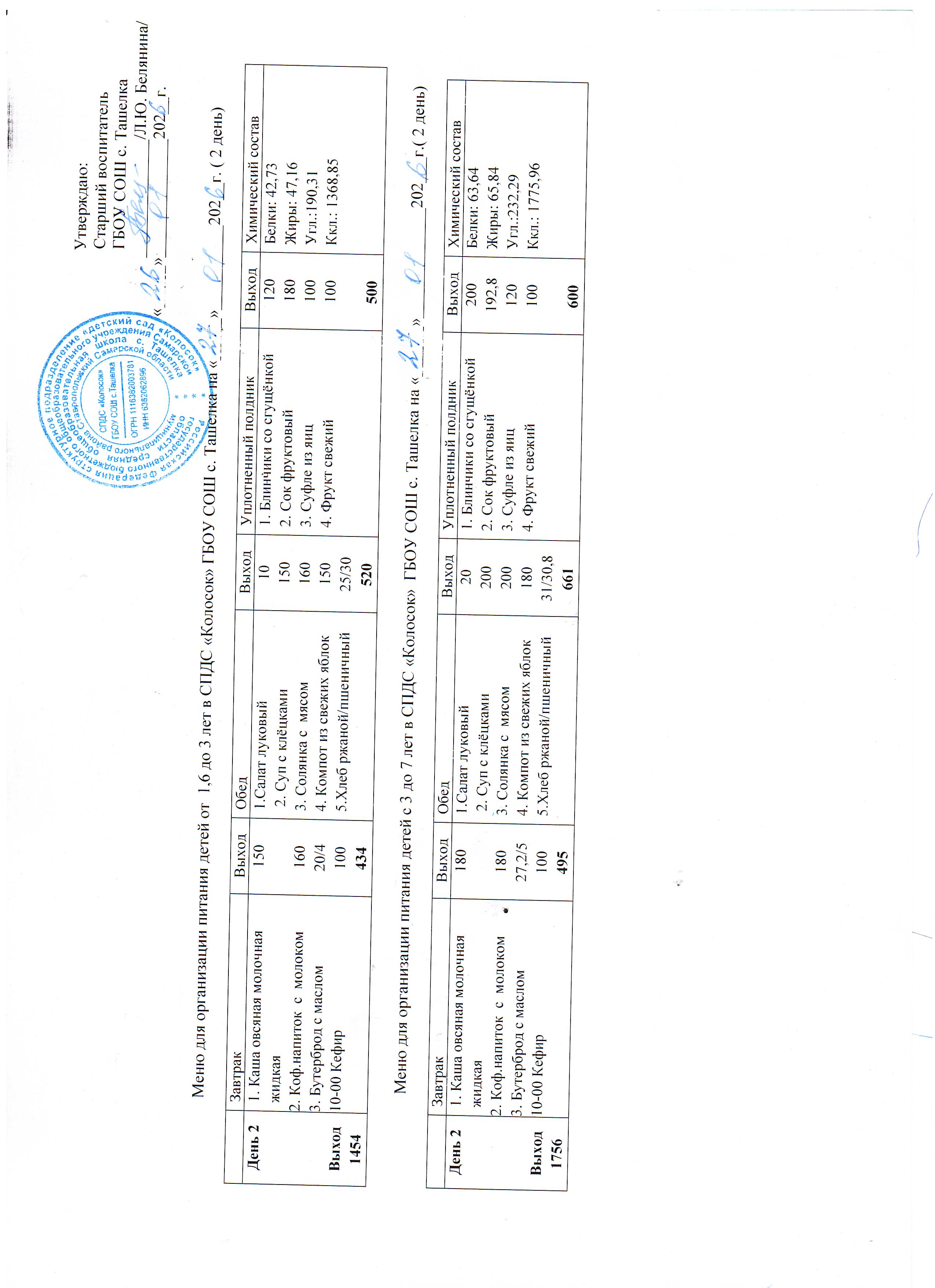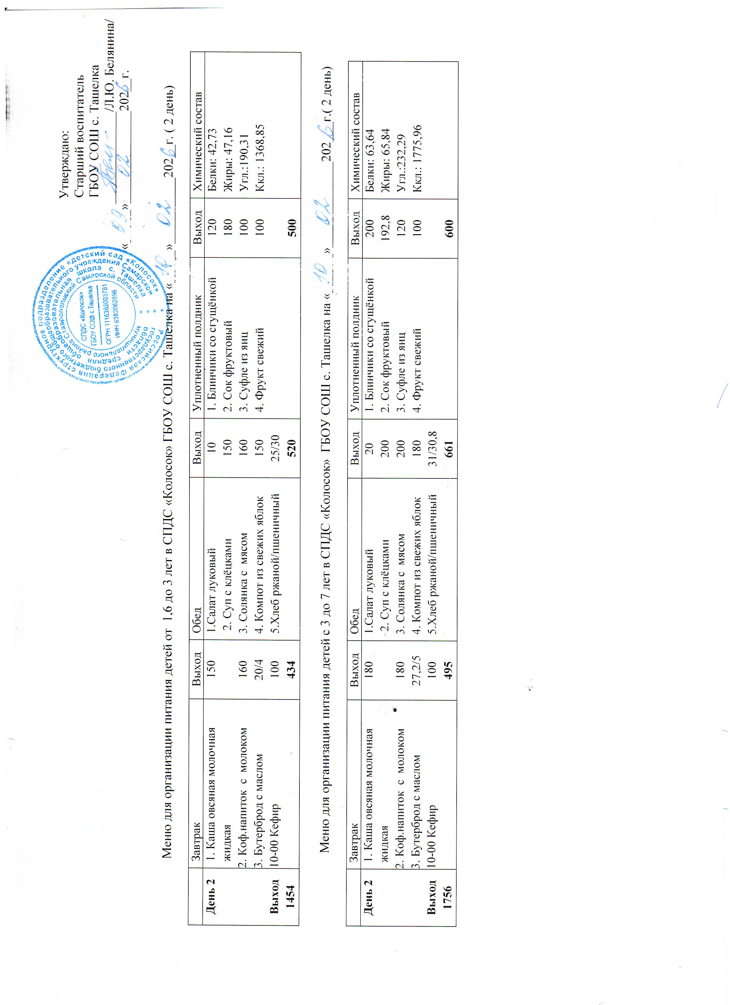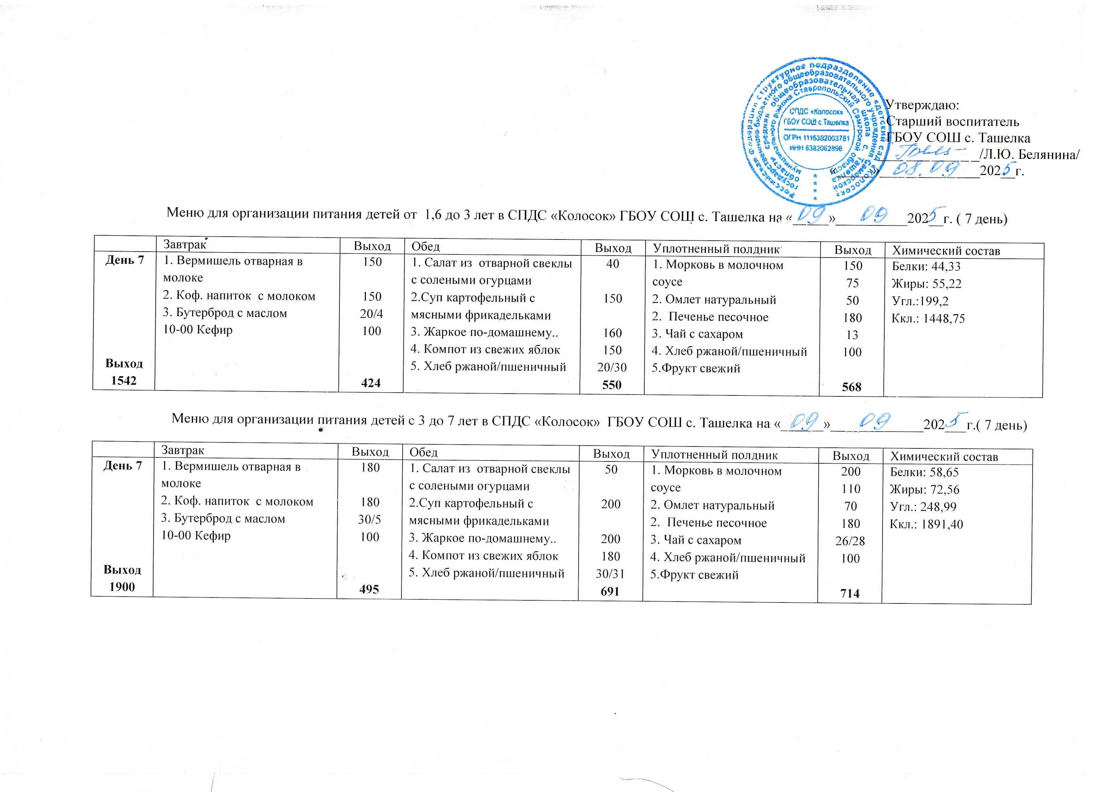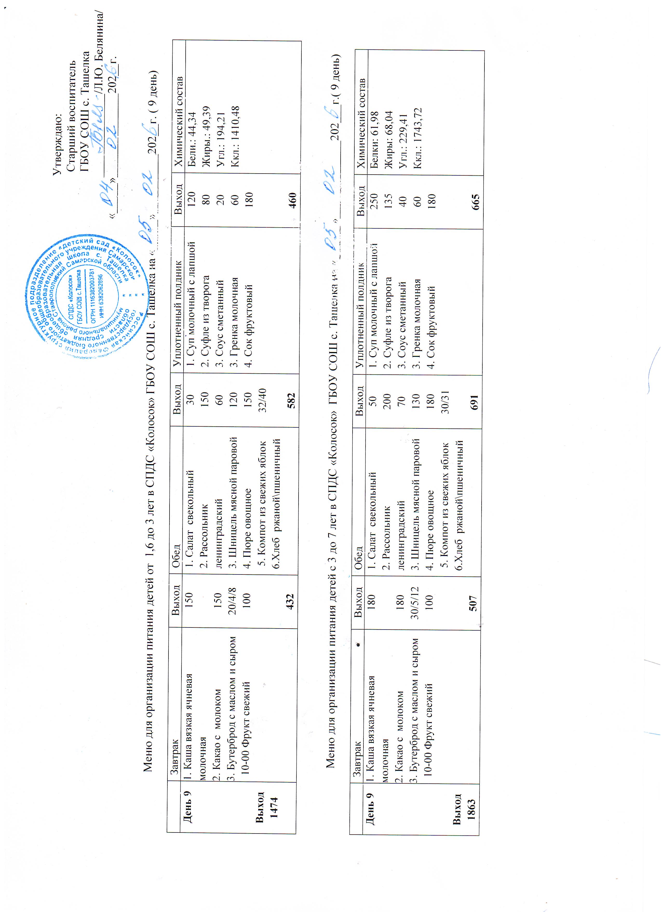 Информация об обслуживающем предприятии (информация о поставщике продовольственной продукции) с контактными данными