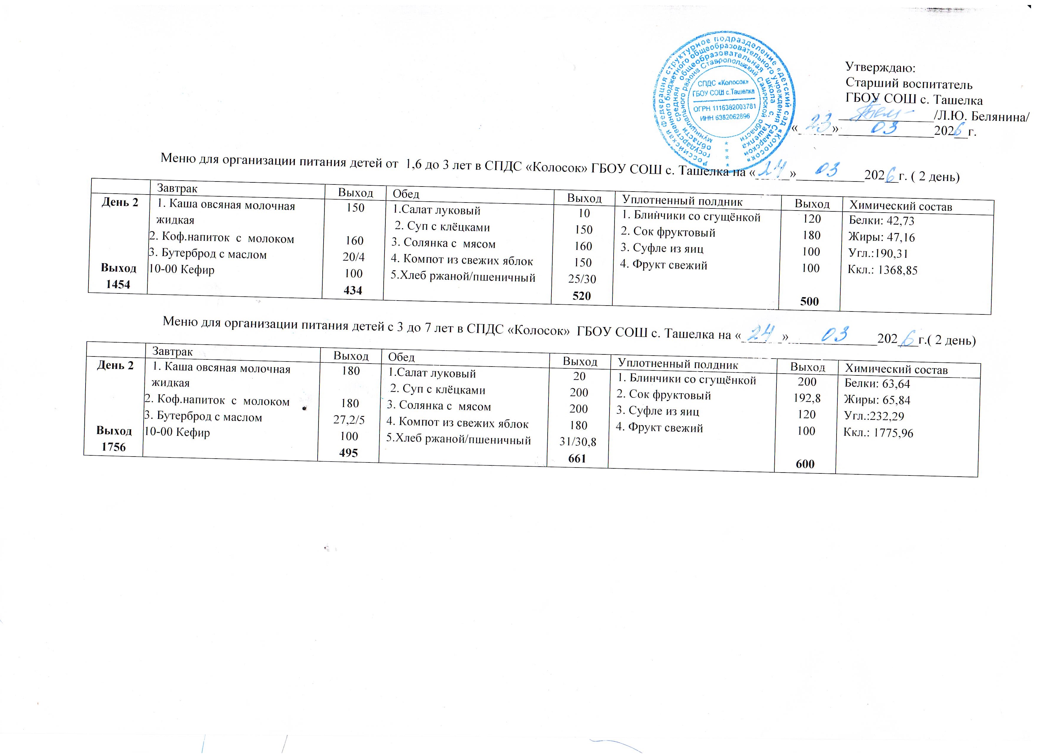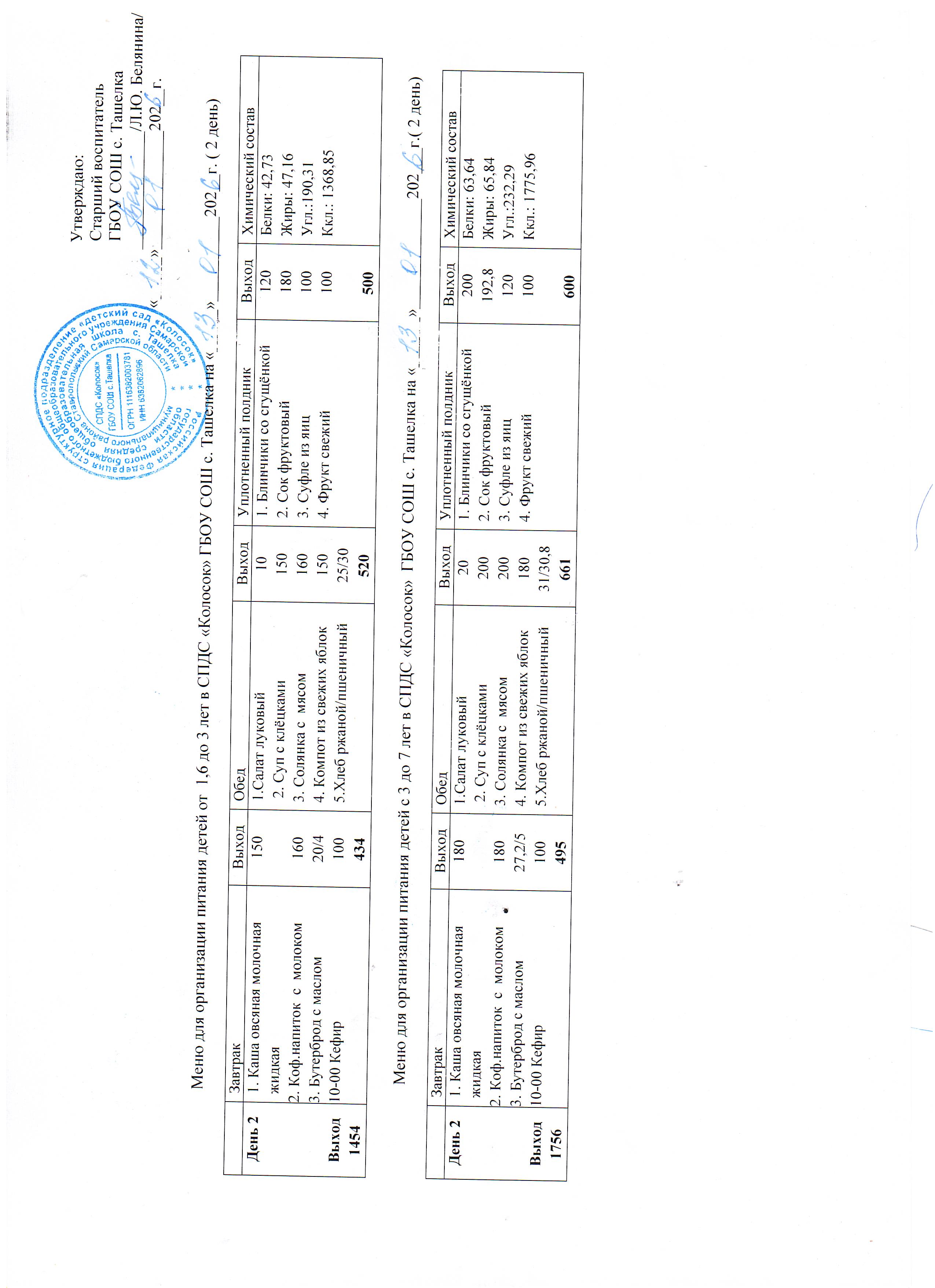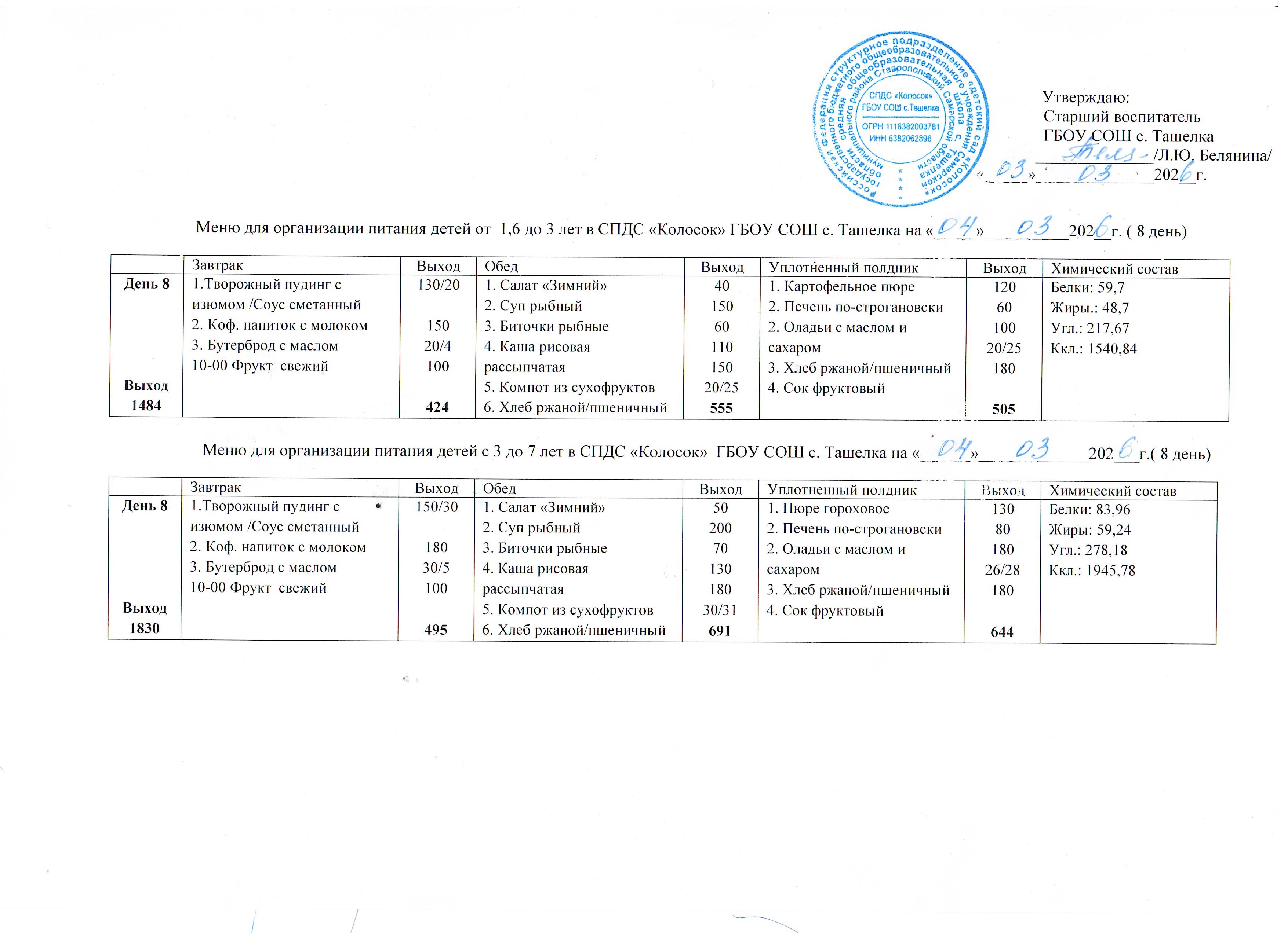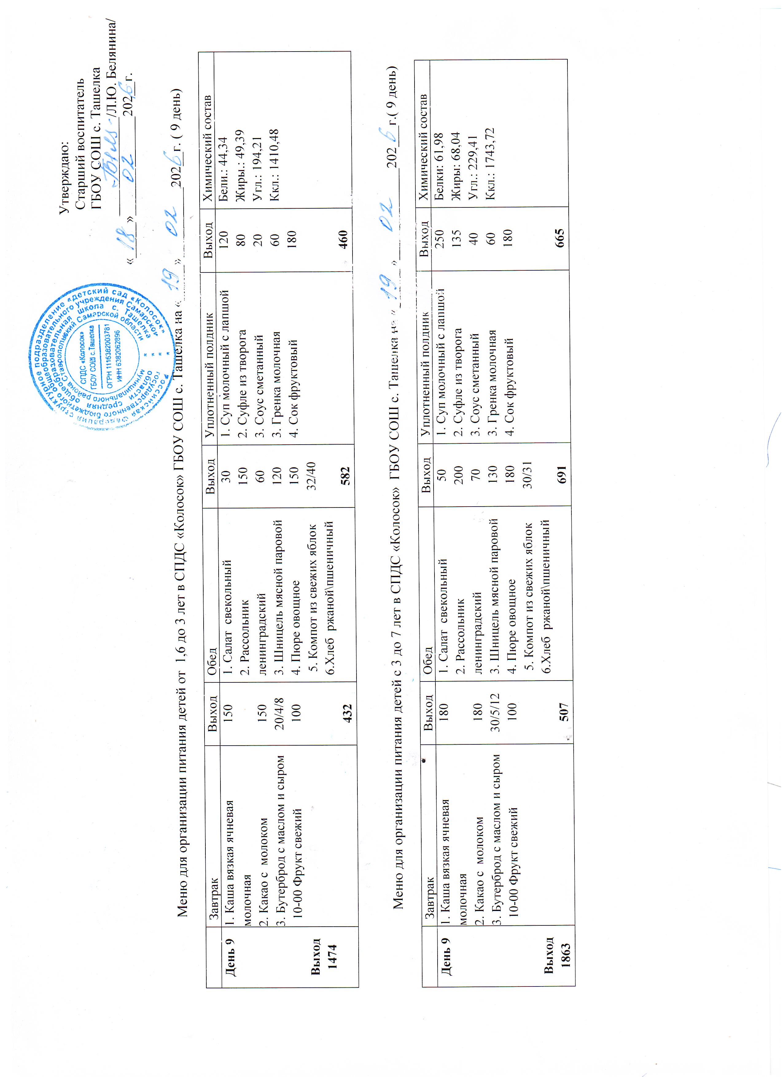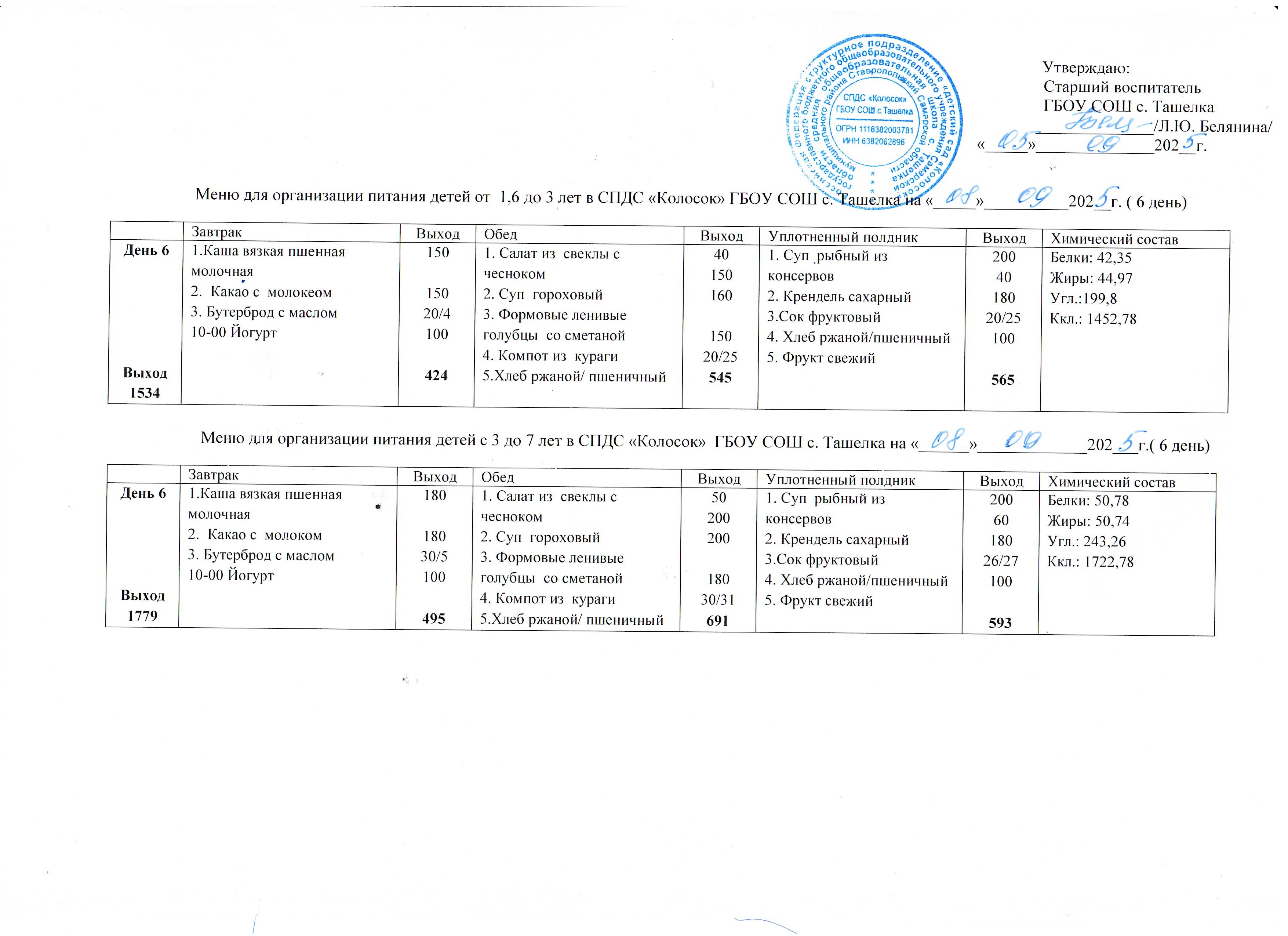 Информация об обслуживающем предприятии (информация о поставщике продовольственной продукции) с контактными данными