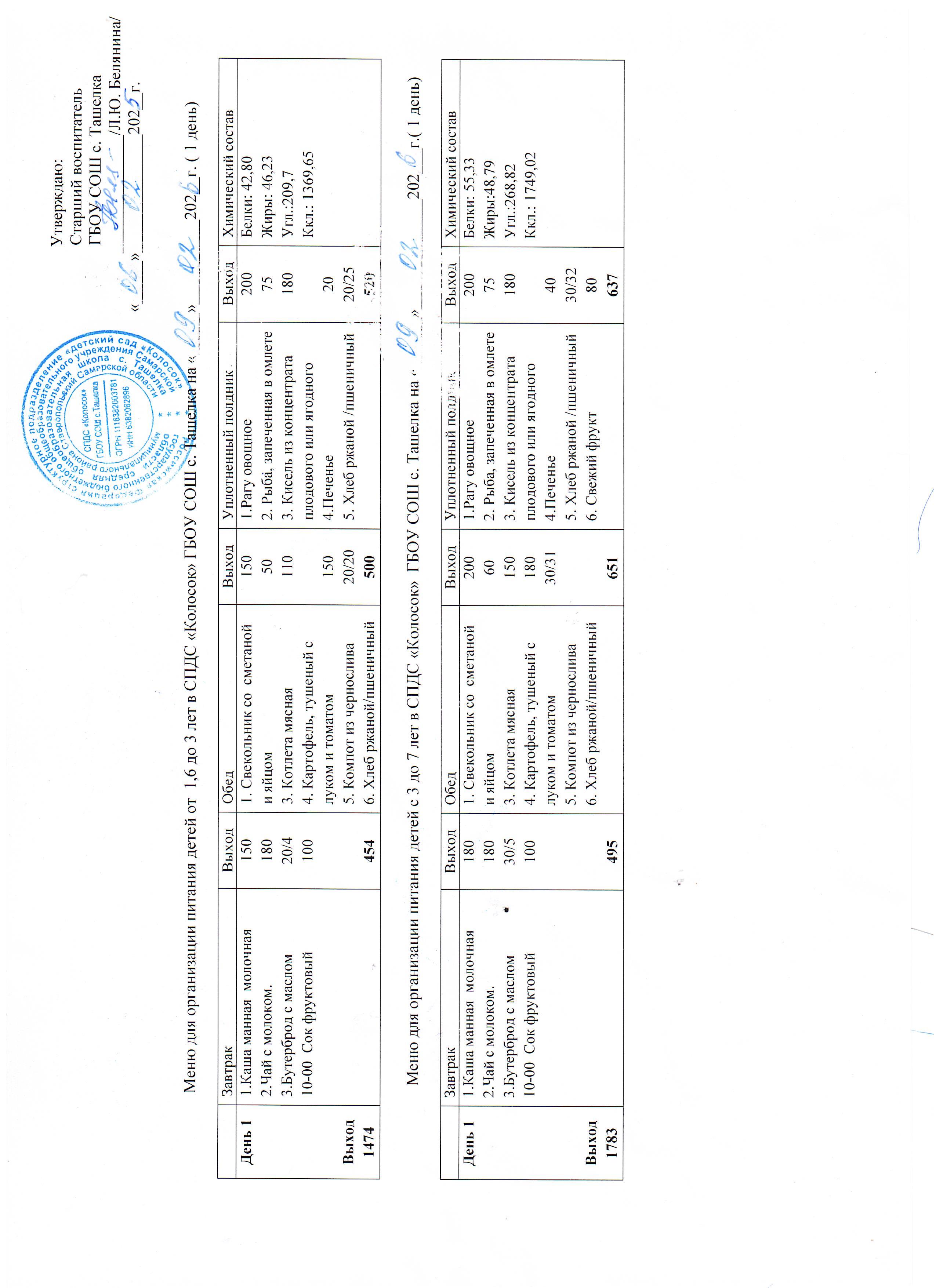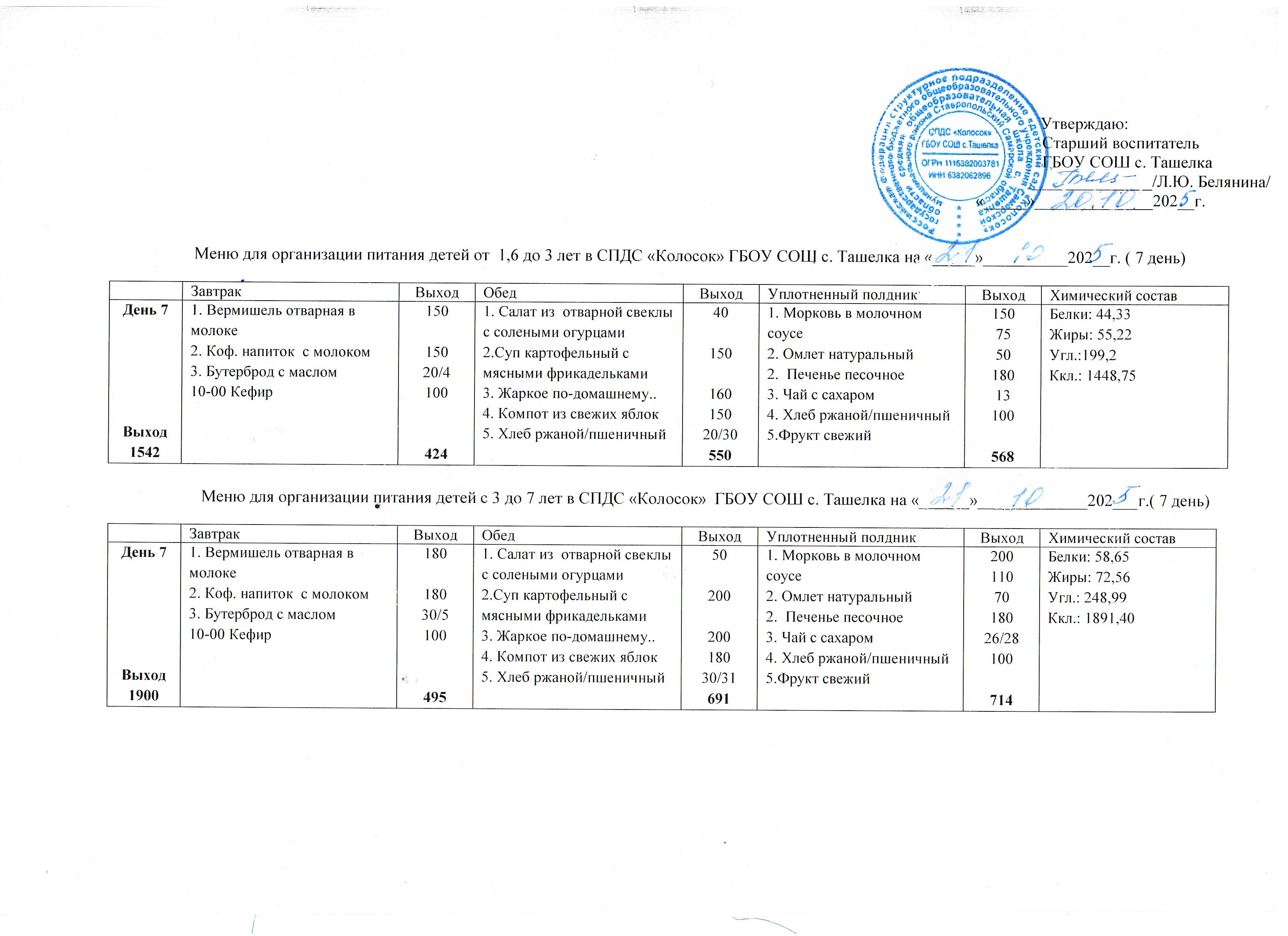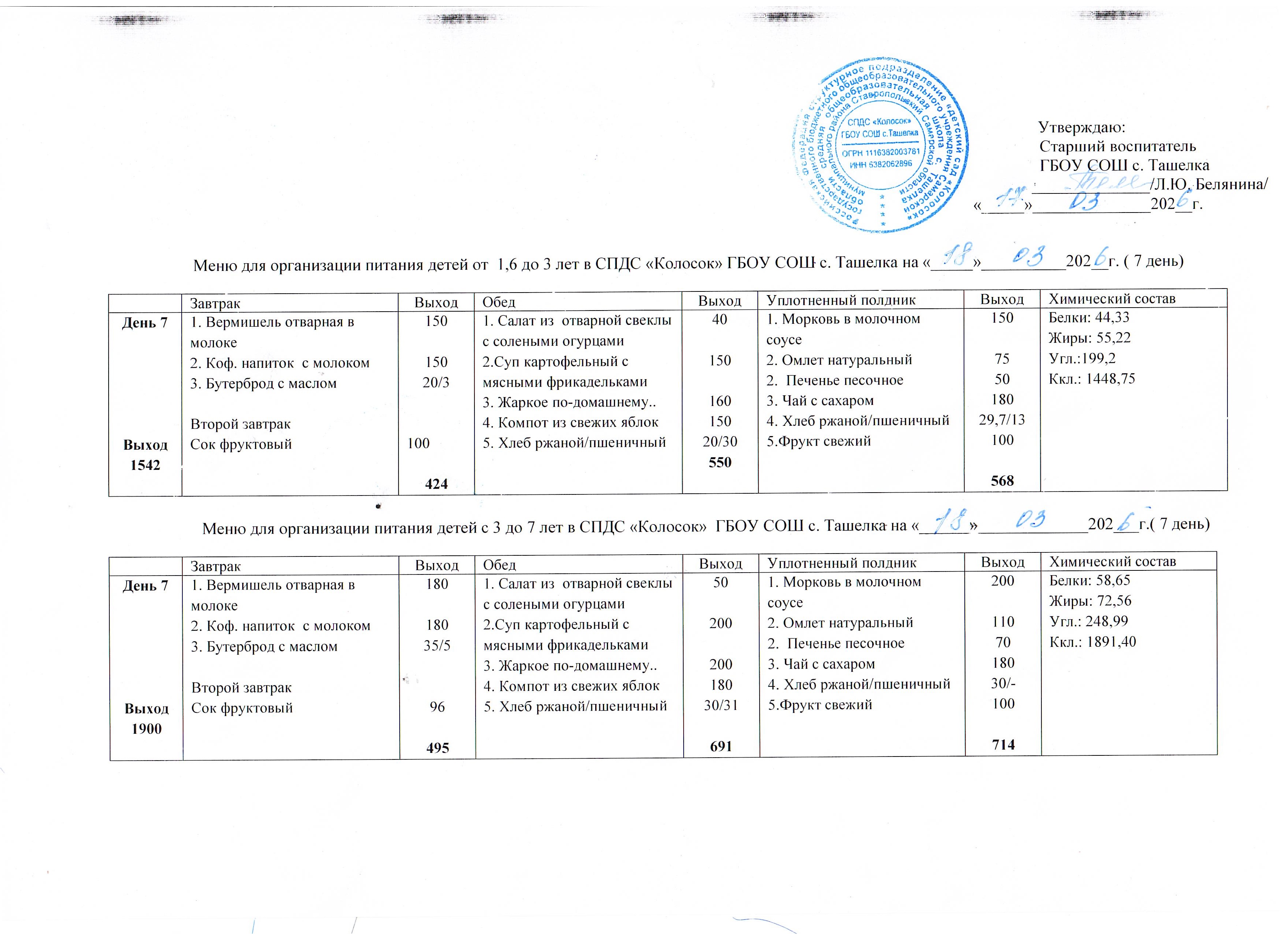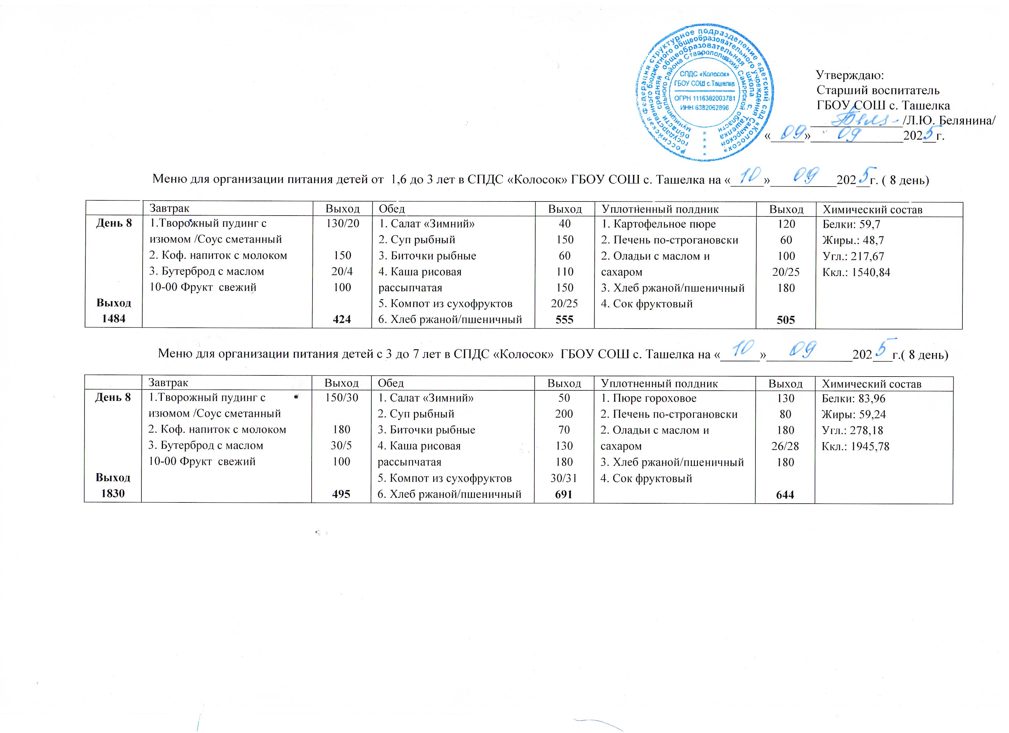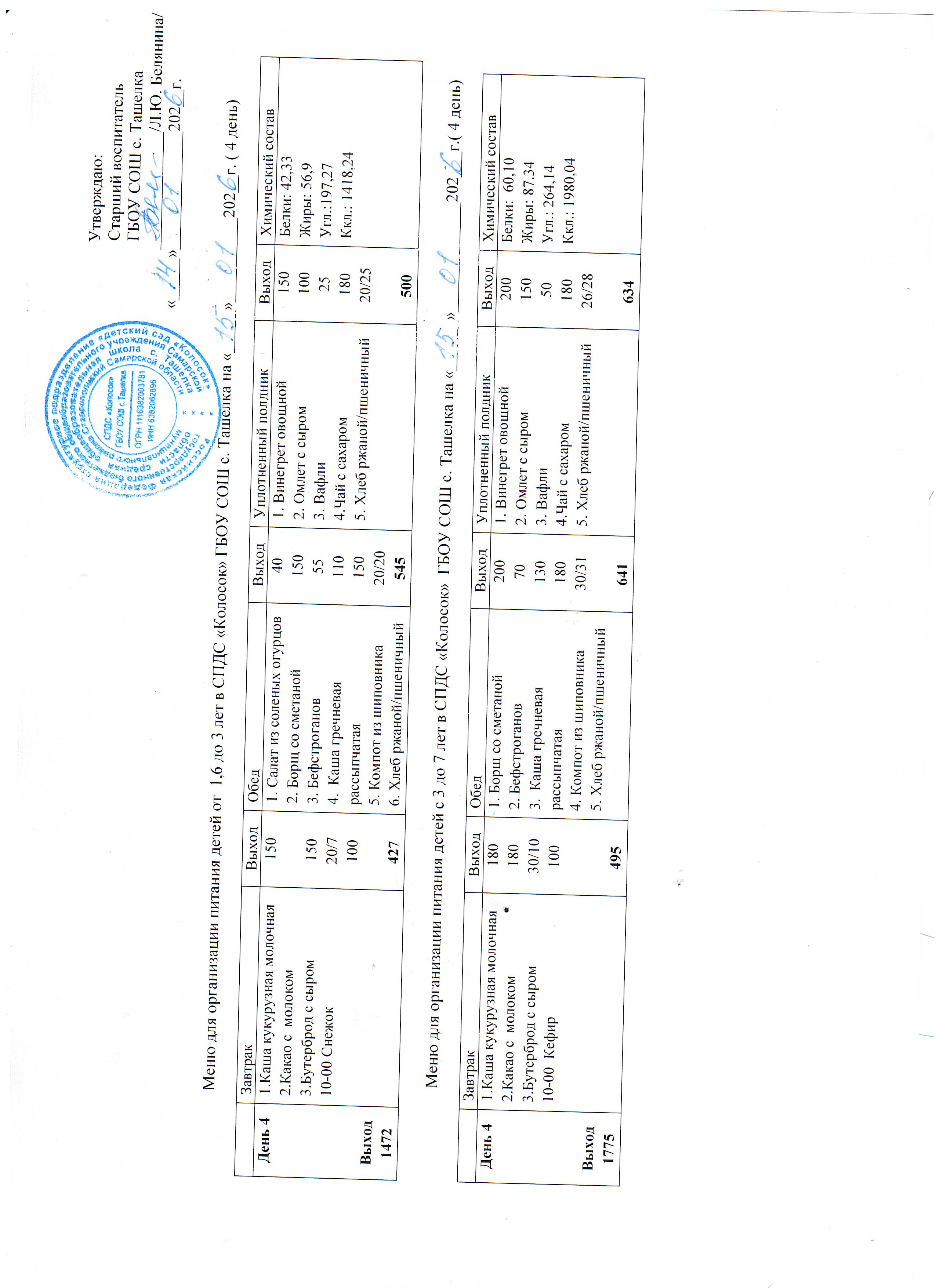 Информация об обслуживающем предприятии (информация о поставщике продовольственной продукции) с контактными данными