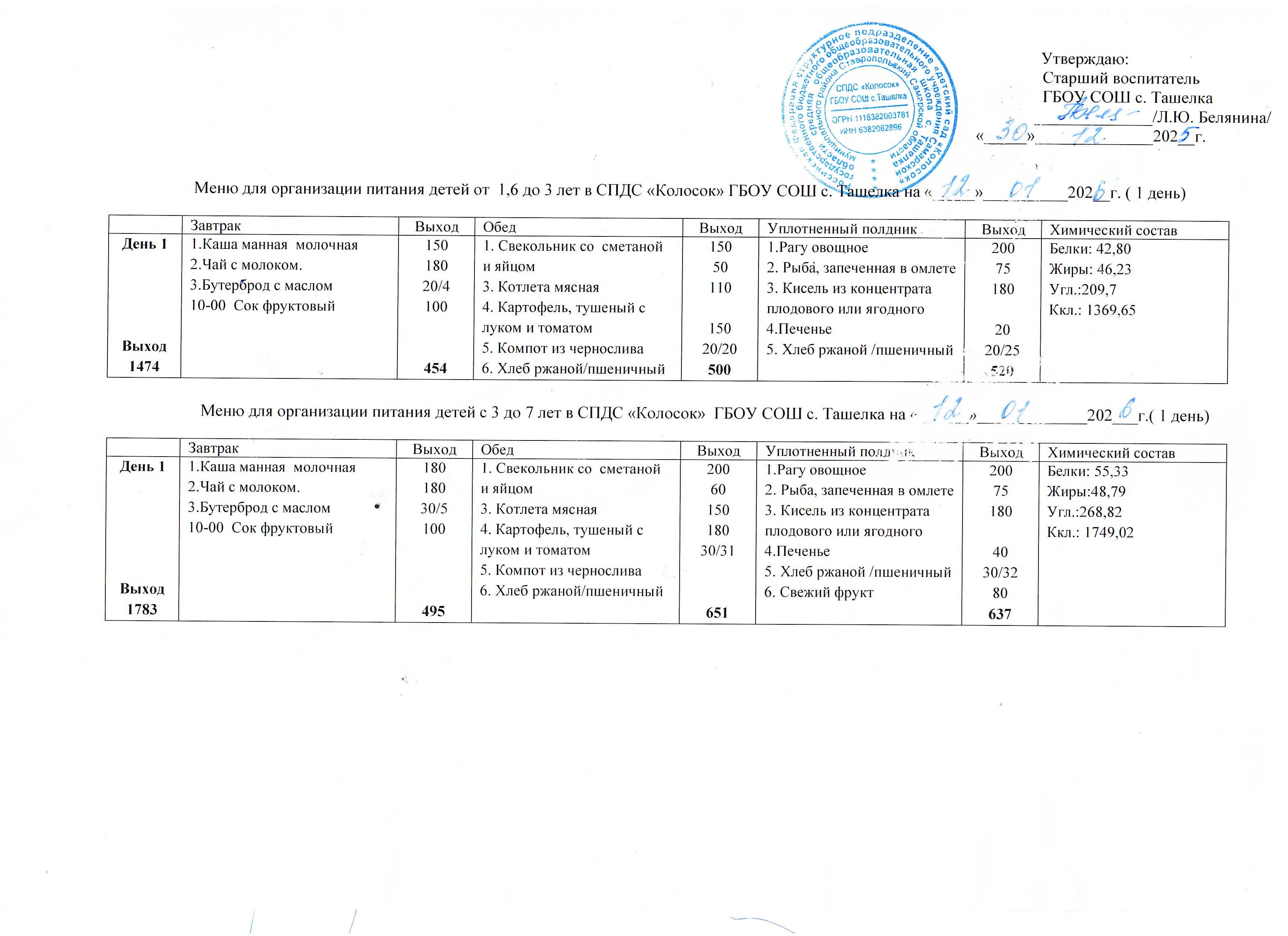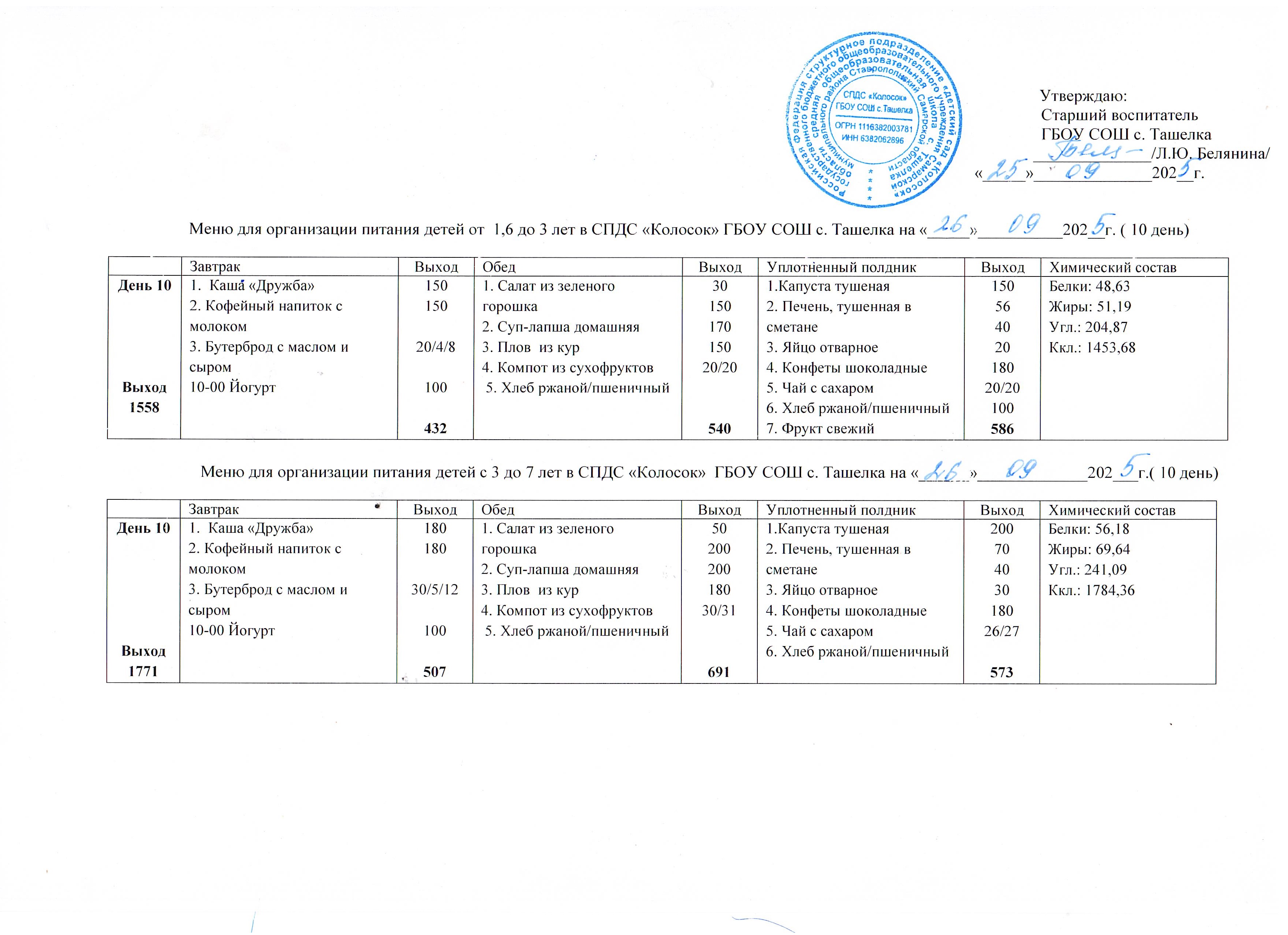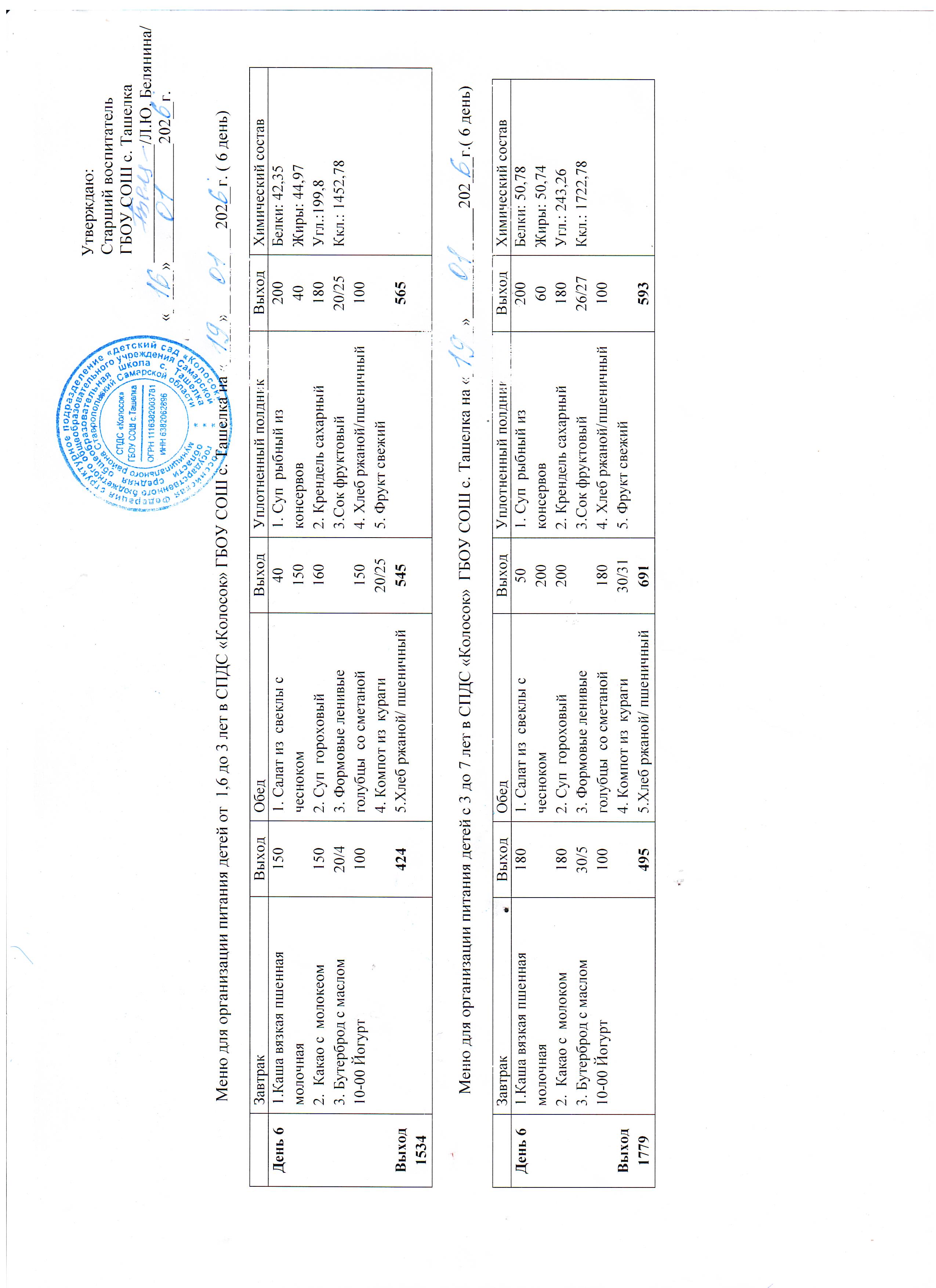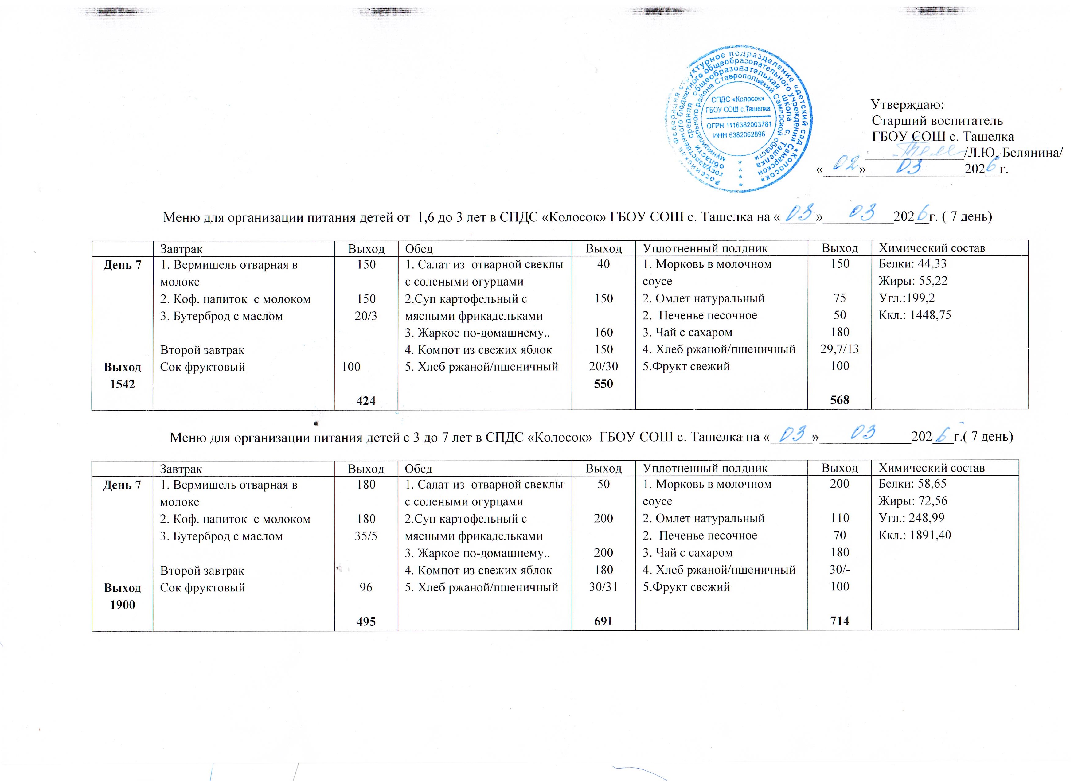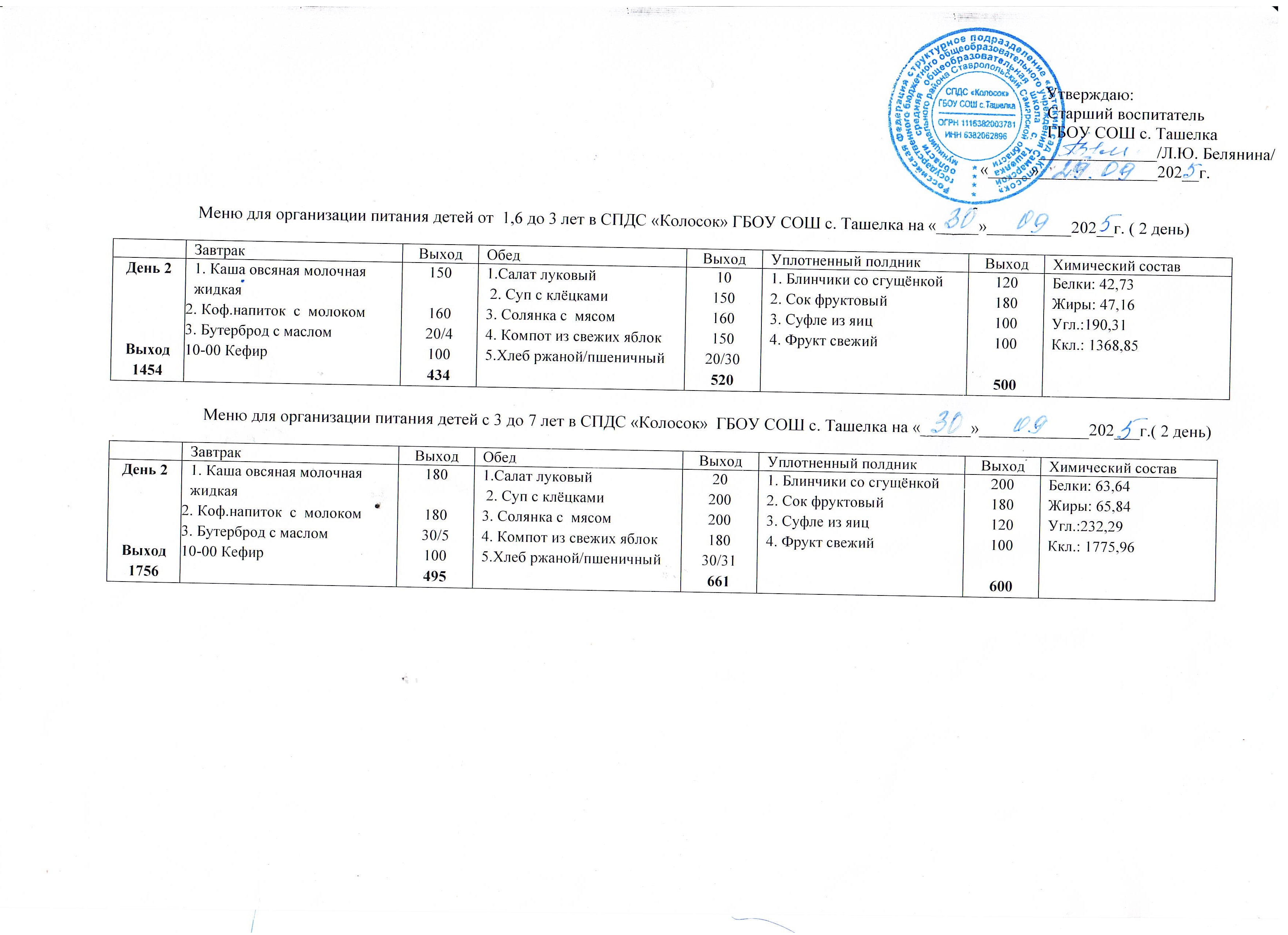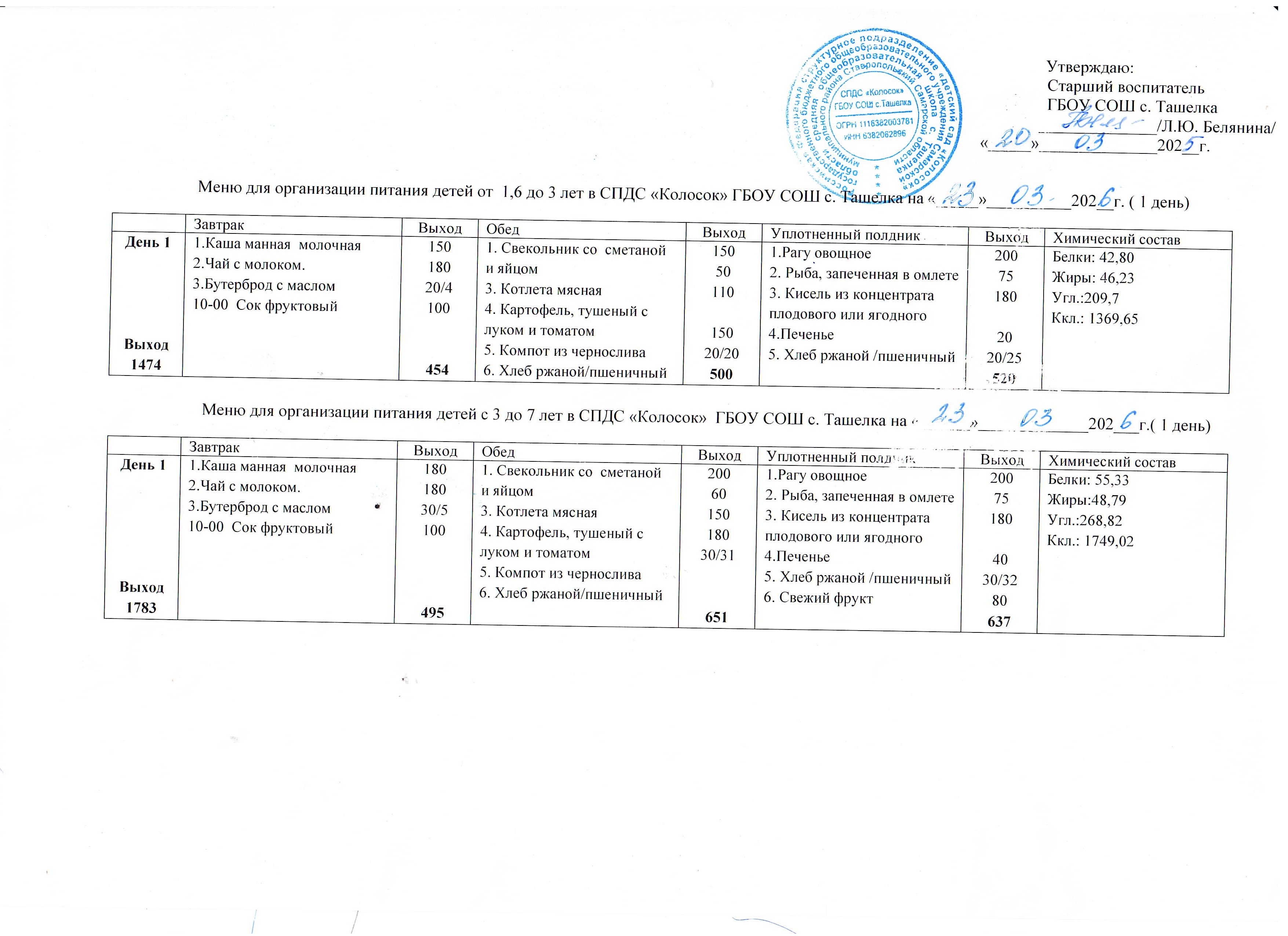 Информация об обслуживающем предприятии (информация о поставщике продовольственной продукции) с контактными данными