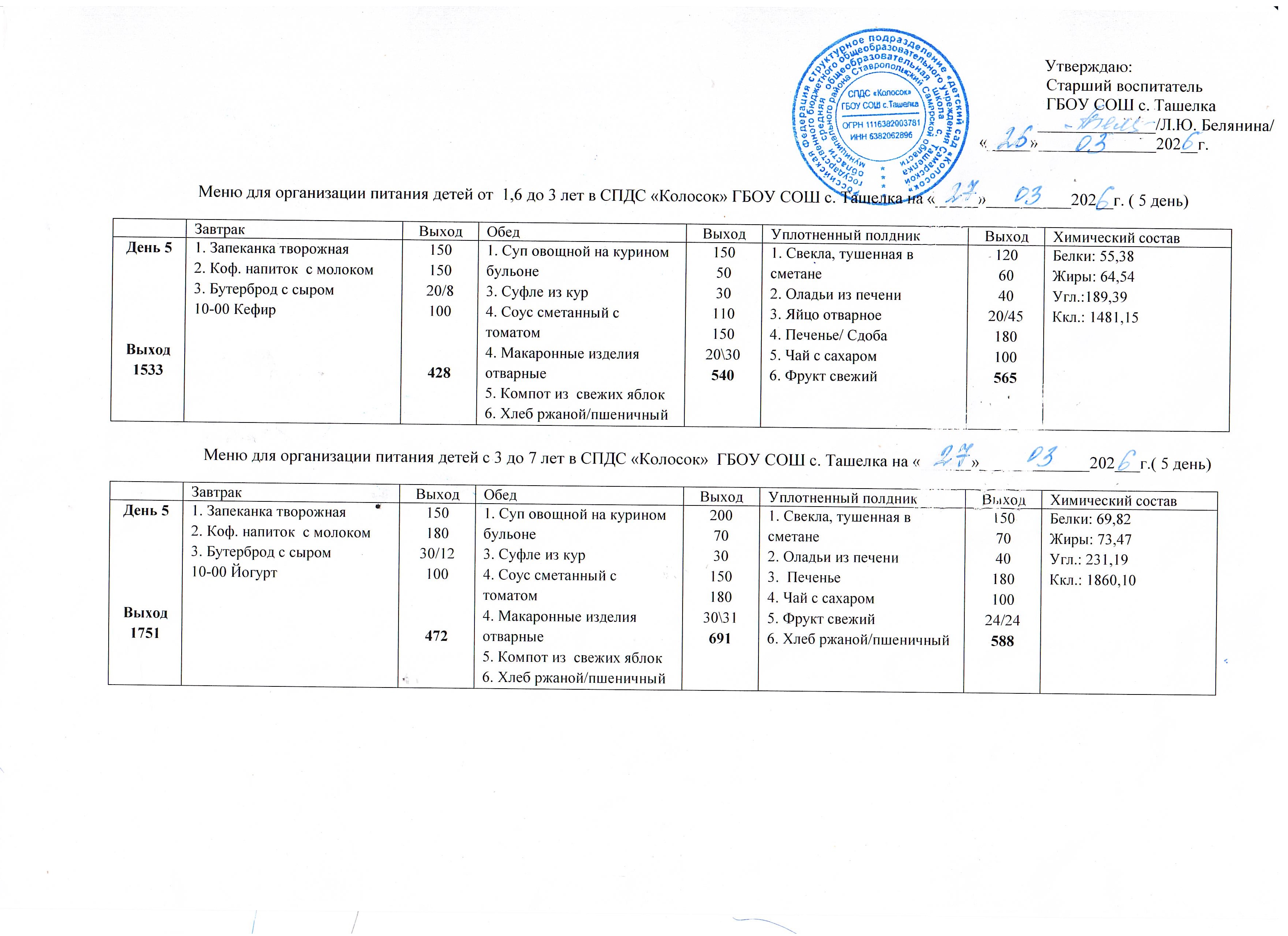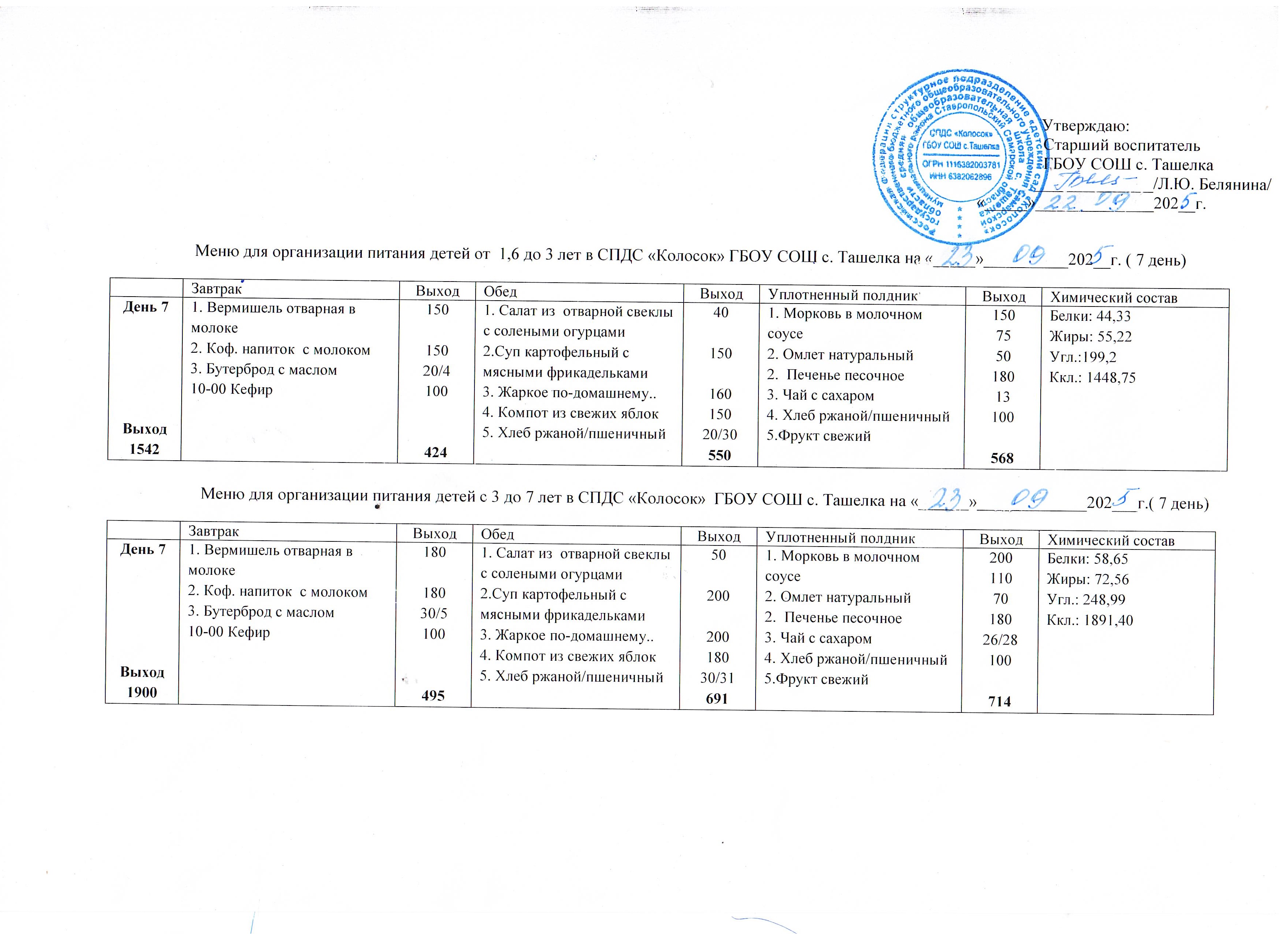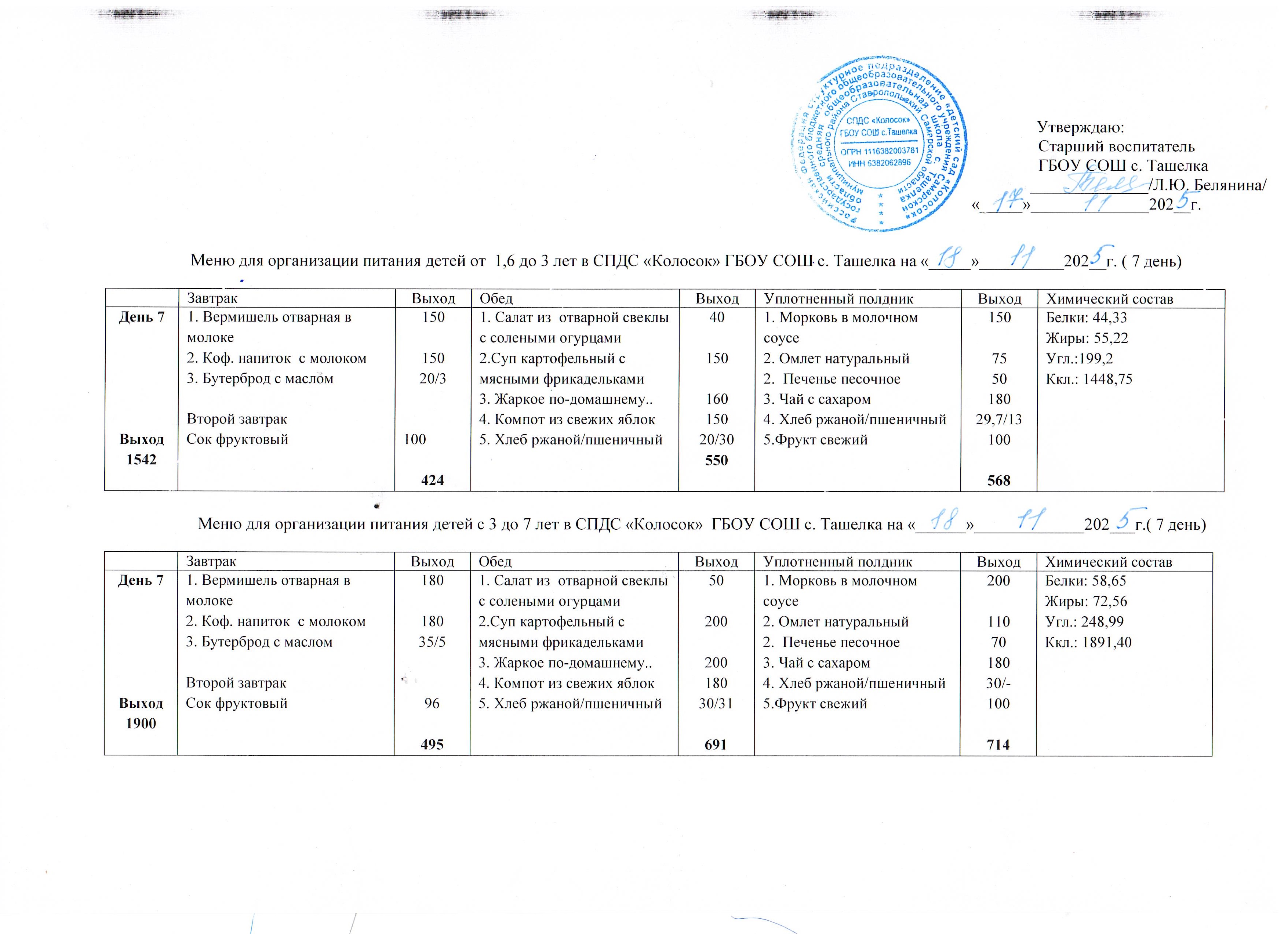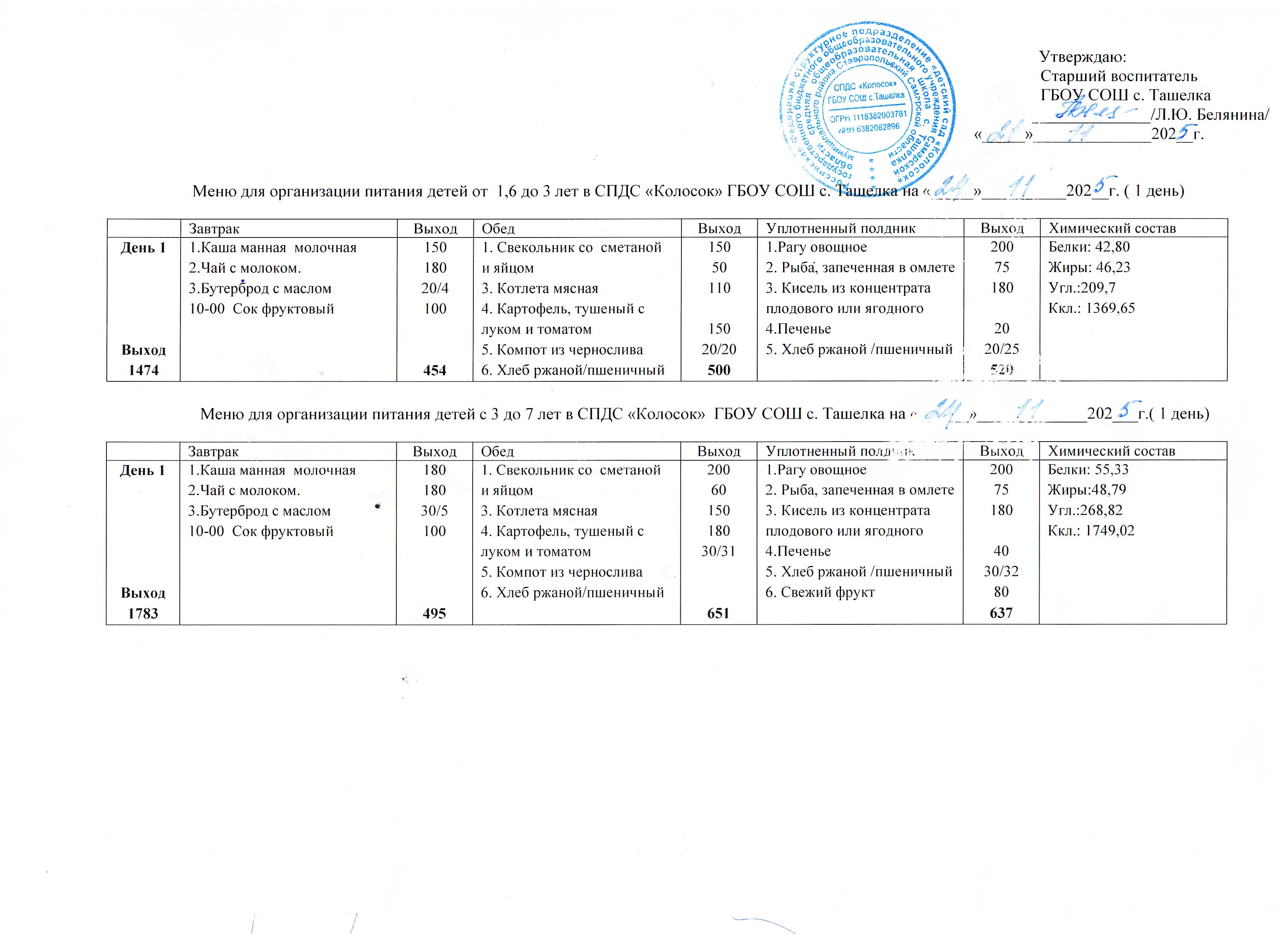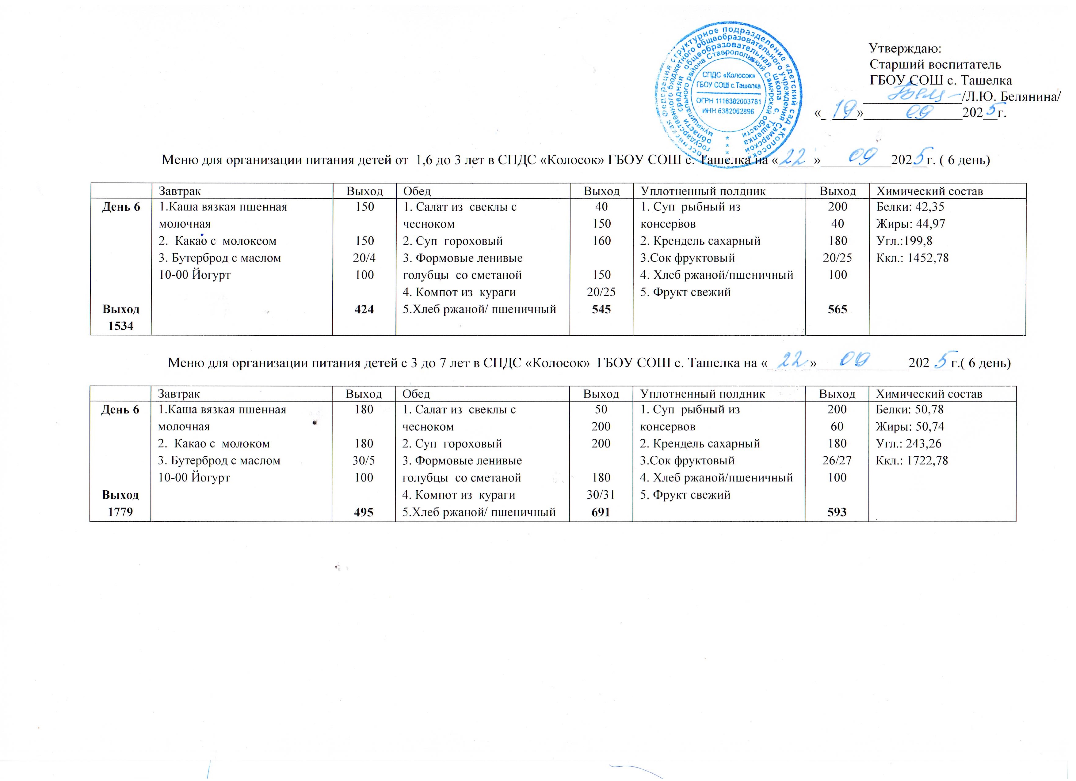 Информация об обслуживающем предприятии (информация о поставщике продовольственной продукции) с контактными данными