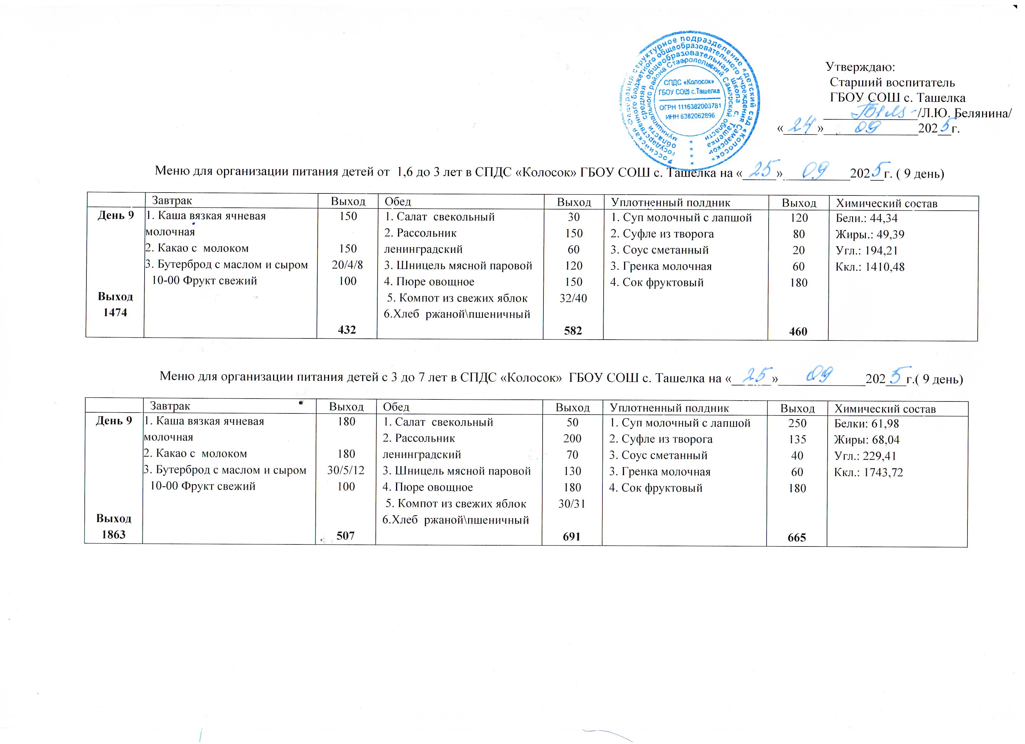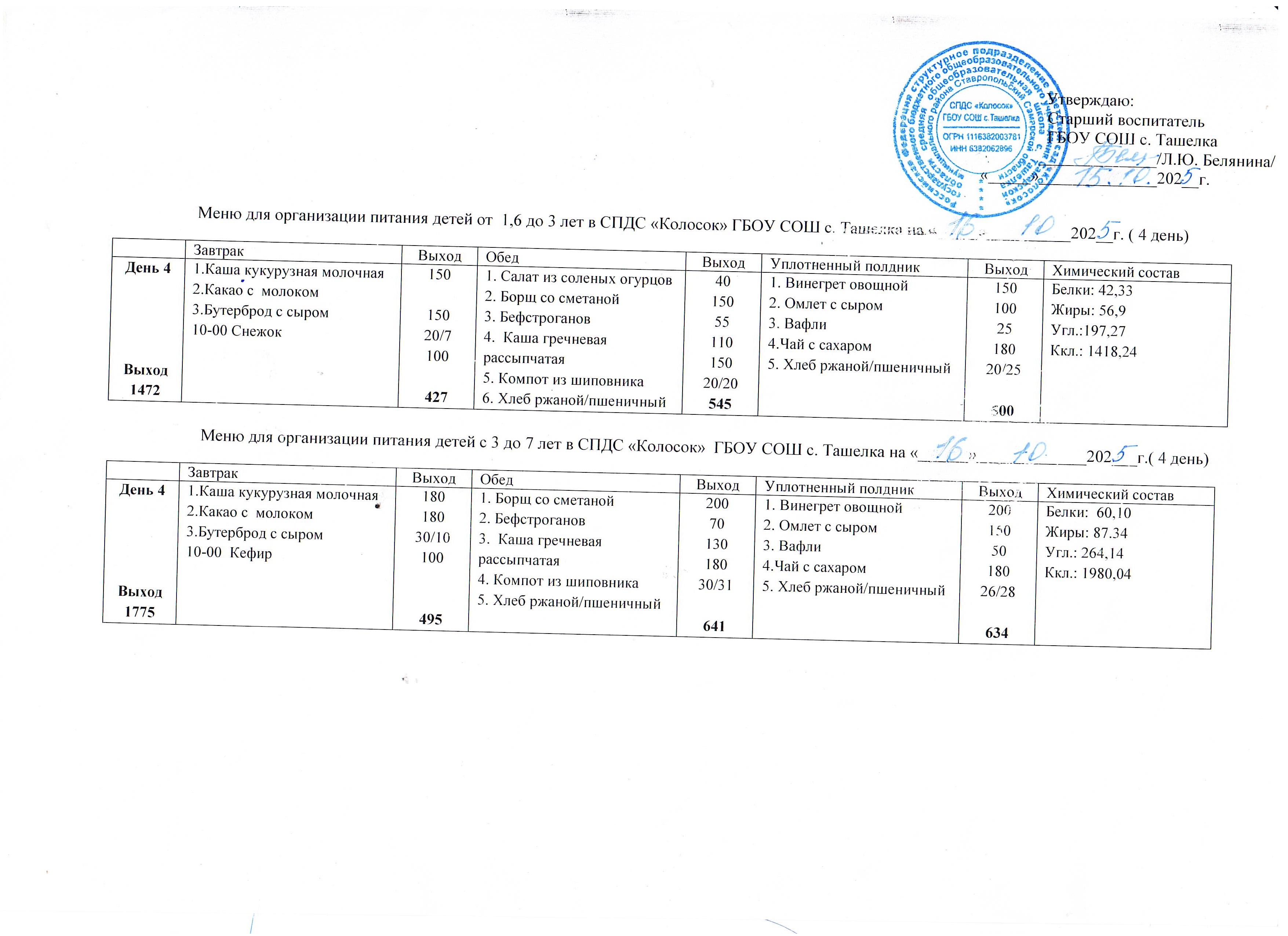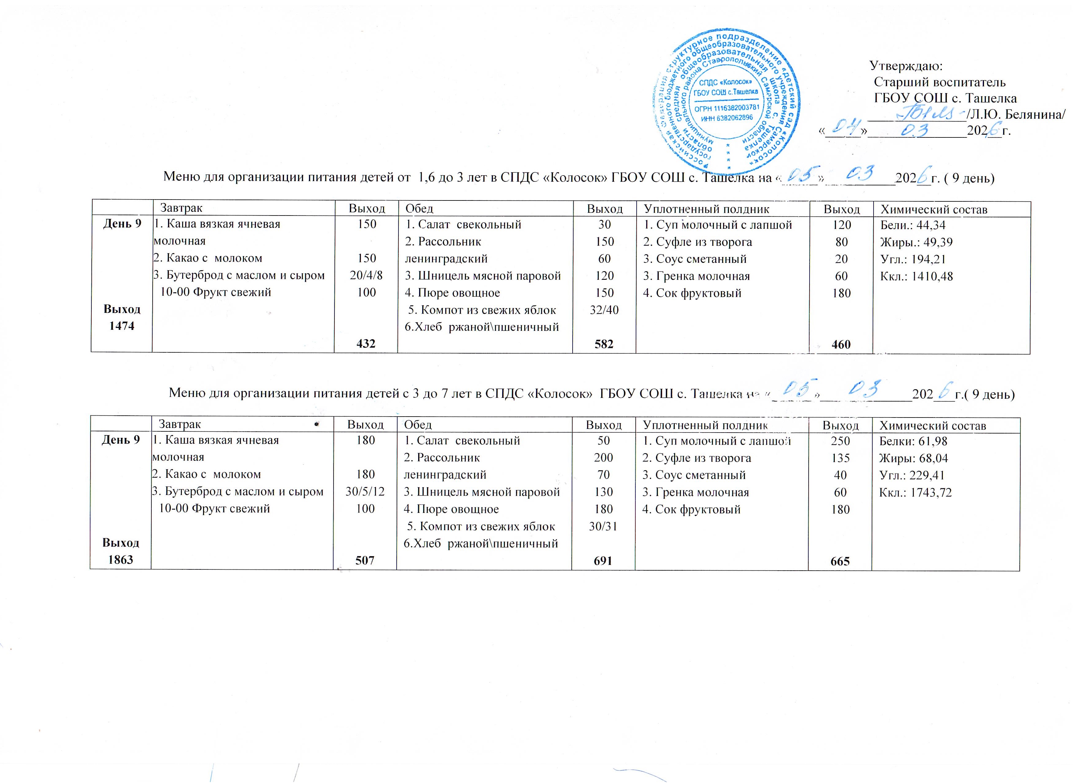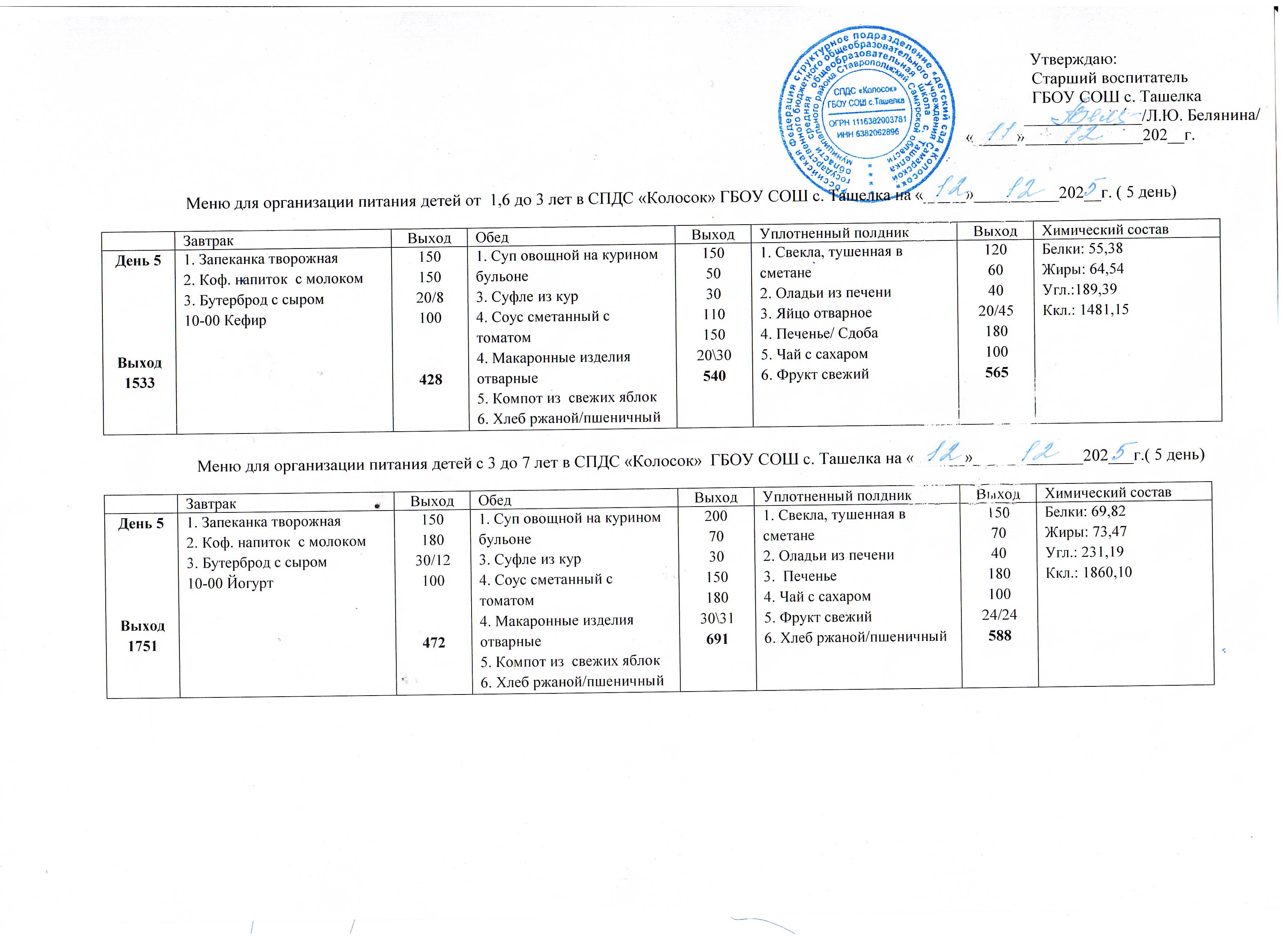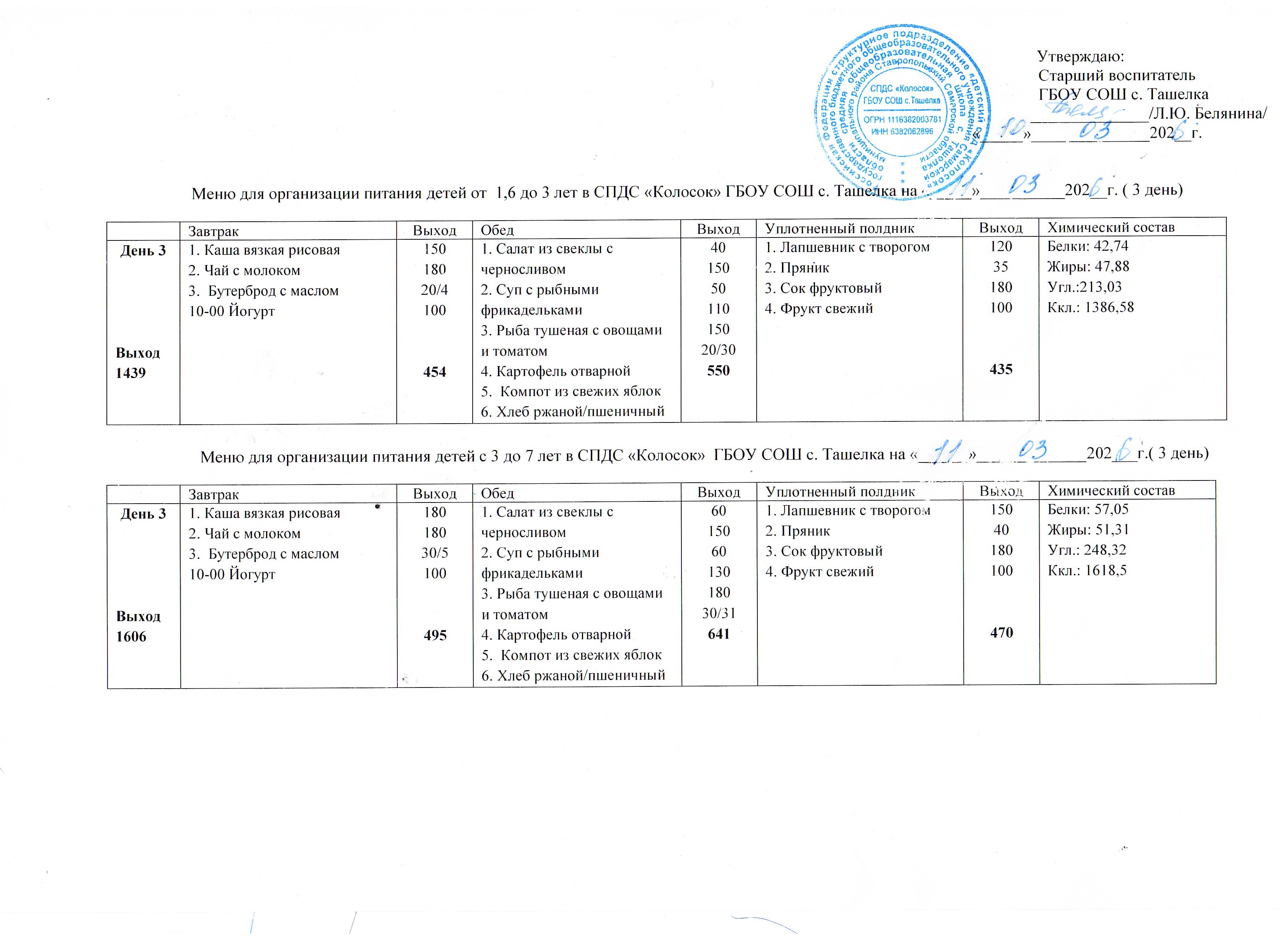 Информация об обслуживающем предприятии (информация о поставщике продовольственной продукции) с контактными данными