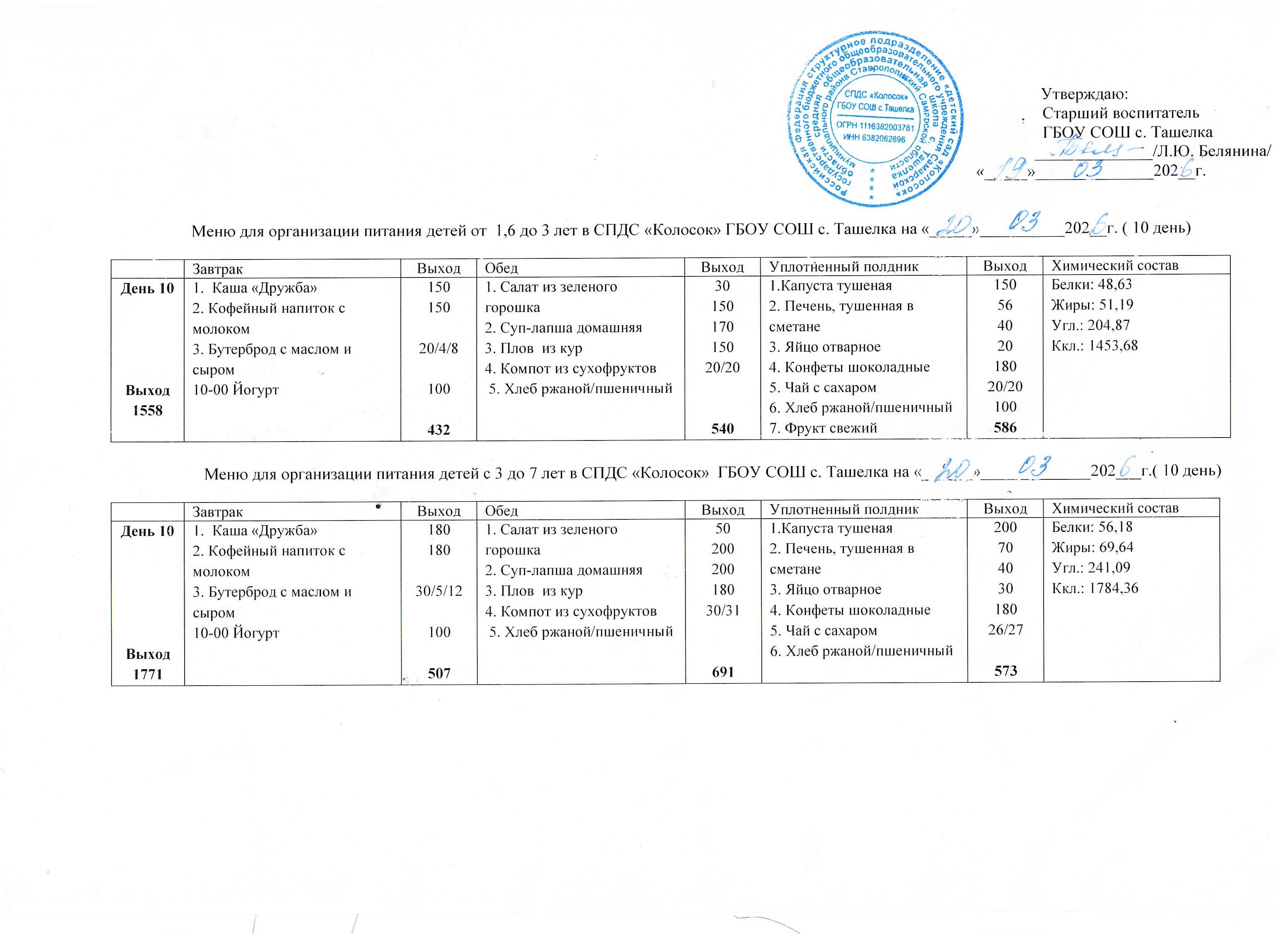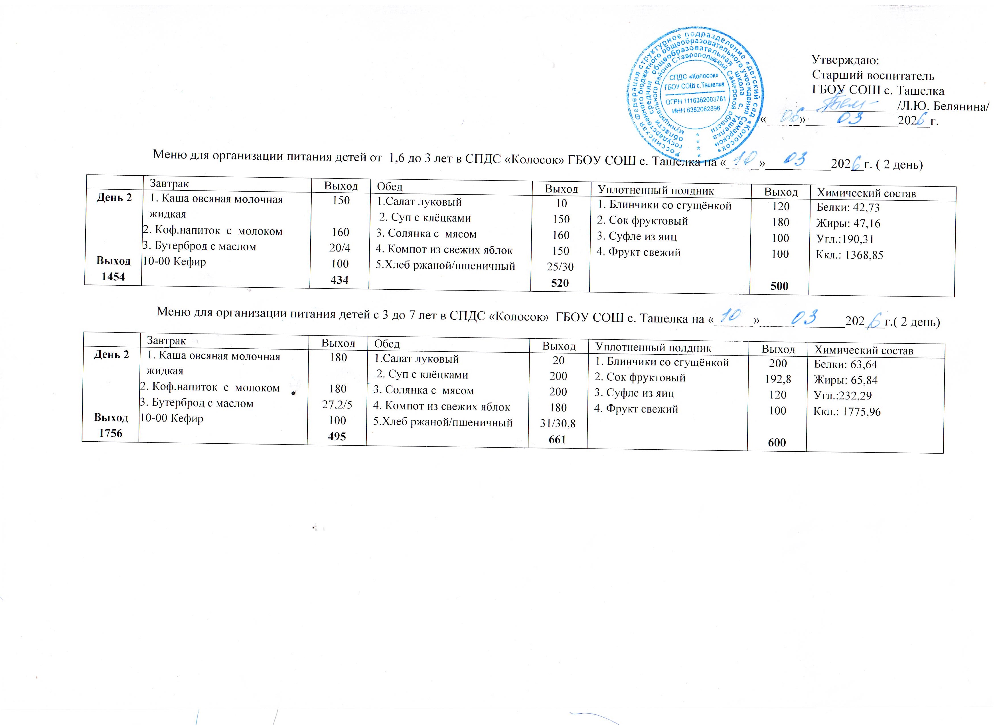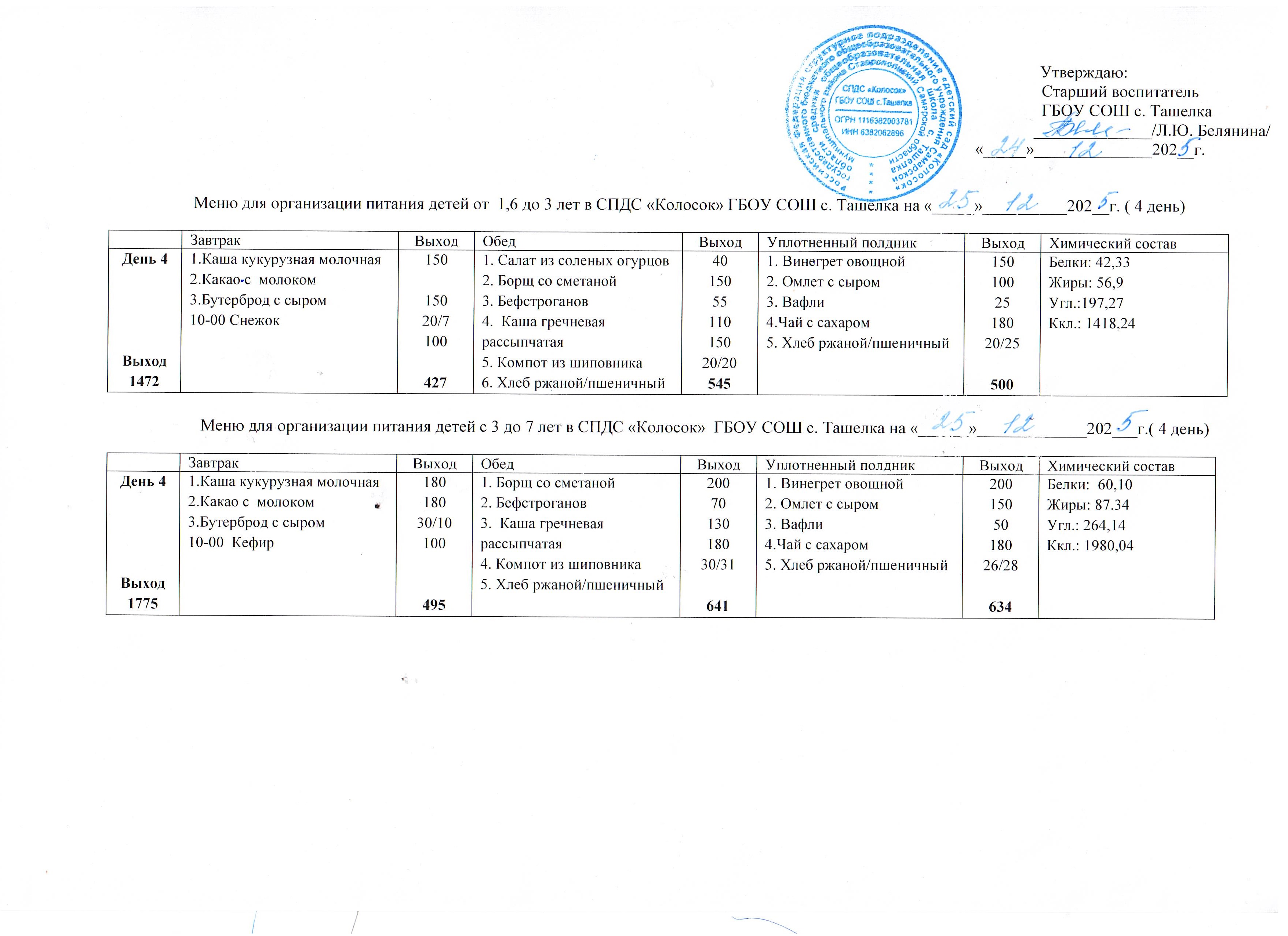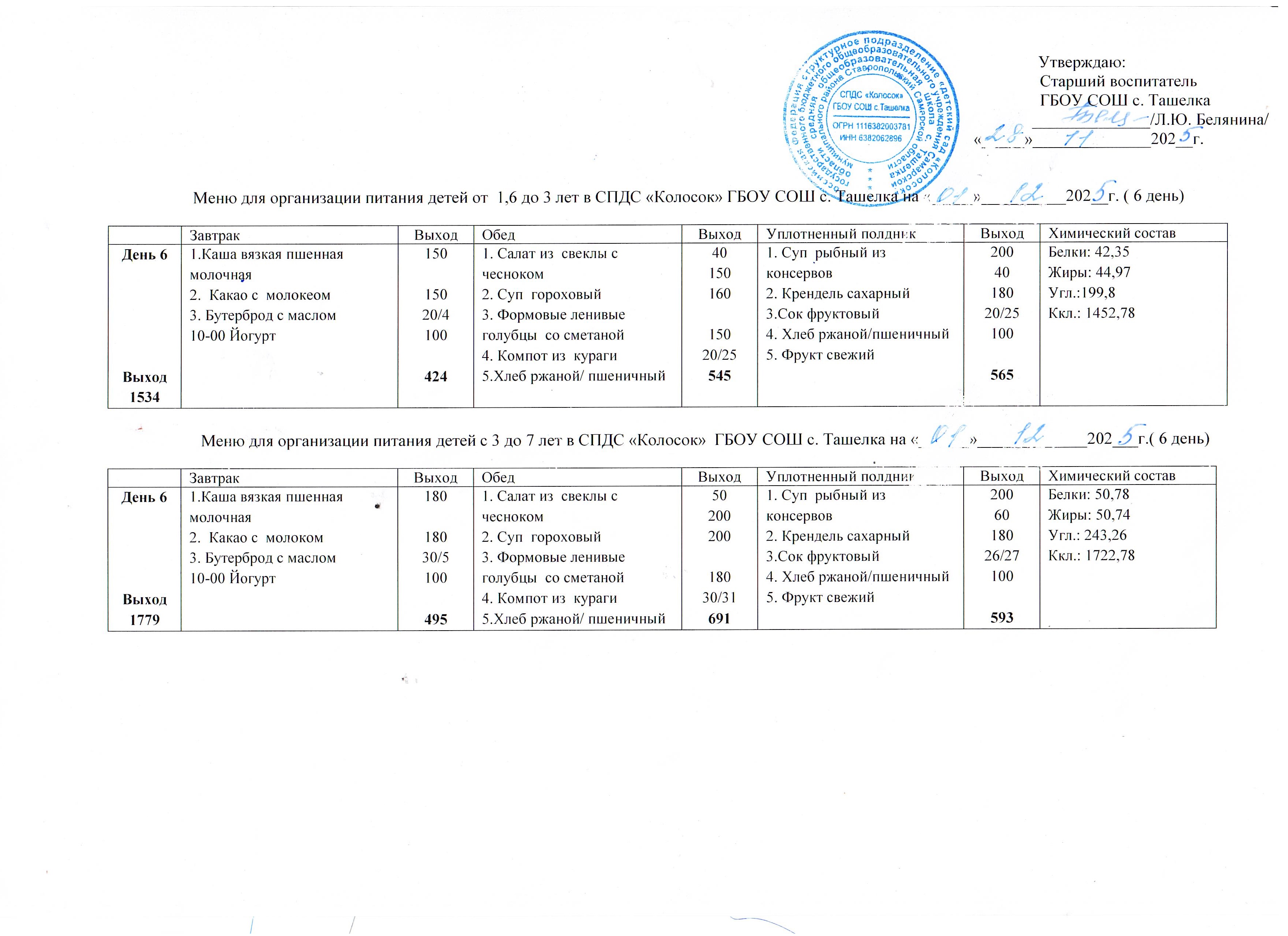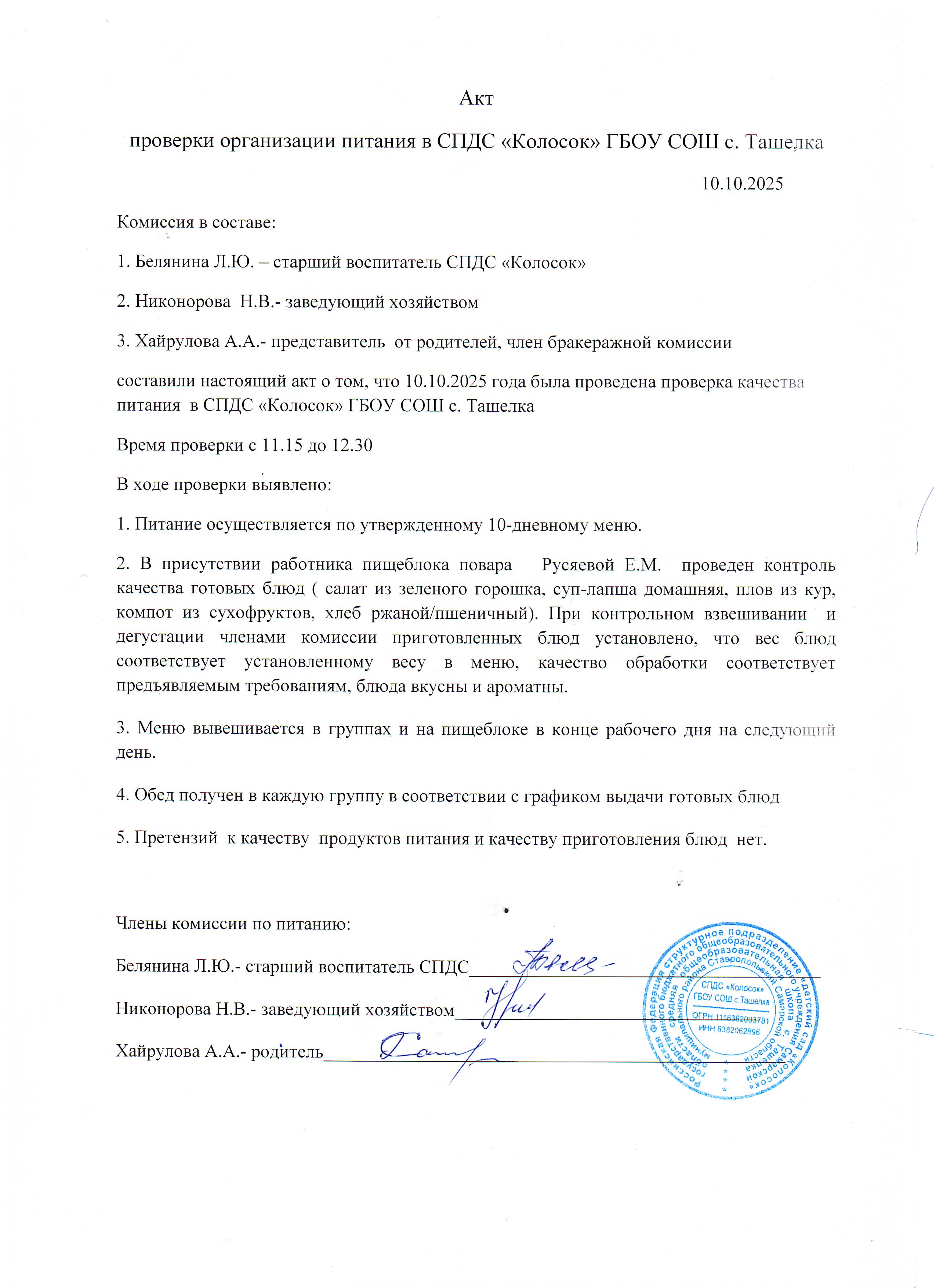 Информация об обслуживающем предприятии (информация о поставщике продовольственной продукции) с контактными данными
