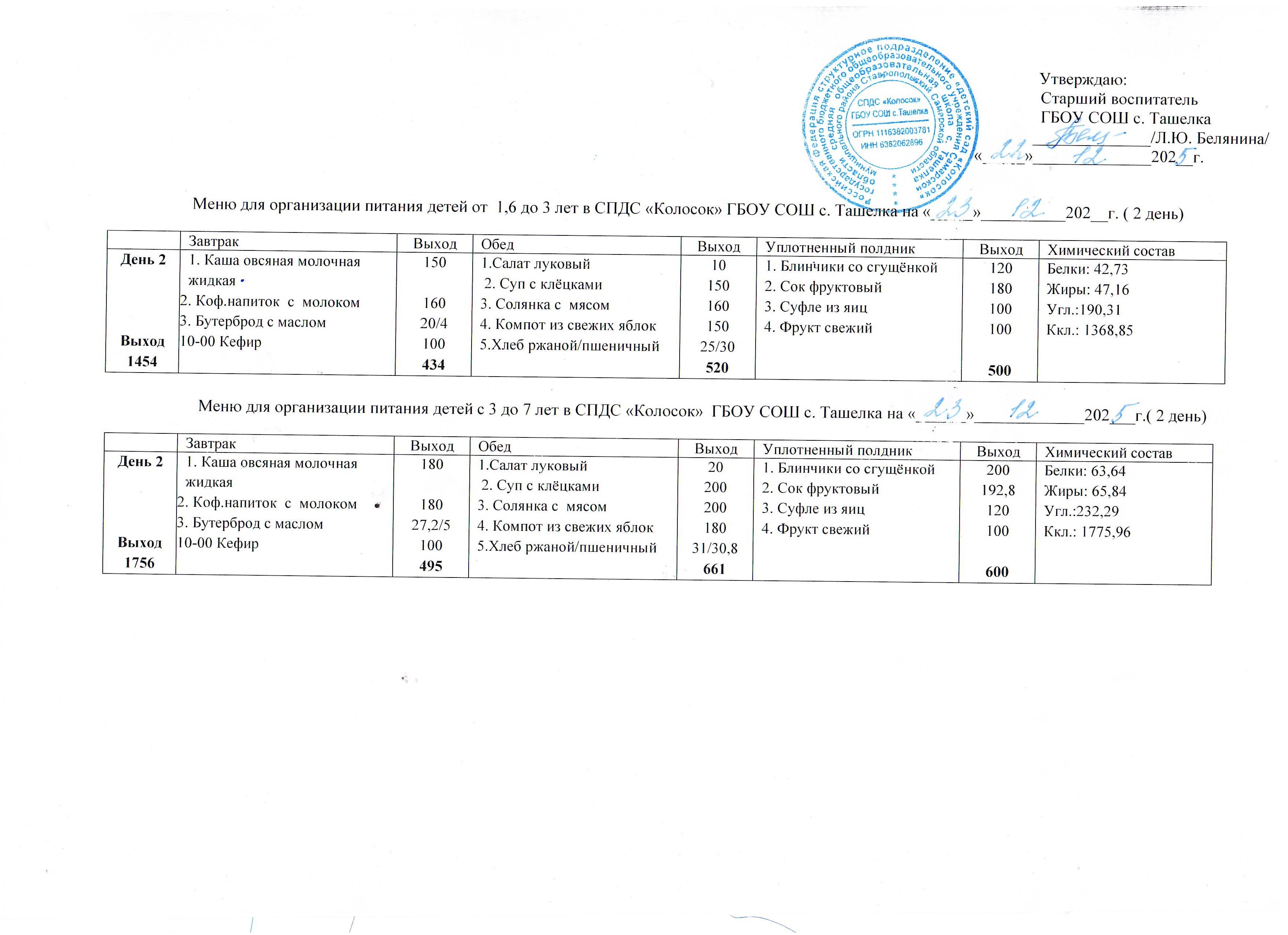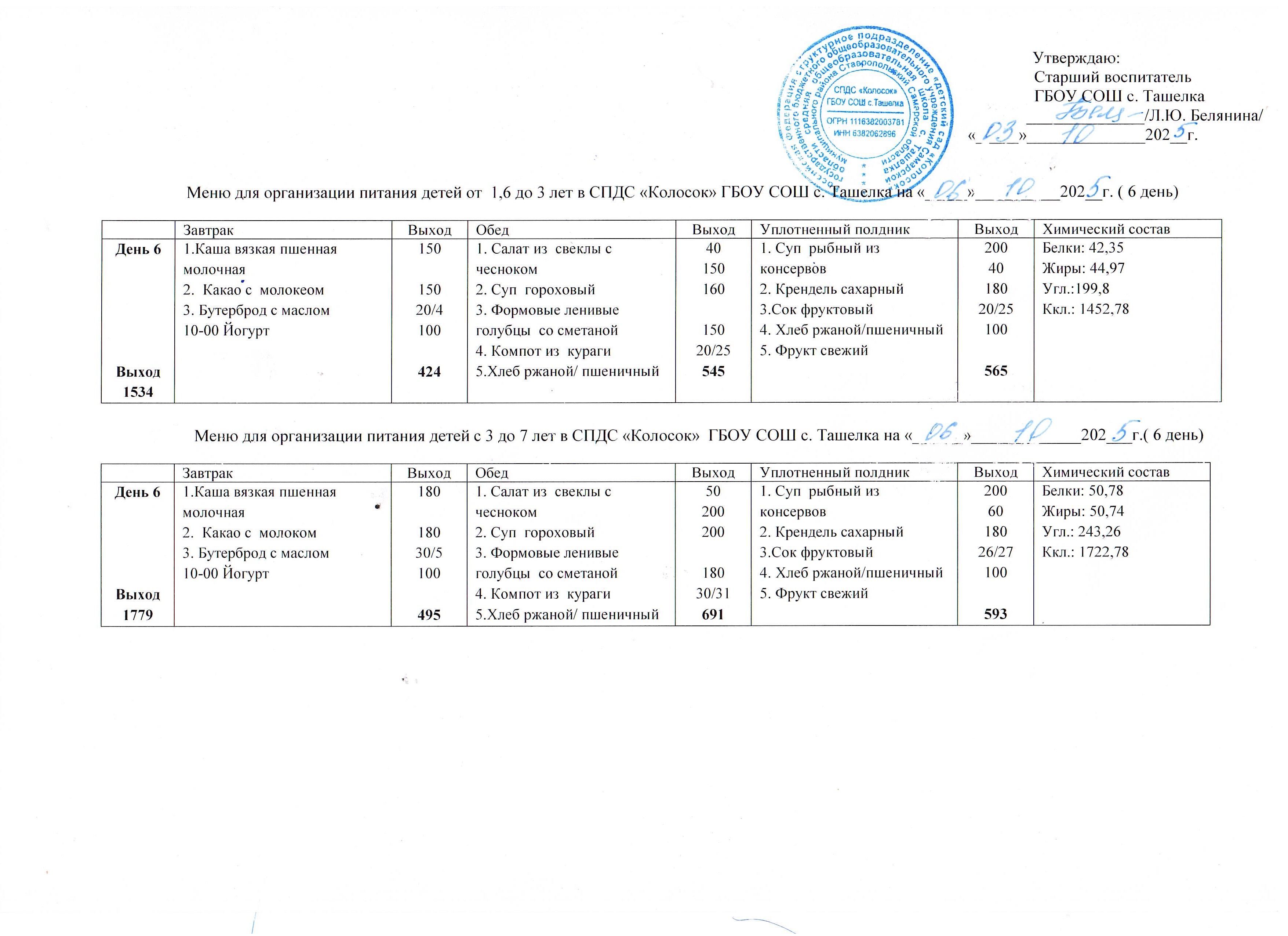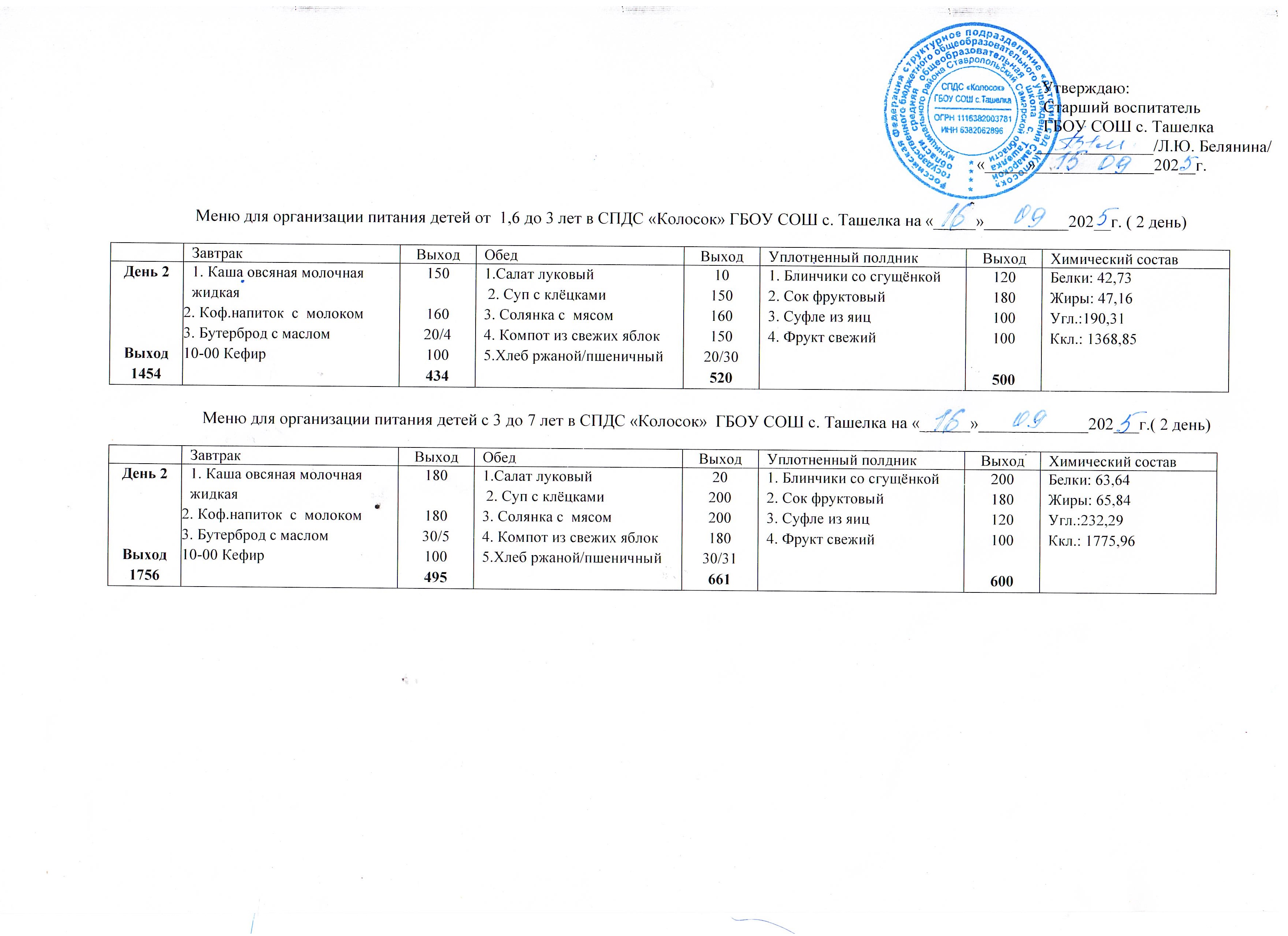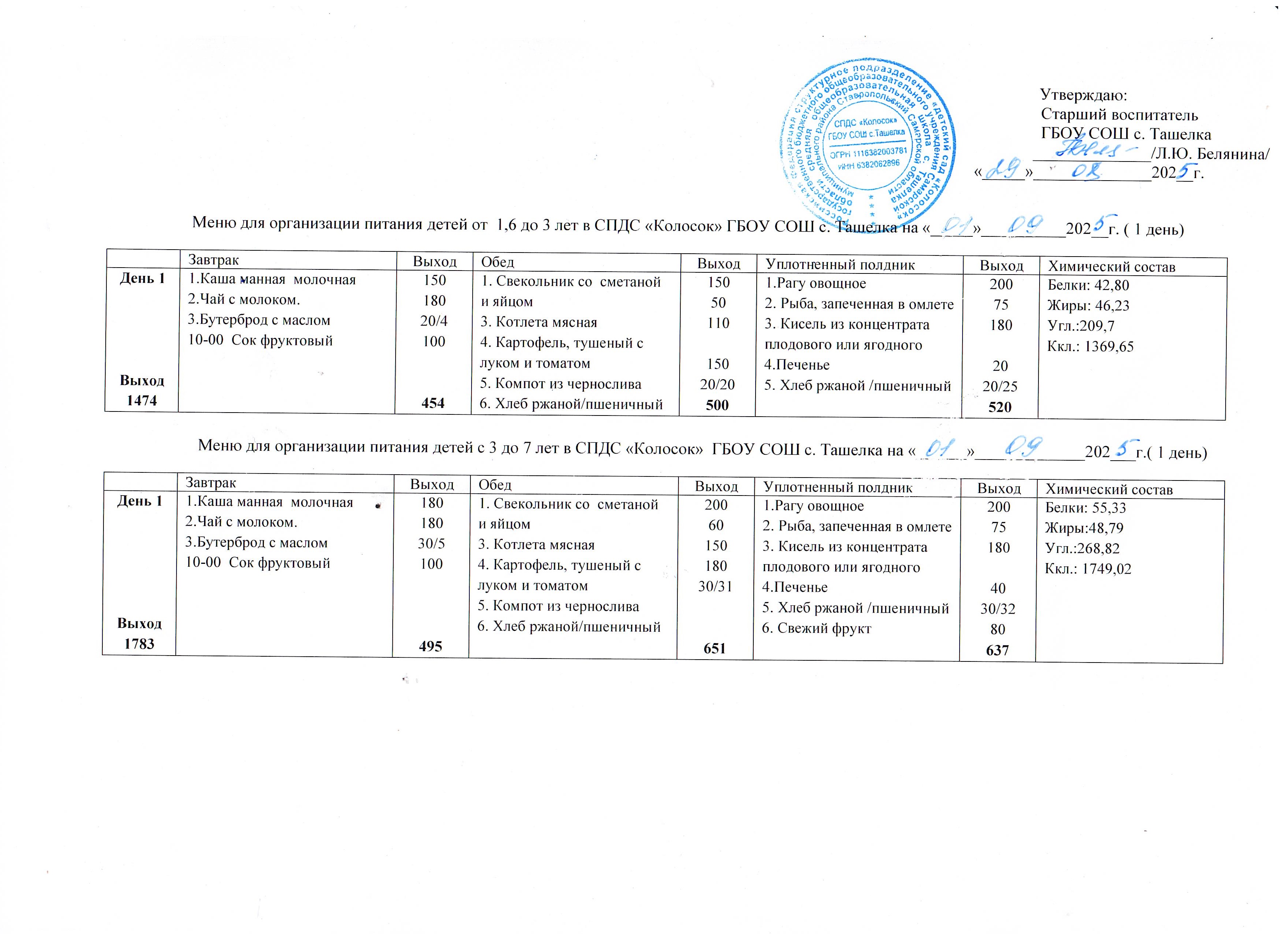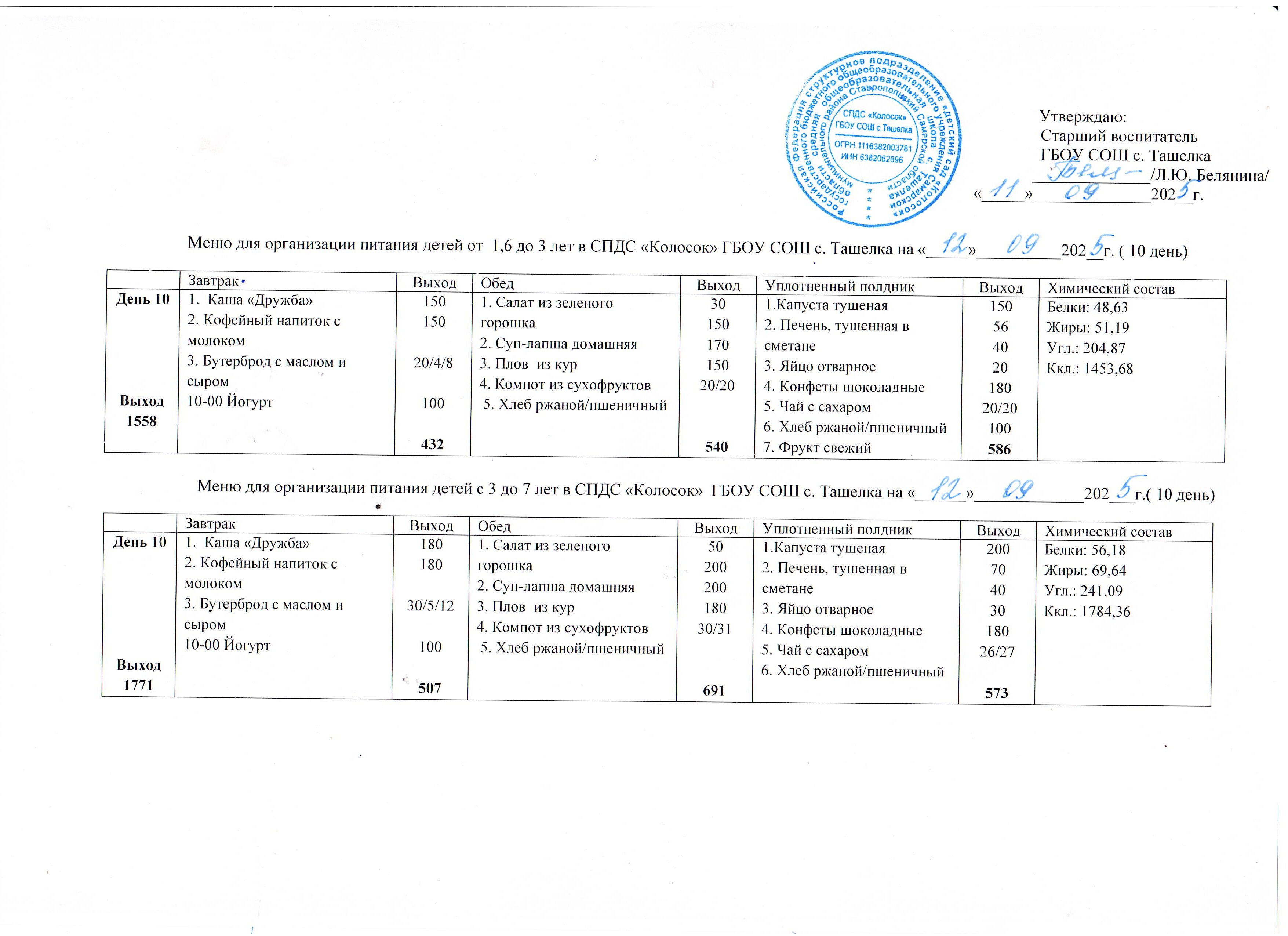 Информация об обслуживающем предприятии (информация о поставщике продовольственной продукции) с контактными данными