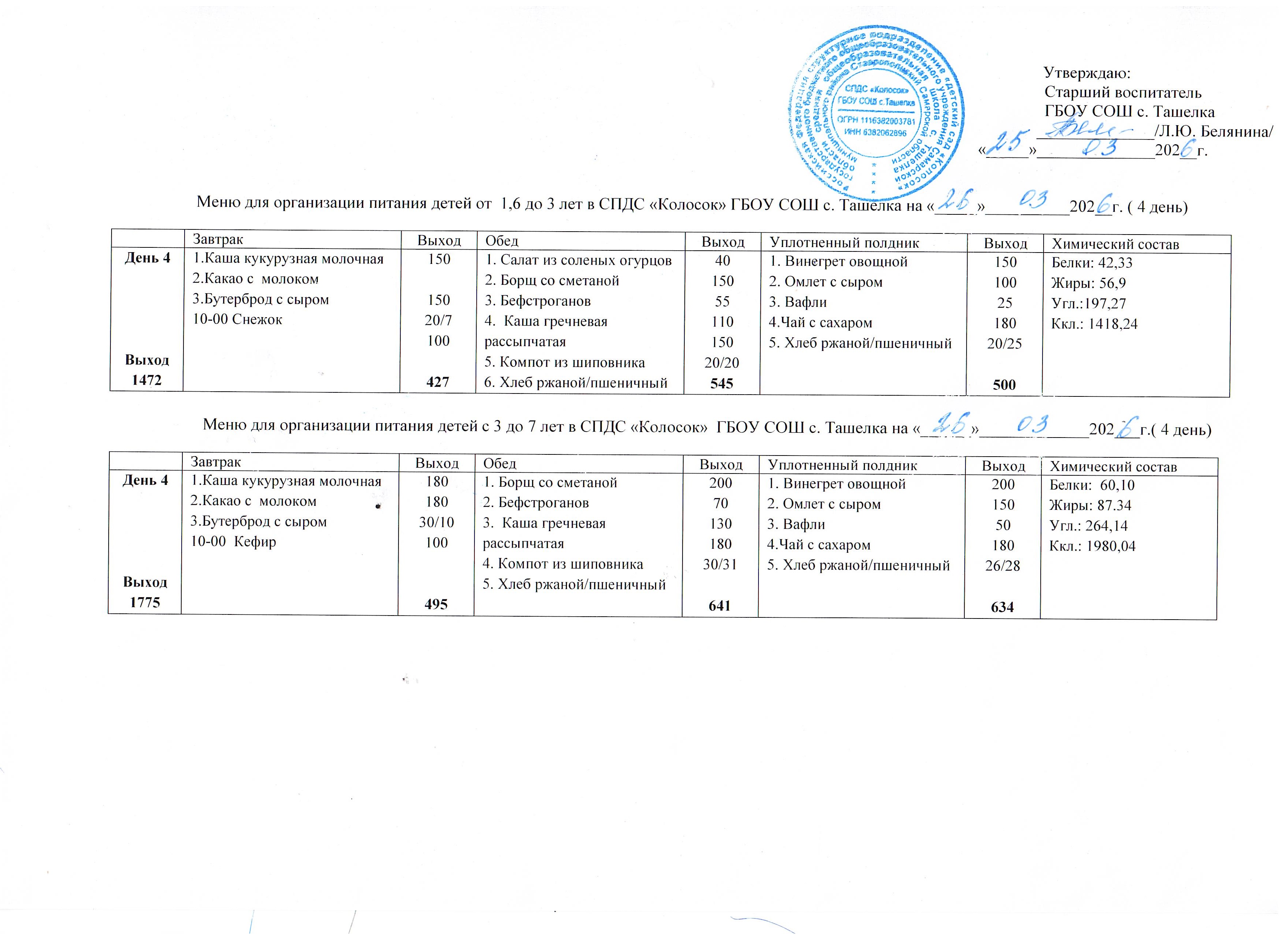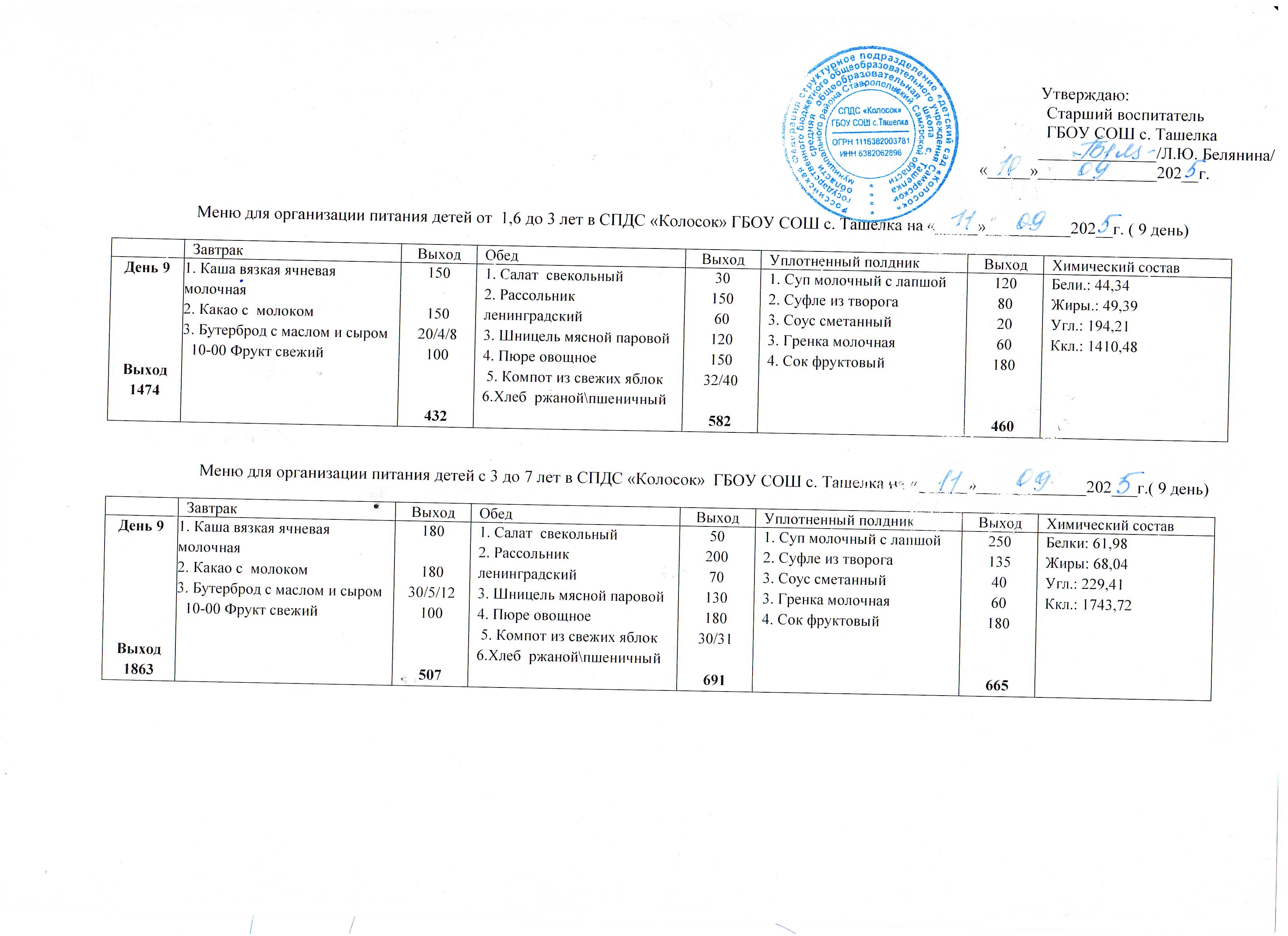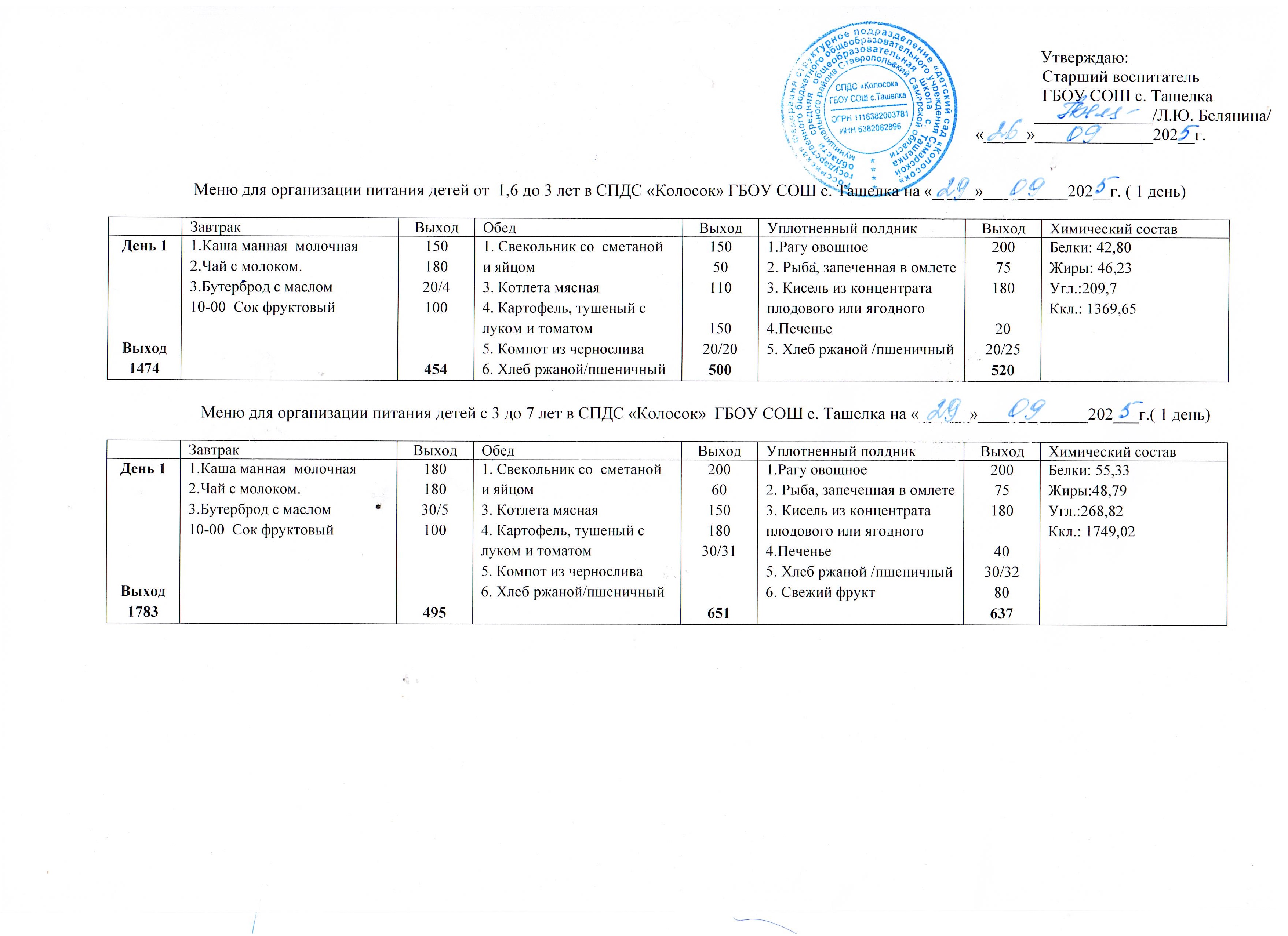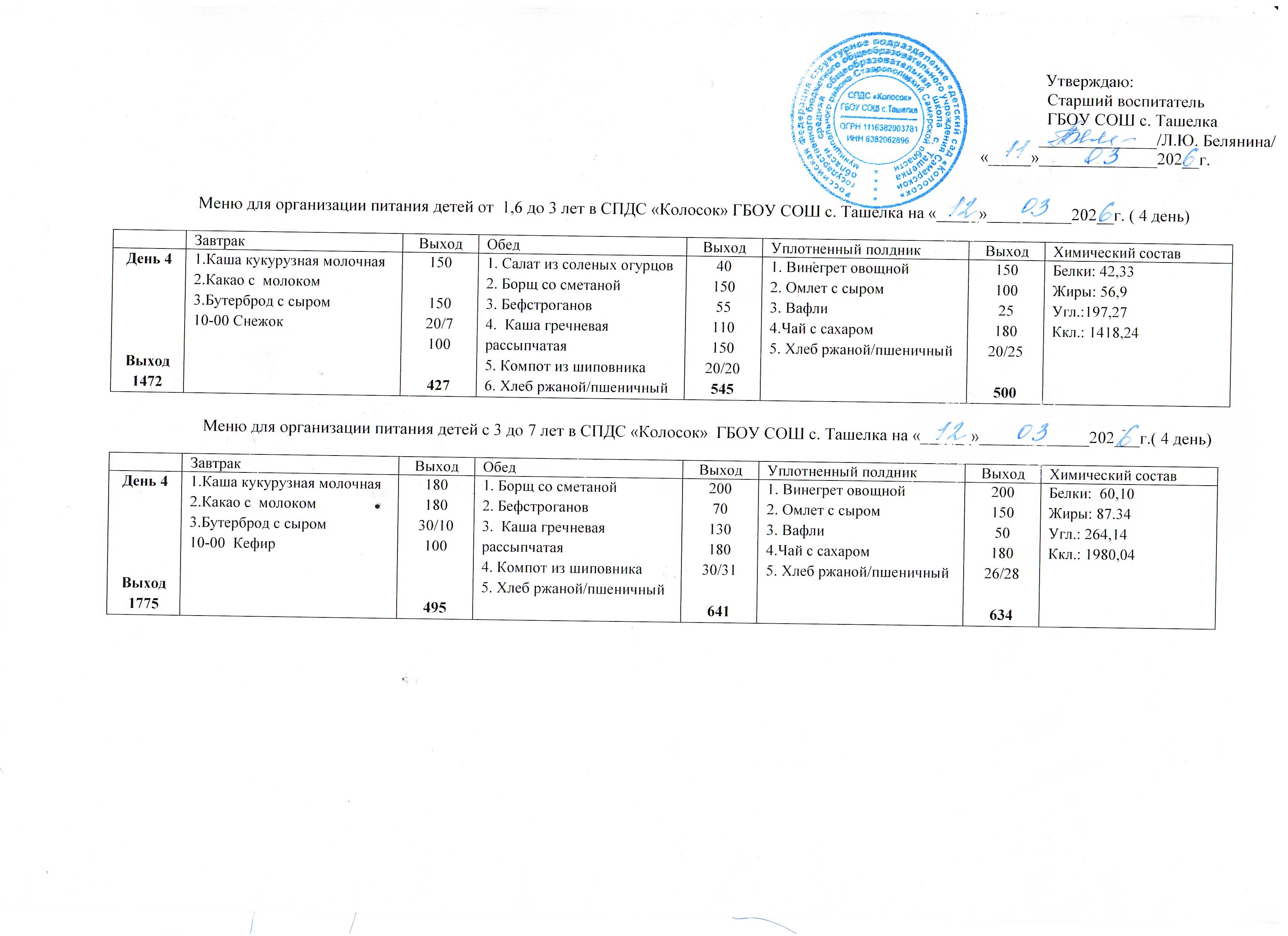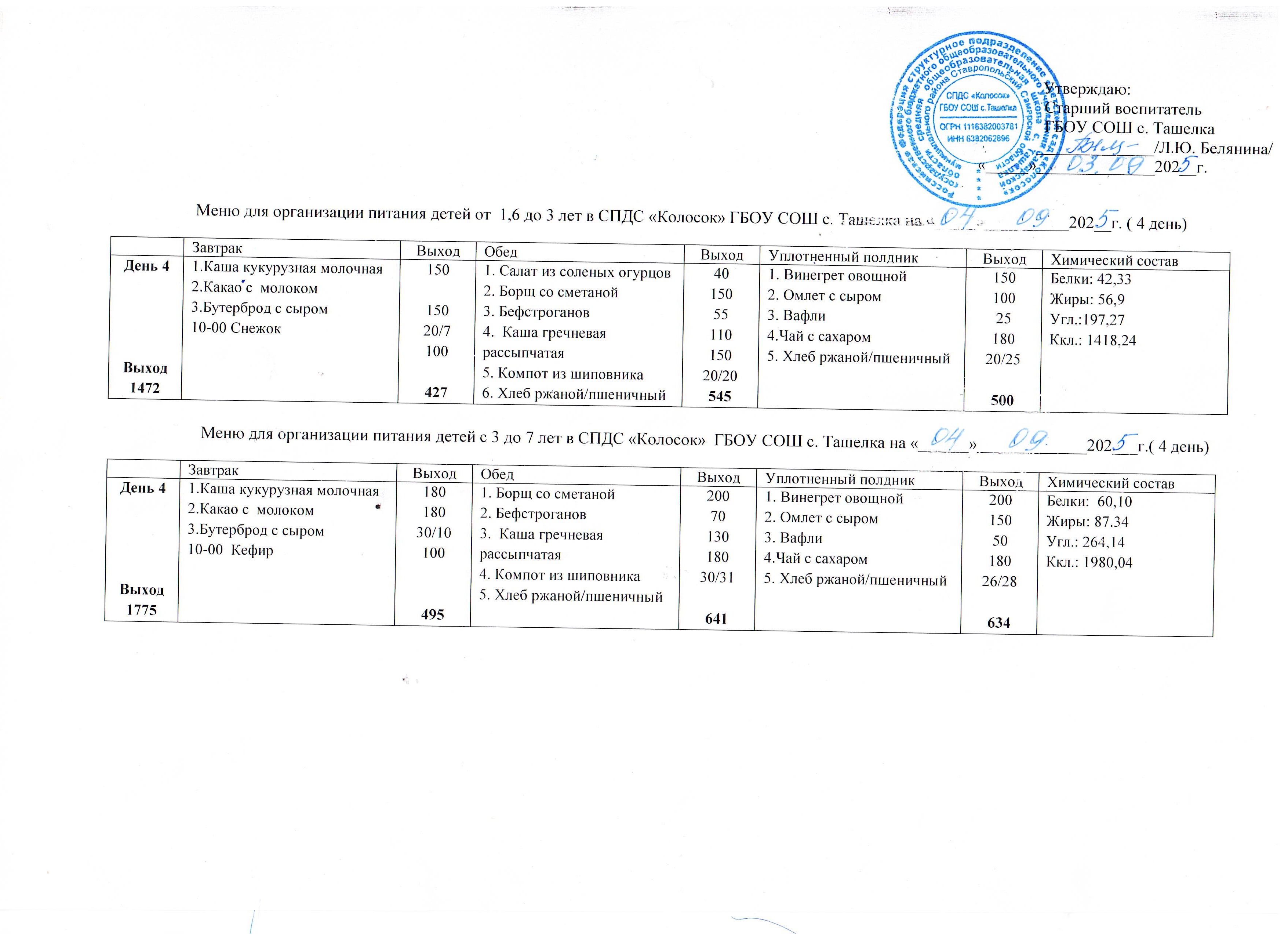 Информация об обслуживающем предприятии (информация о поставщике продовольственной продукции) с контактными данными