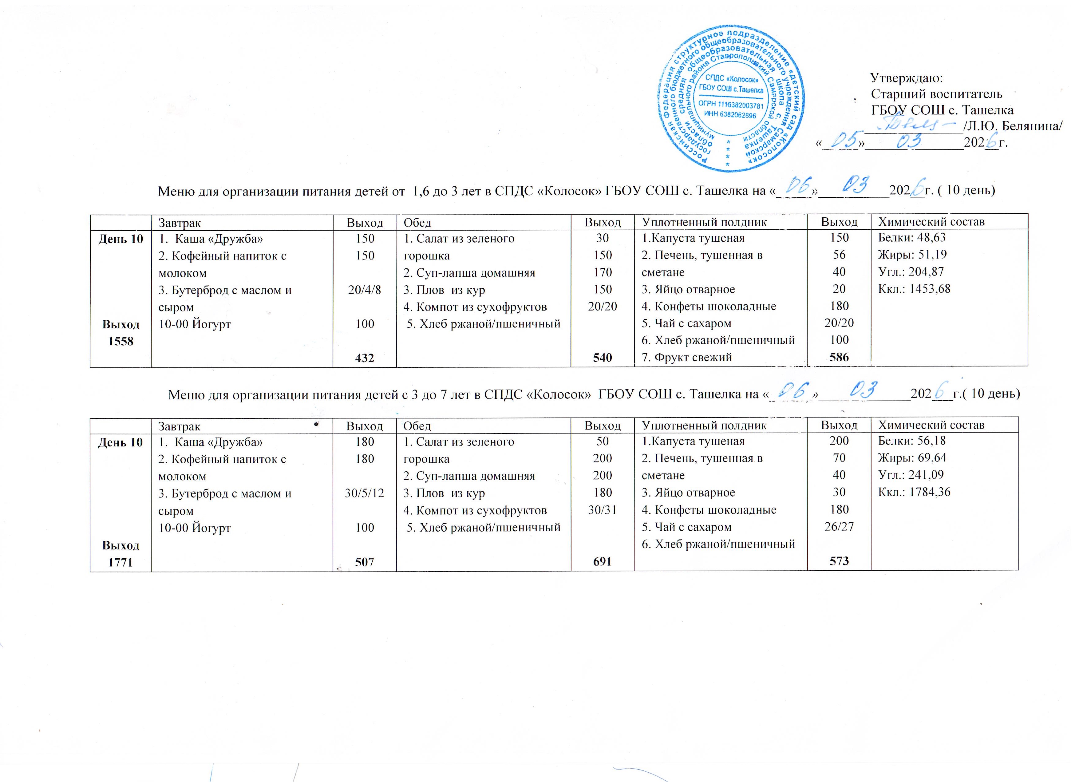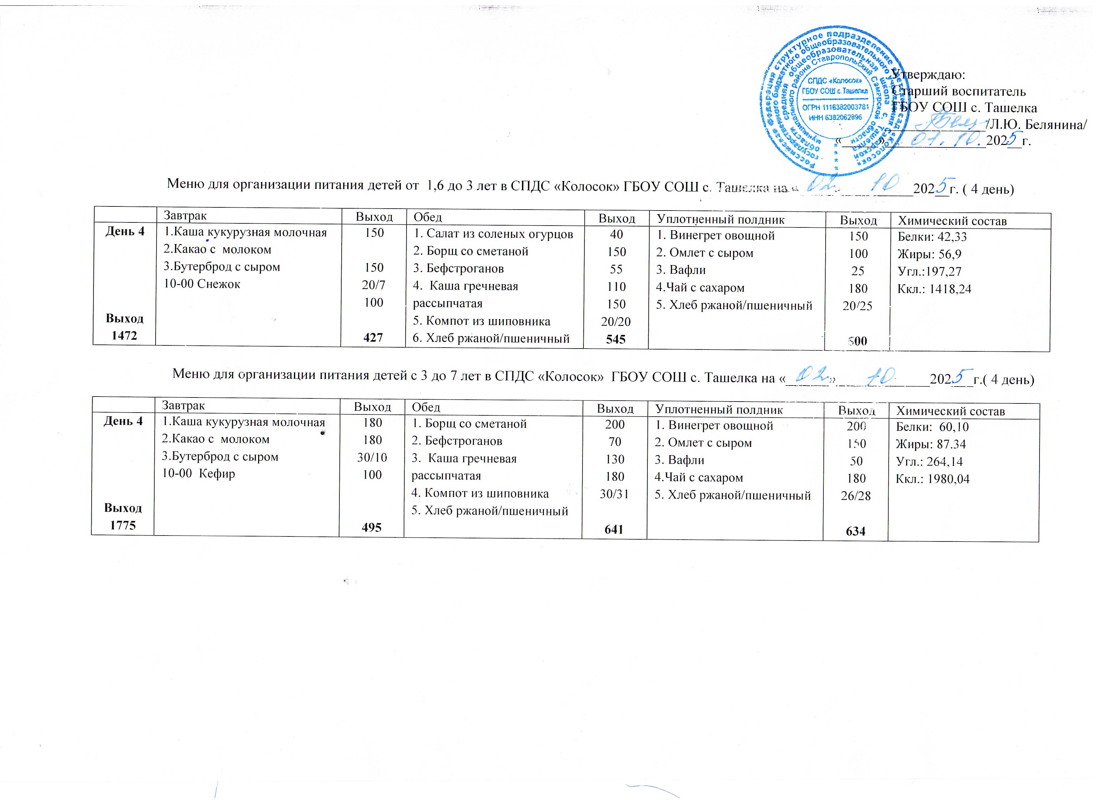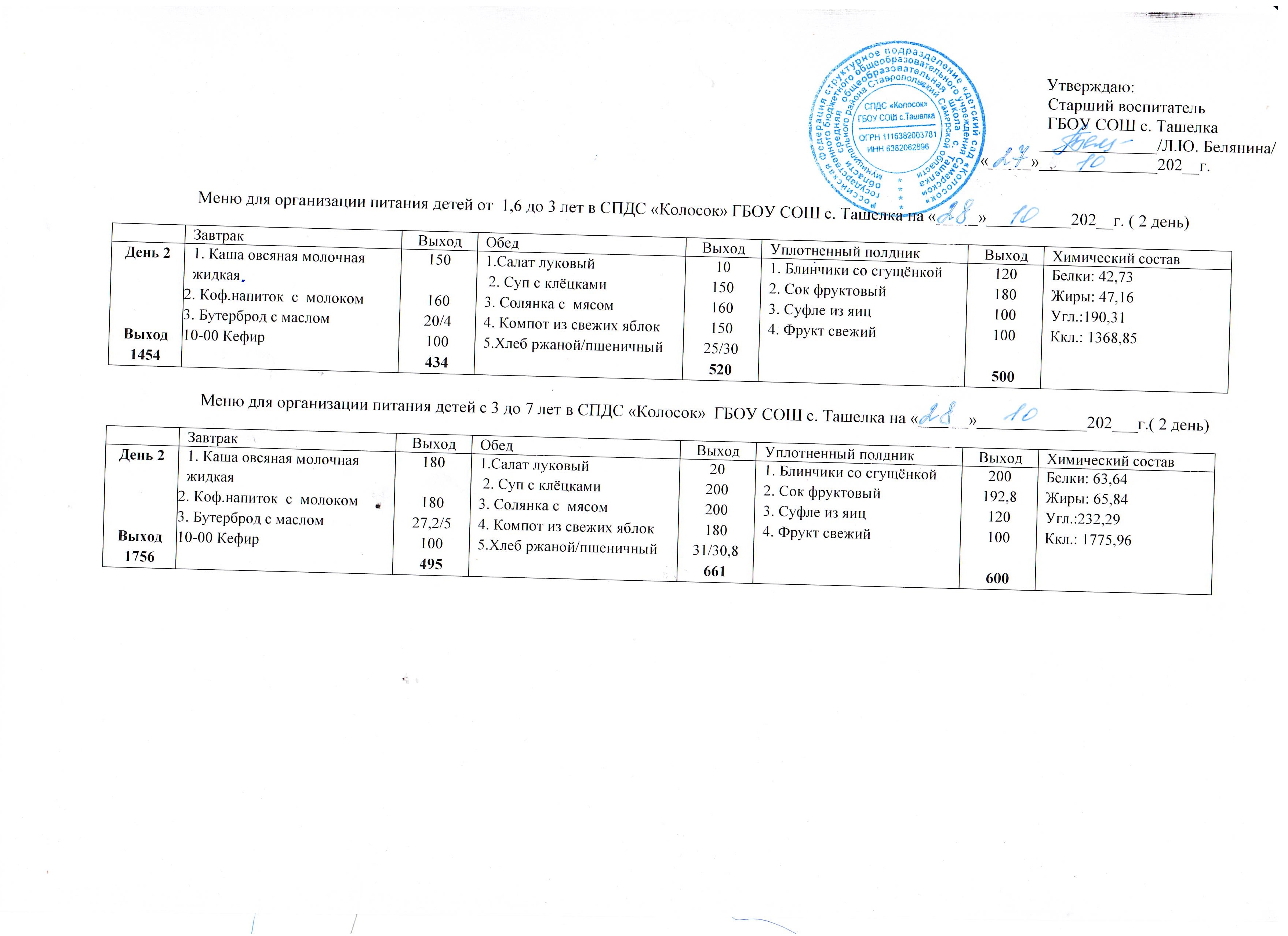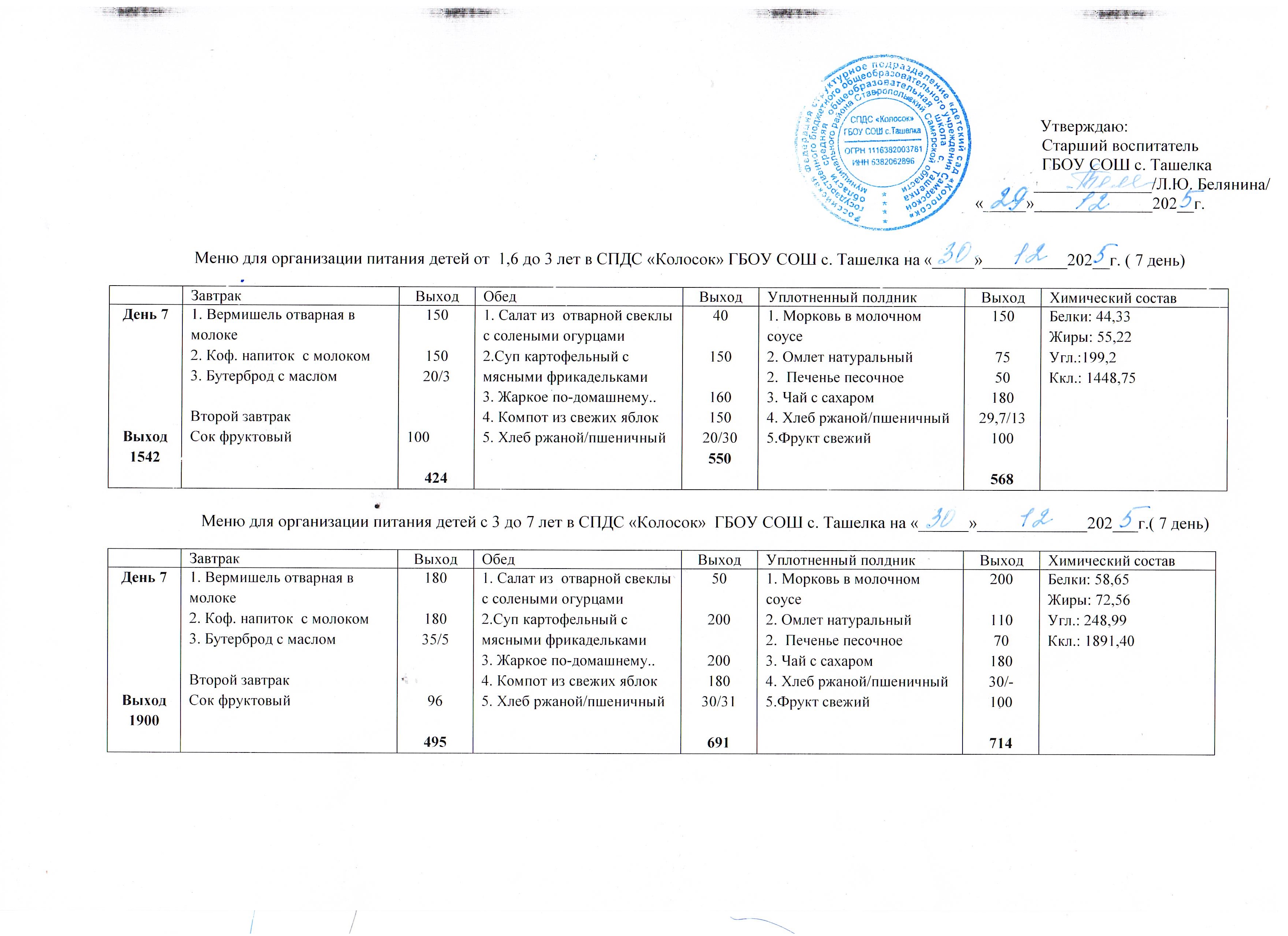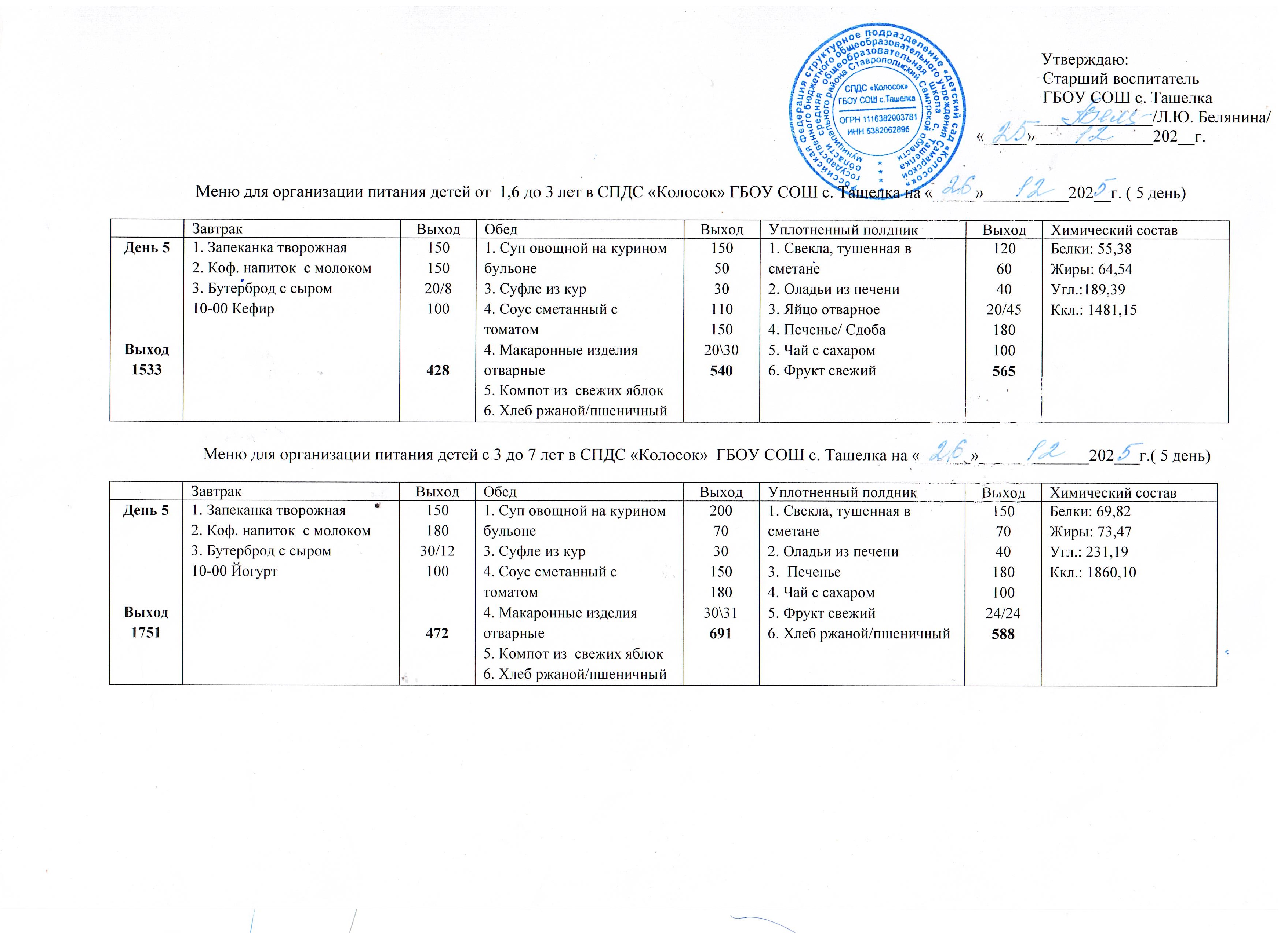 Информация об обслуживающем предприятии (информация о поставщике продовольственной продукции) с контактными данными